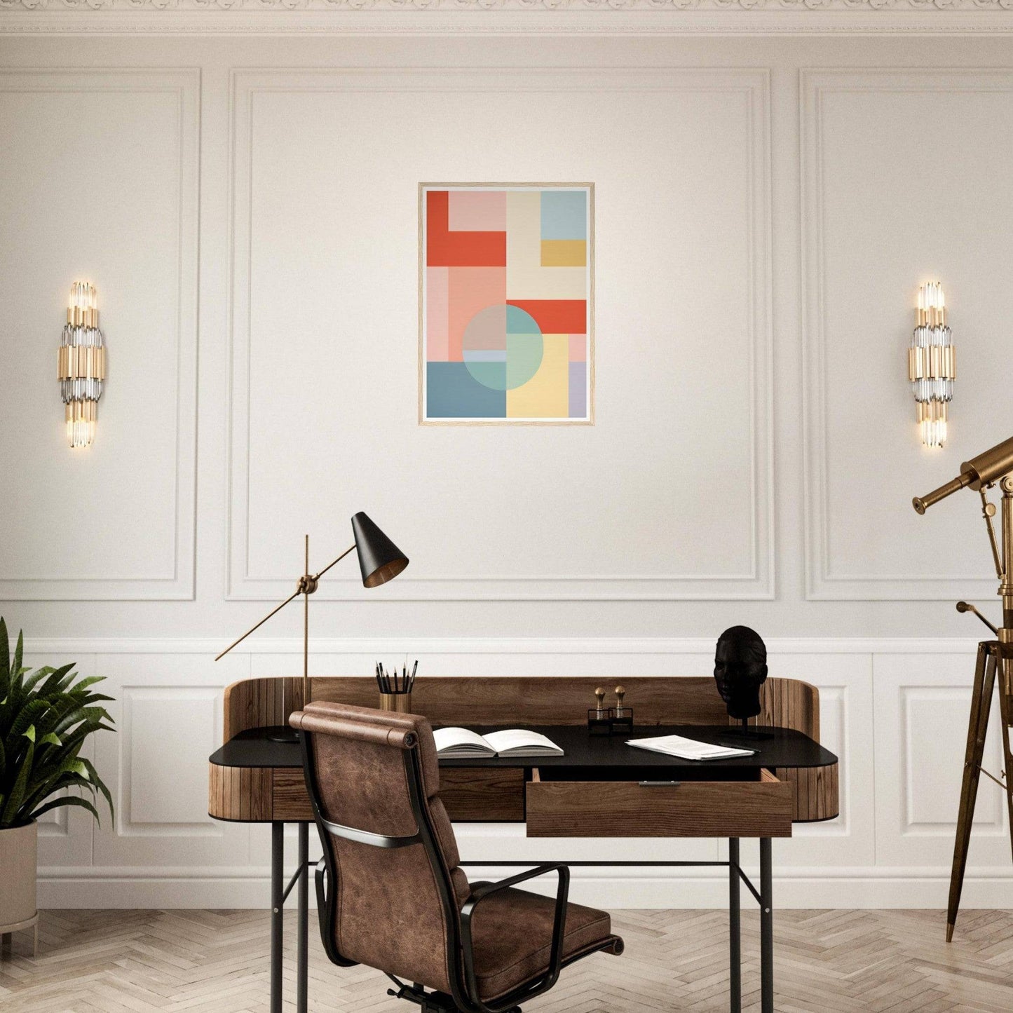 With its pastel hues and analogous color palette, this abstract piece is designed to bring a sense of serenity and peace to your home office or living room. The composition of patterns and textures dances harmoniously across the canvas, making it an eye-catching centerpiece that sparks creativity and inspiration.
