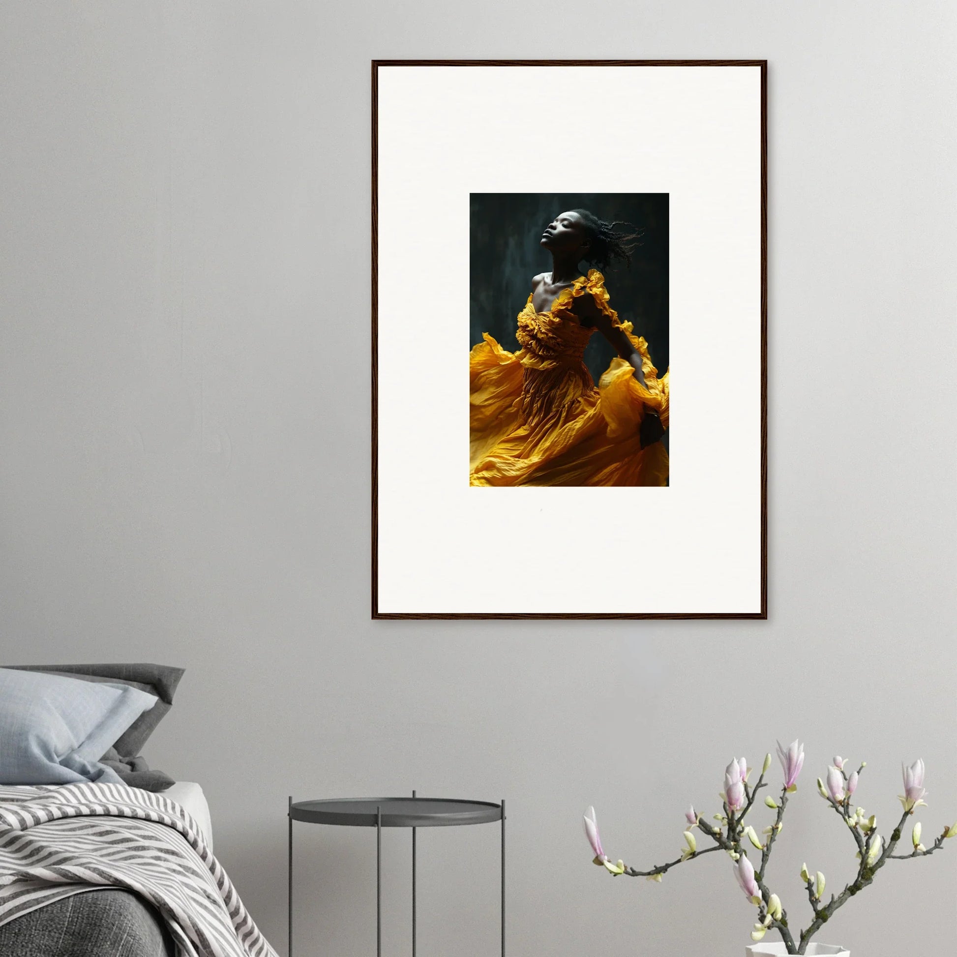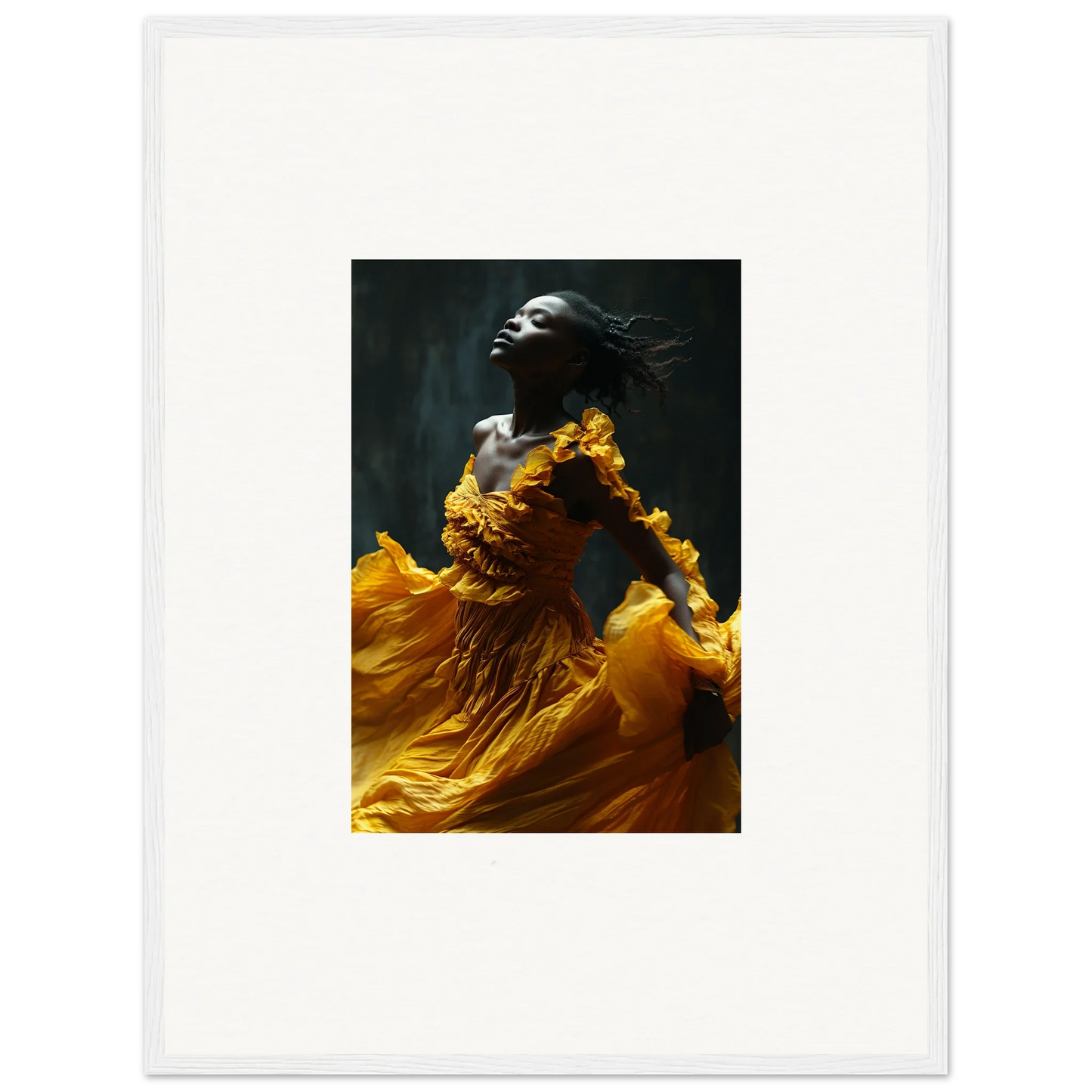 This captivating piece, Aurum Dream Waves, brings forth a portrait that is both fashion-forward and artistically profound. The vivid yellow hues contrasted with deep blacks create a striking palette that complements any décor style, particularly in bedrooms and living rooms. Its contemporary art style, subject to cutting-edge AI image generation technology, ensures a unique and inspiring presence in your home.