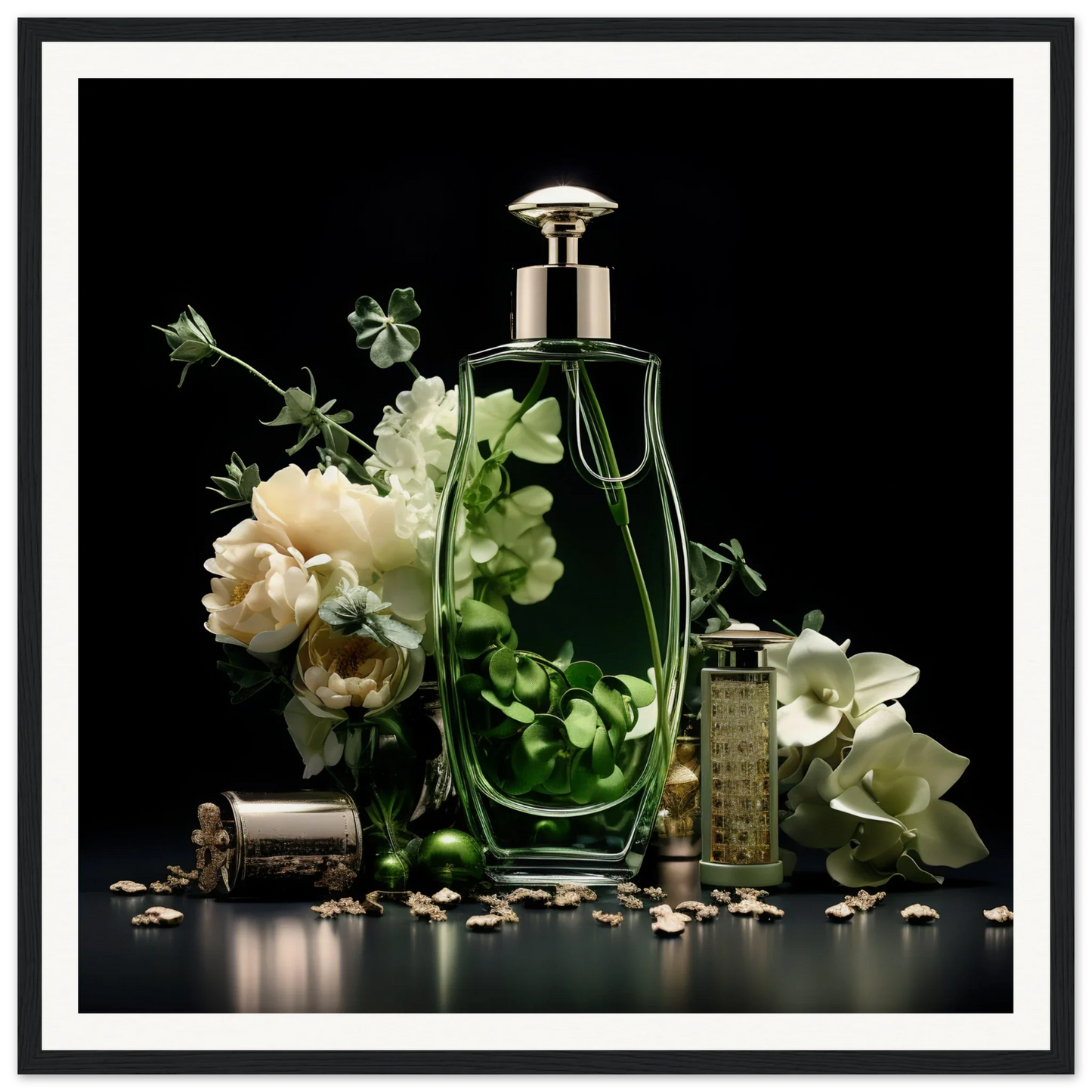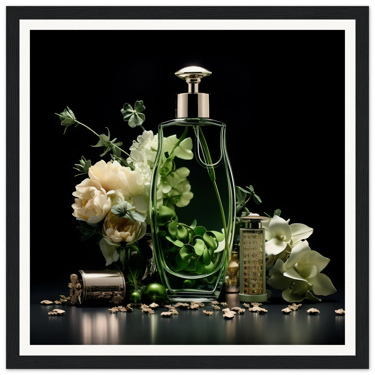 Our framed wall art prompts a powerful reflection on life’s transient beauty, captured effortlessly in a bouquet of elegant white roses and gardenias surrounding a refined perfume bottle. With its subtle greens and soft whites theme, this art fits seamlessly in living rooms, bedrooms, or offices that crave a touch of timeless luxury.