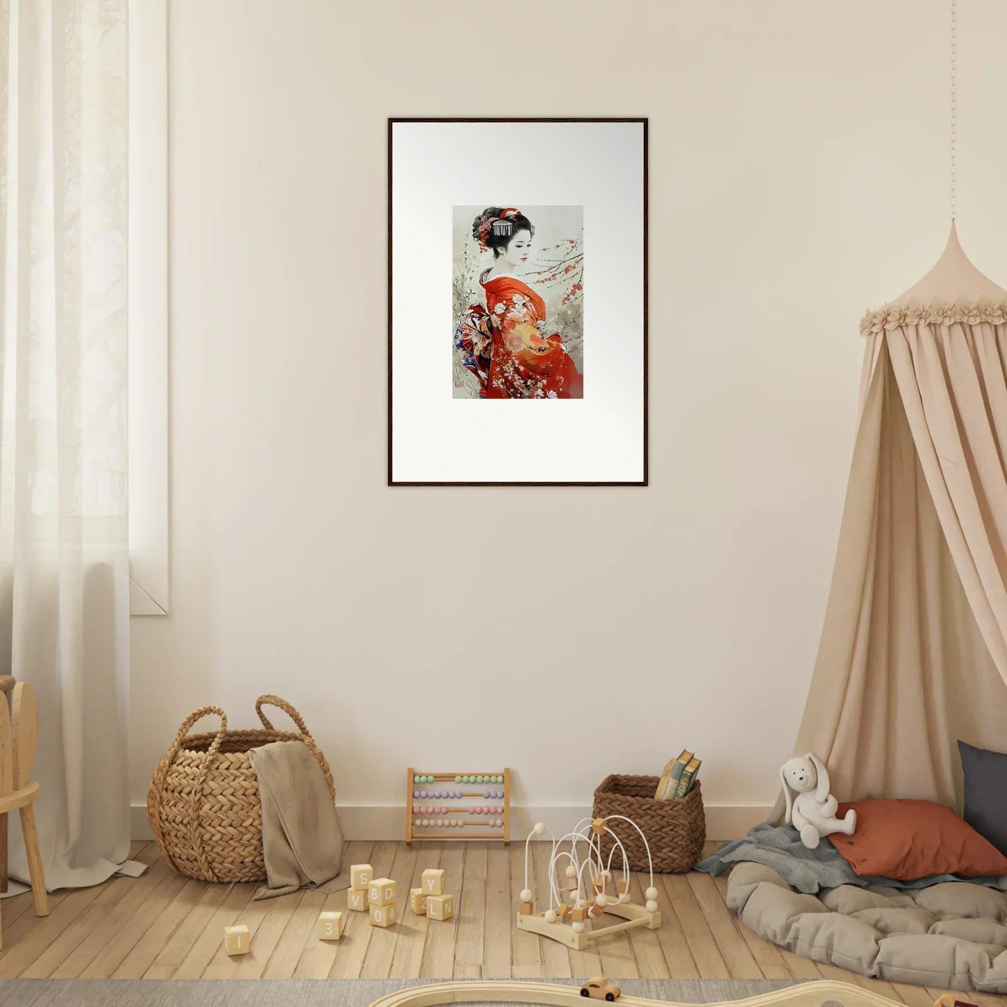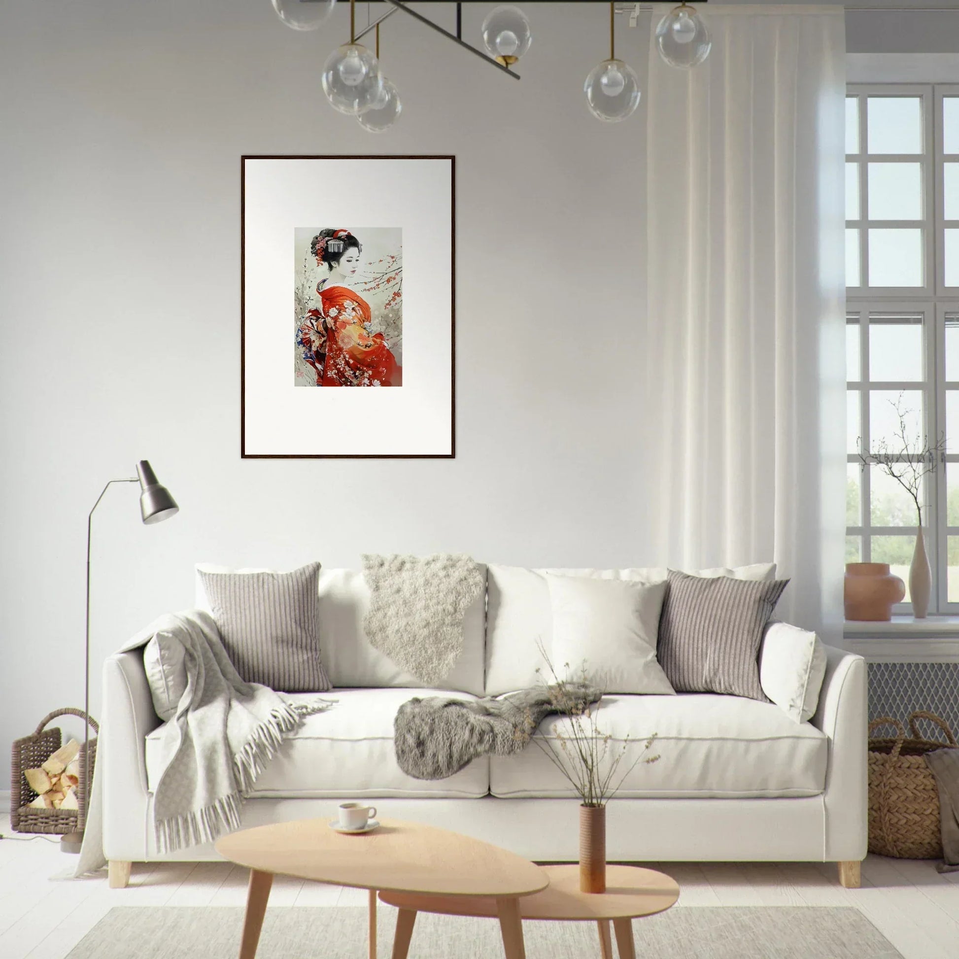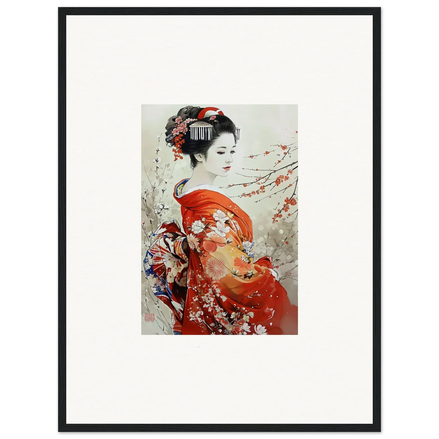"Blossom Memories" fits perfectly in bedrooms and living rooms, bringing a sense of tranquility and luxurious style to your space. Its complementary color palette of vibrant reds and serene whites complements various interior styles, while its subject—fashion and figurative art—adds a touch of elegance and grace. This framed wall art creates an atmosphere of serenity and peace, effortlessly transforming the ambiance of any room.