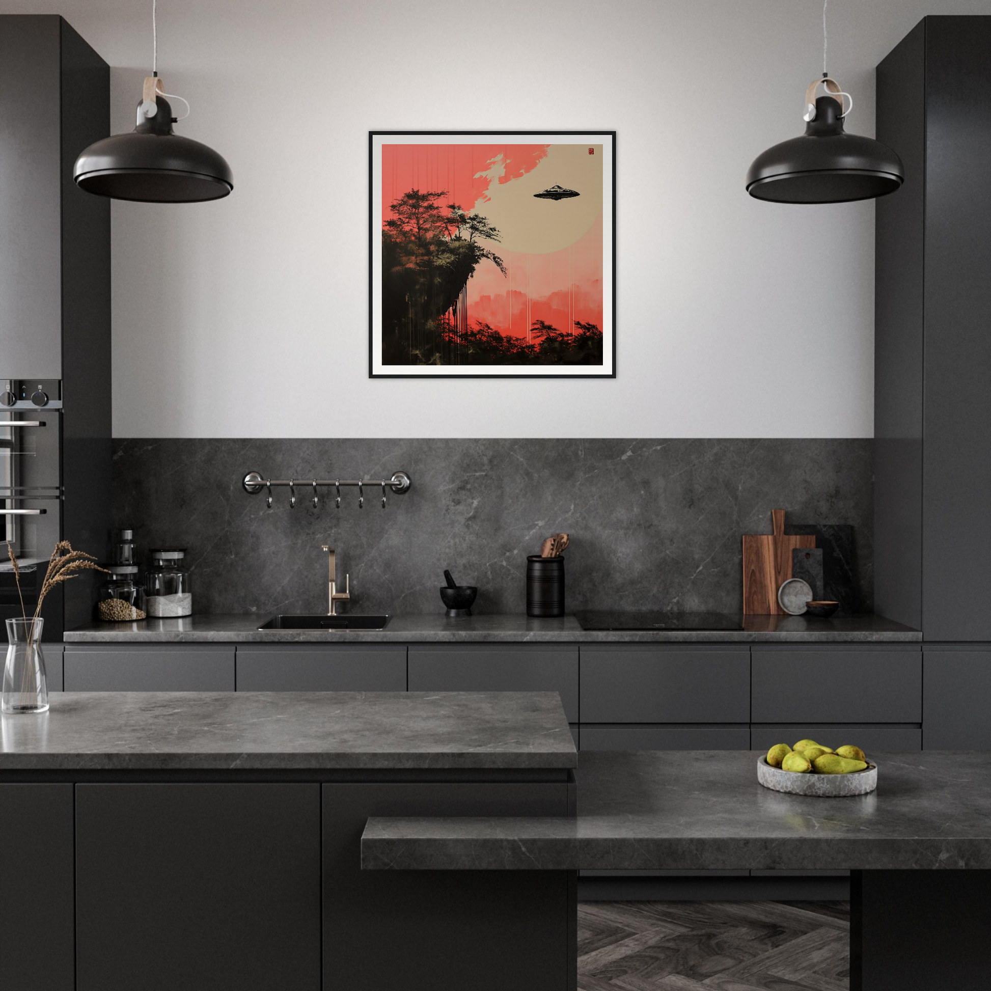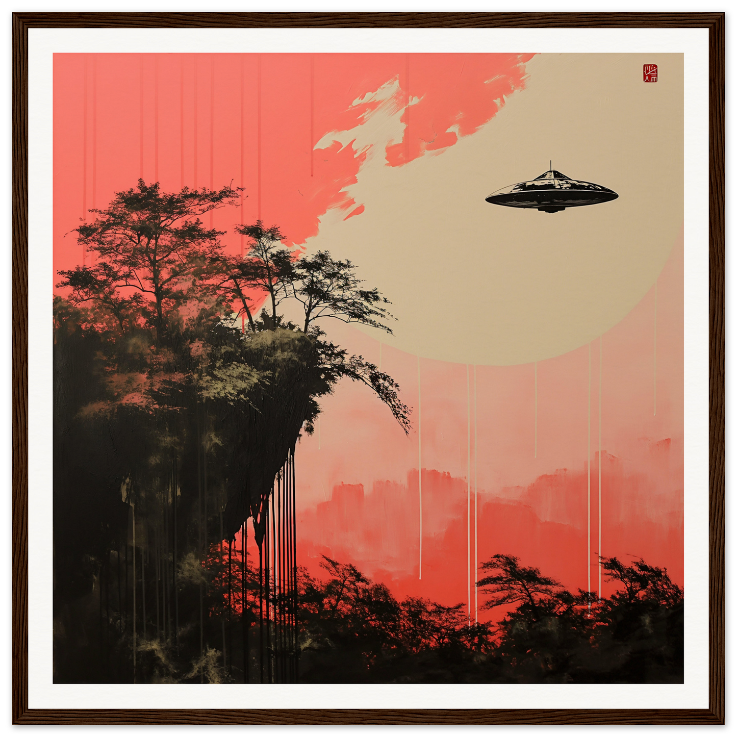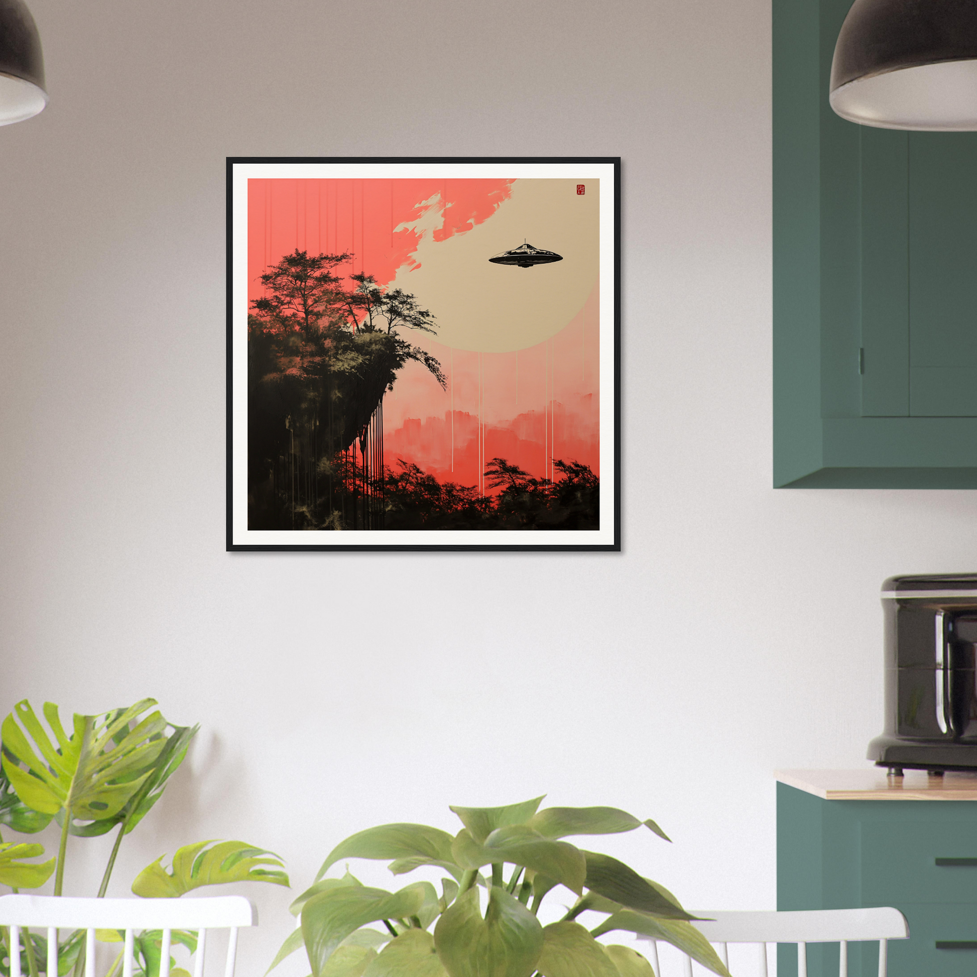 Embrace an unparalleled harmony of the natural and the fantastical with Celestial Tranquility Voyage, a framed masterpiece crafted through the meticulous embrace of cutting-edge AI image generation technology. This artwork invites you into 'a compelling blend of natural and fantastical elements', capturing a narrative of exploration and coexistence through its fusion of reality and science fiction.