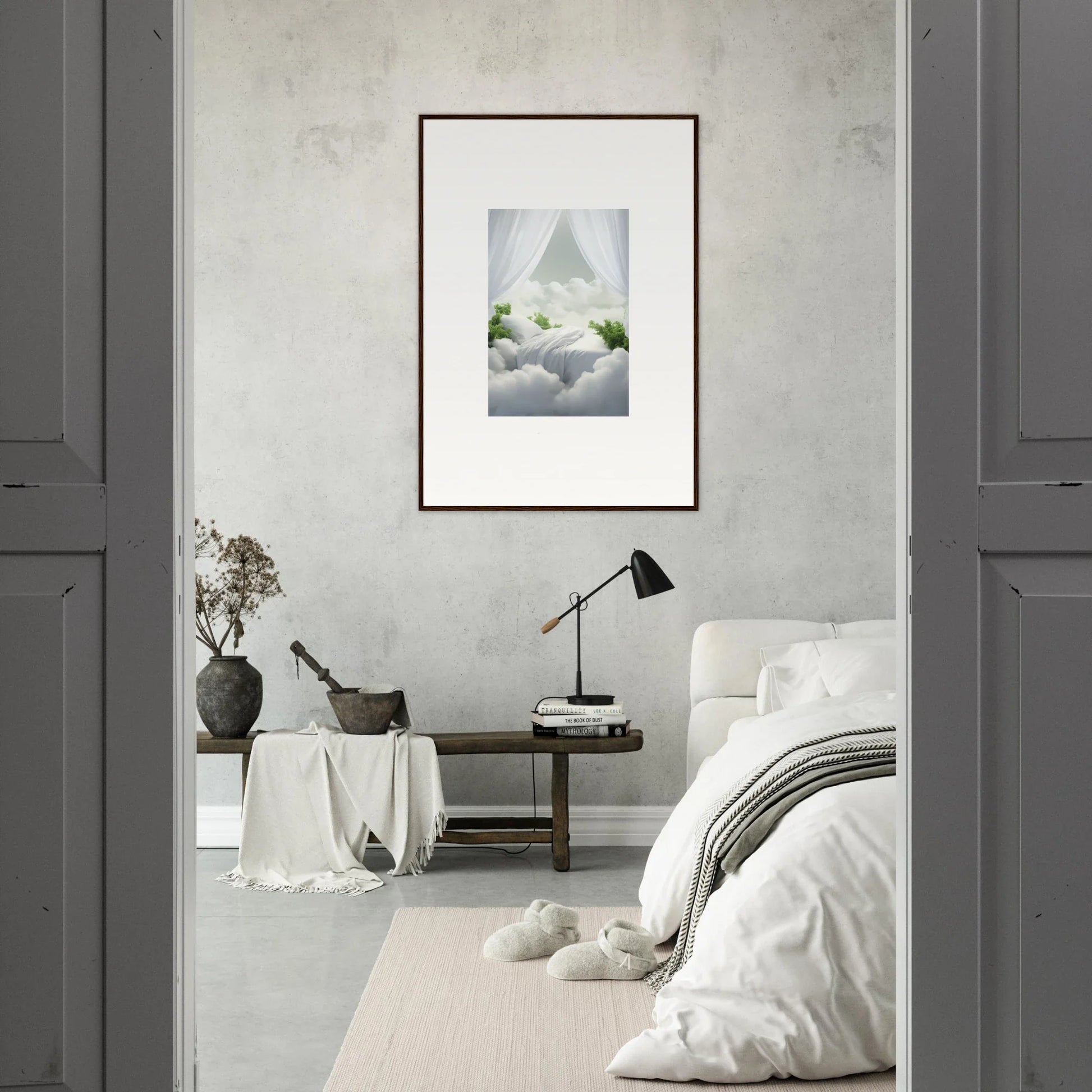 Imagine a moment where art transcends mere decoration, creating a sanctum of peace and creativity within your home. Our Cloud Snuggle Fantasia framed wall art is designed to do just that. Featuring the latest AI-generated imagery, this serene masterpiece captures the essence of modern creativity and timeless tranquility, seamlessly blending abstract and nature.