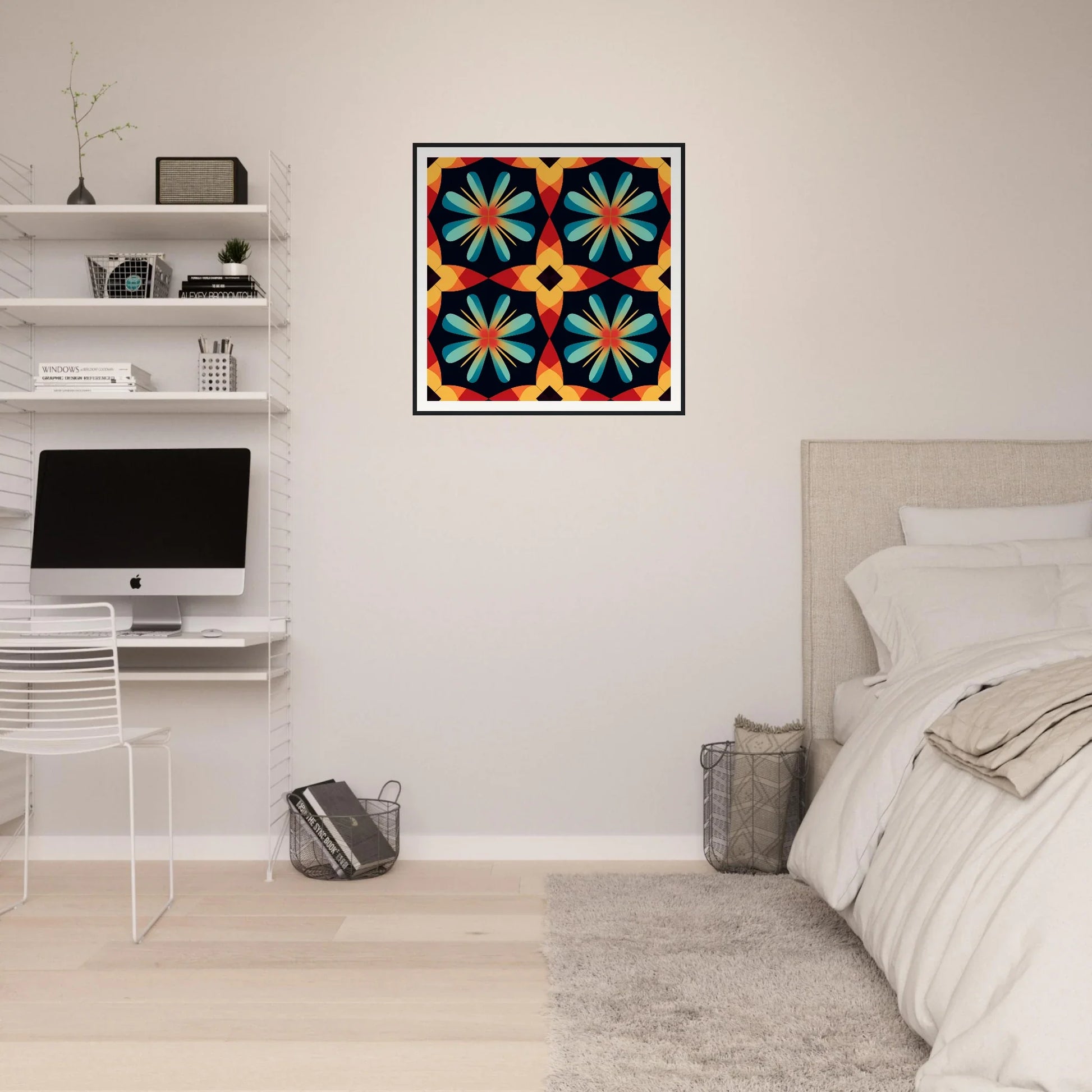 Step into a realm where art and the cosmos intertwine, creating a mesmerizing visual story. Introducing the Cosmic Geometry Symphony, an unparalleled framed wall art piece from SPECIAL EDITION ART™ . This masterpiece welcomes you to an abstract world of symmetrical patterns—a kaleidoscope of geometric and floral motifs crafted with the latest AI image generation technology.
