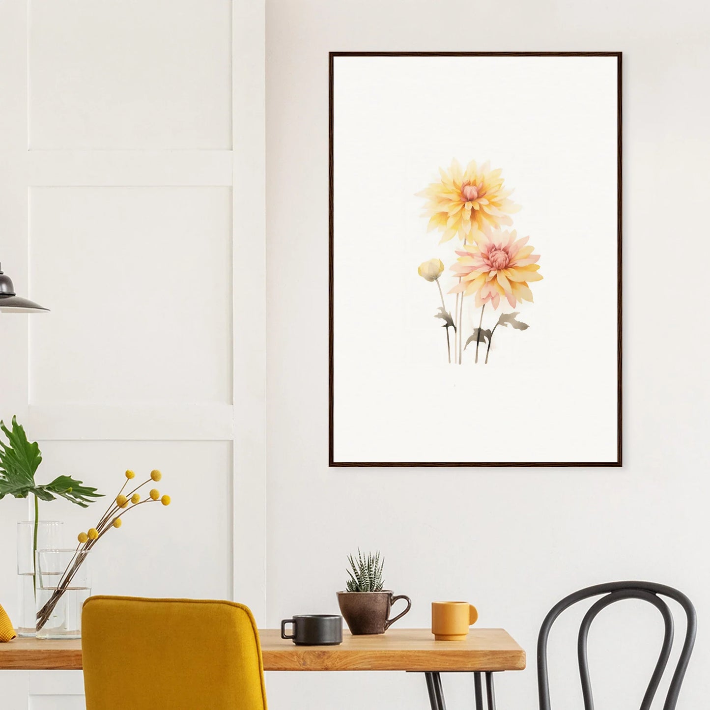 Our Dream Pop Botany framed wall art is a versatile addition to your home décor. Its muted pastel color palette, featuring soft pink and delicate yellow, fits seamlessly into bedrooms and living rooms alike. With a style that marries watercolour art with a serene and peaceful mood, this piece contributes to a calming ambiance, making it the perfect choice for spaces where relaxation and tranquility are paramount. The abstract, floral, and botanical subjects are ideal for those who appreciate nature's beauty combined with artistic abstraction.