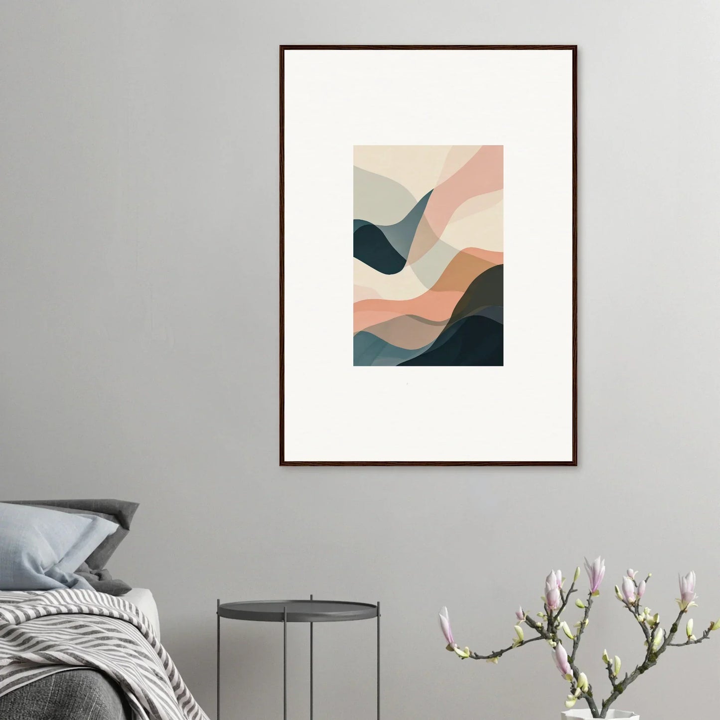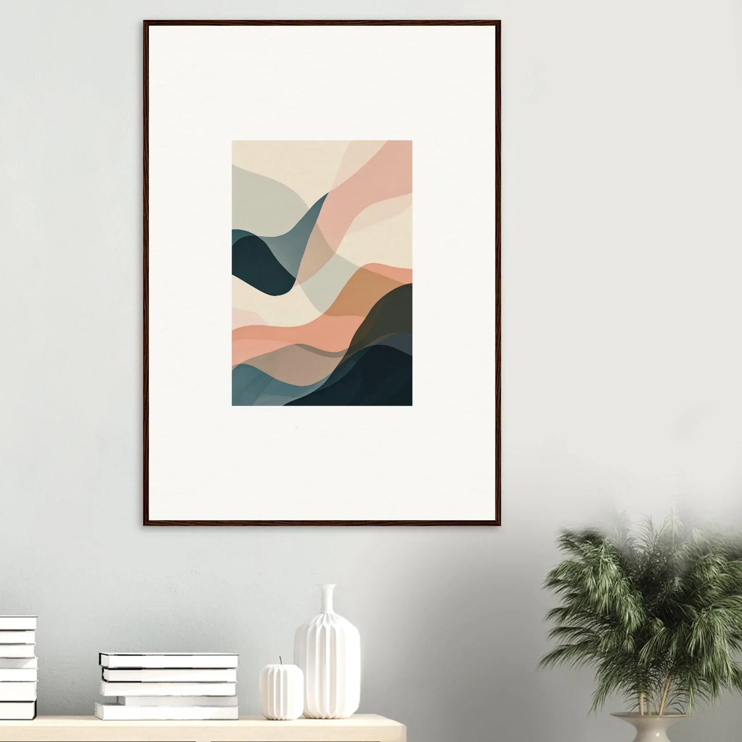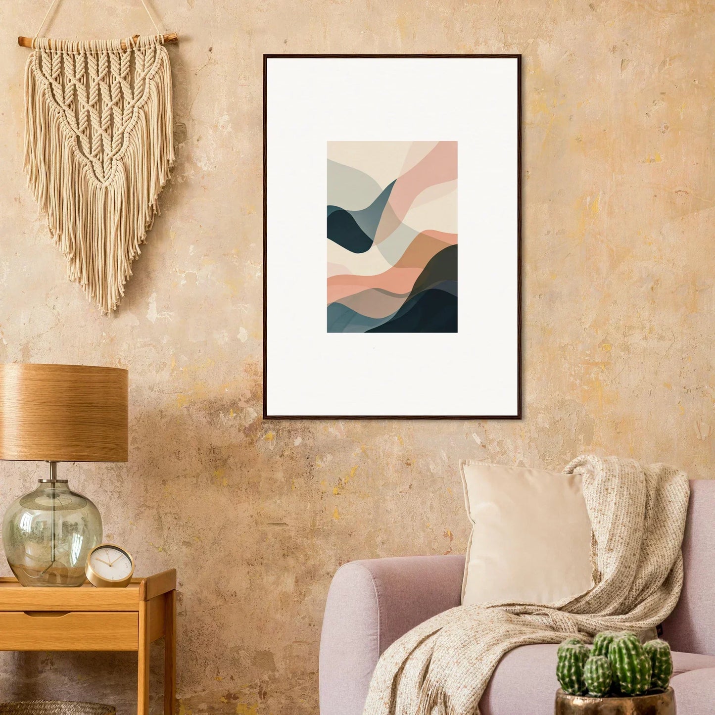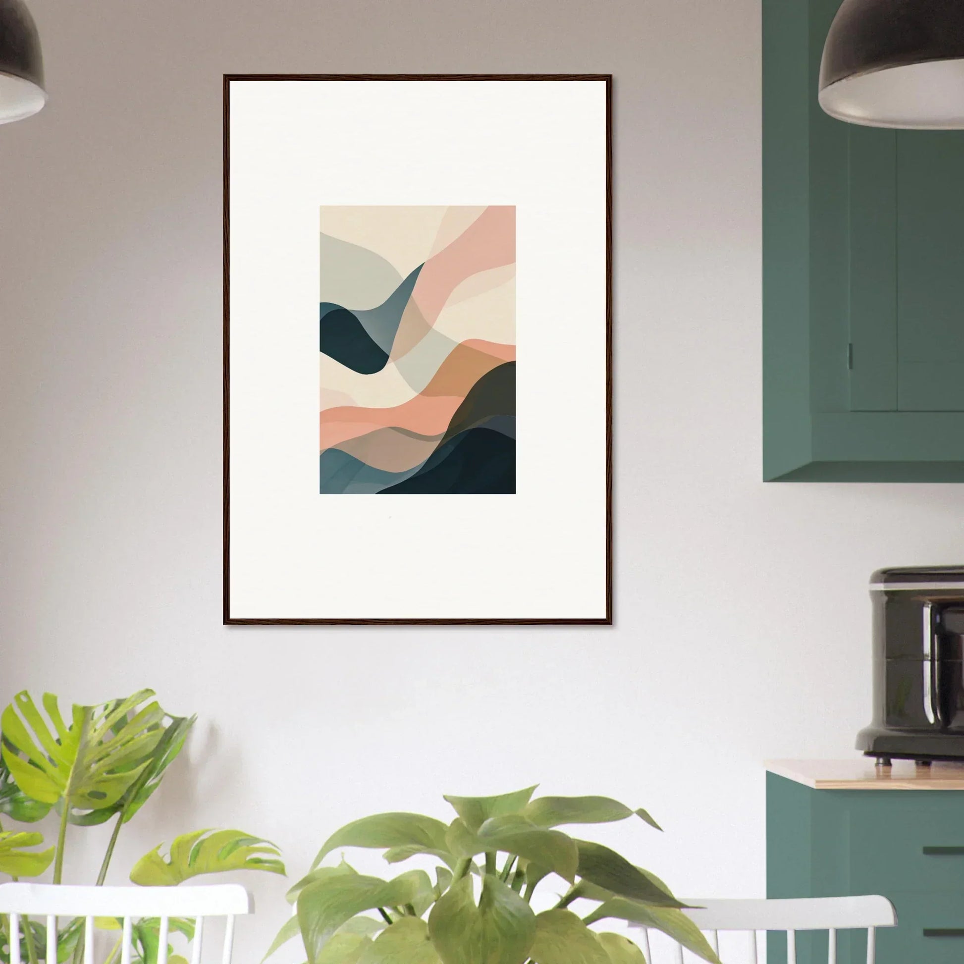 This framed art piece features an analogous color palette and pastel hues, perfectly blending natural tones to enhance any living room or home office. The abstract art and patterns evoke a mood of creativity and serenity, transforming your space into a sanctuary of peace. The big margins allow the art to breathe and make a bold statement on your walls.