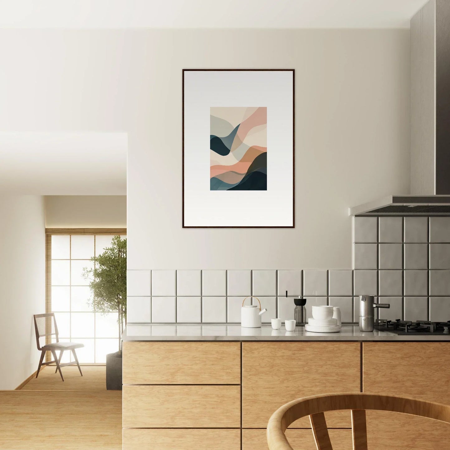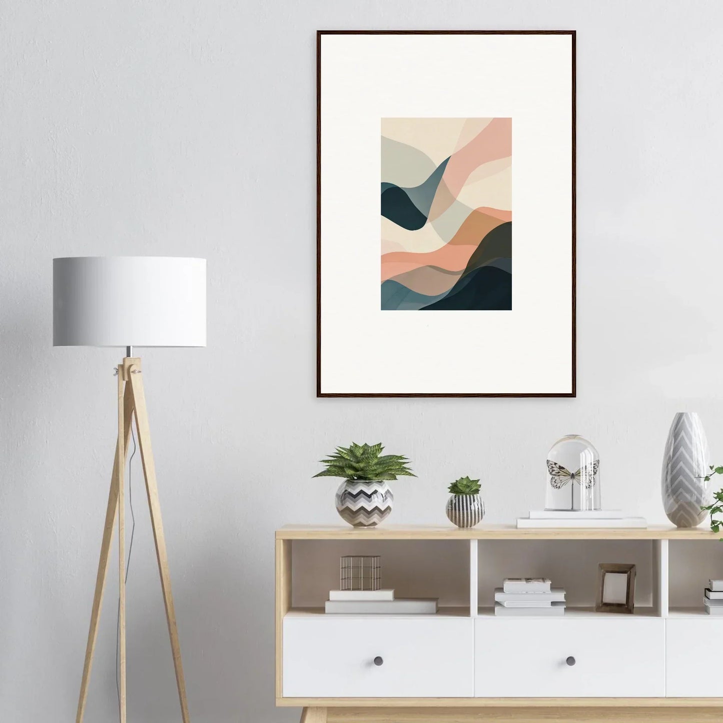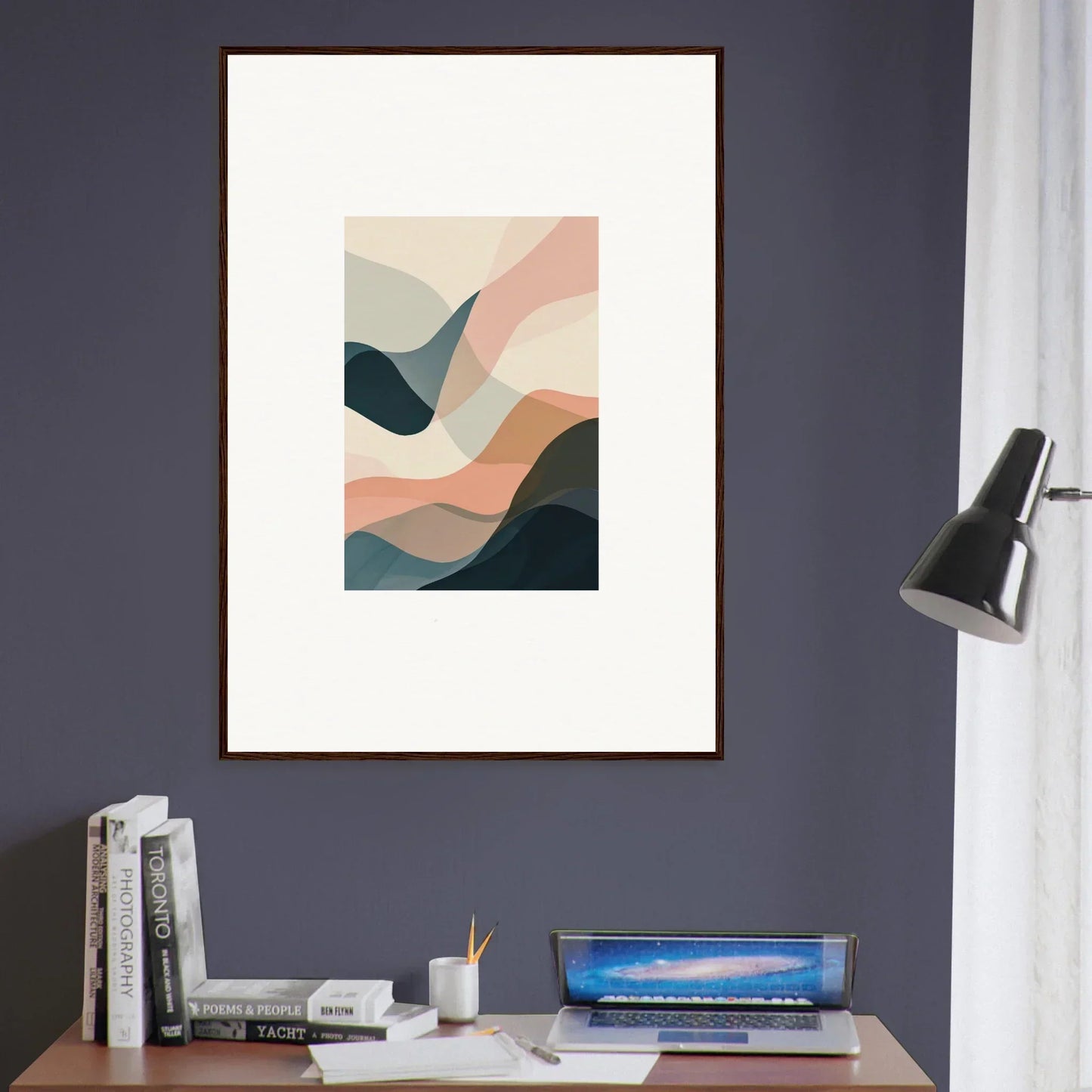 This framed art piece features an analogous color palette and pastel hues, perfectly blending natural tones to enhance any living room or home office. The abstract art and patterns evoke a mood of creativity and serenity, transforming your space into a sanctuary of peace. The big margins allow the art to breathe and make a bold statement on your walls.