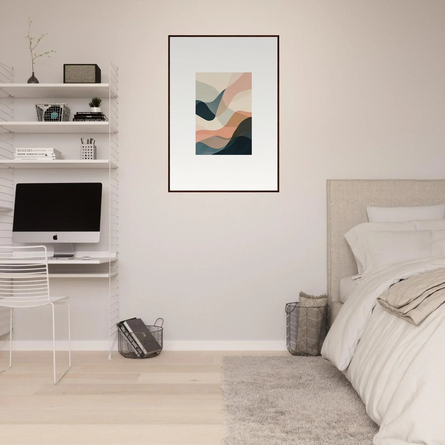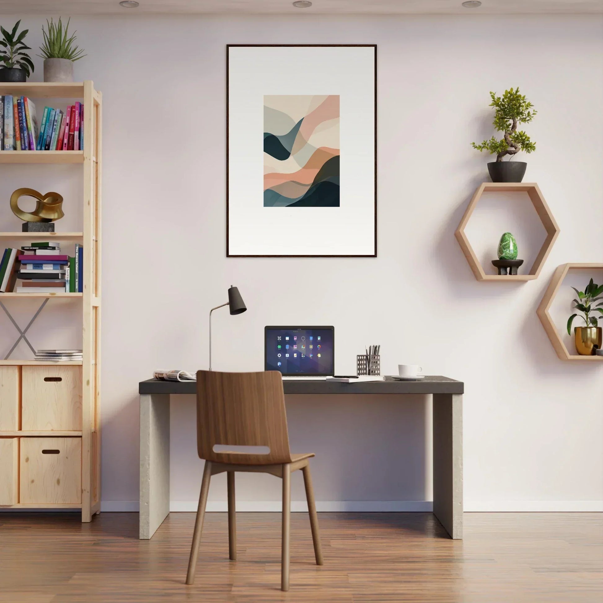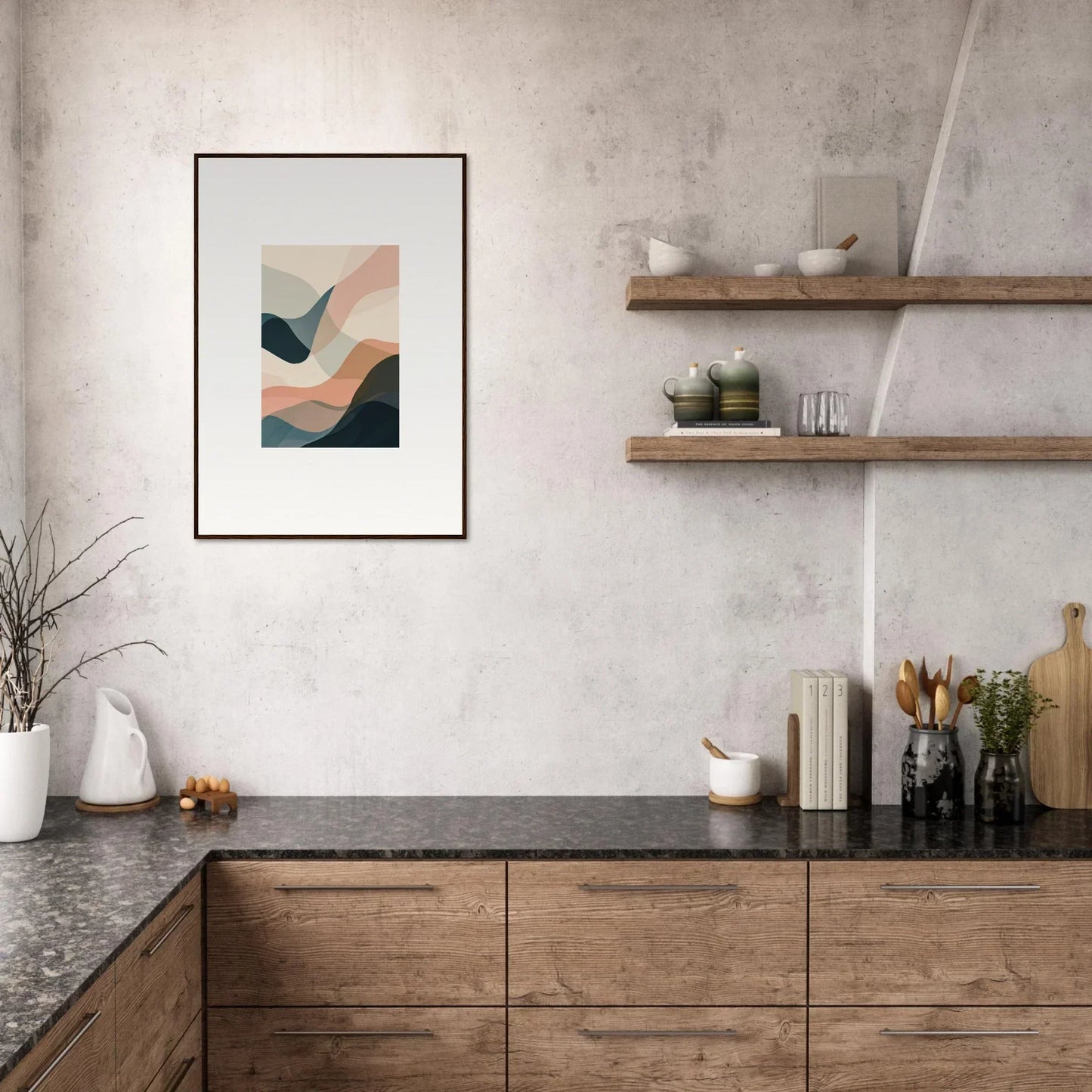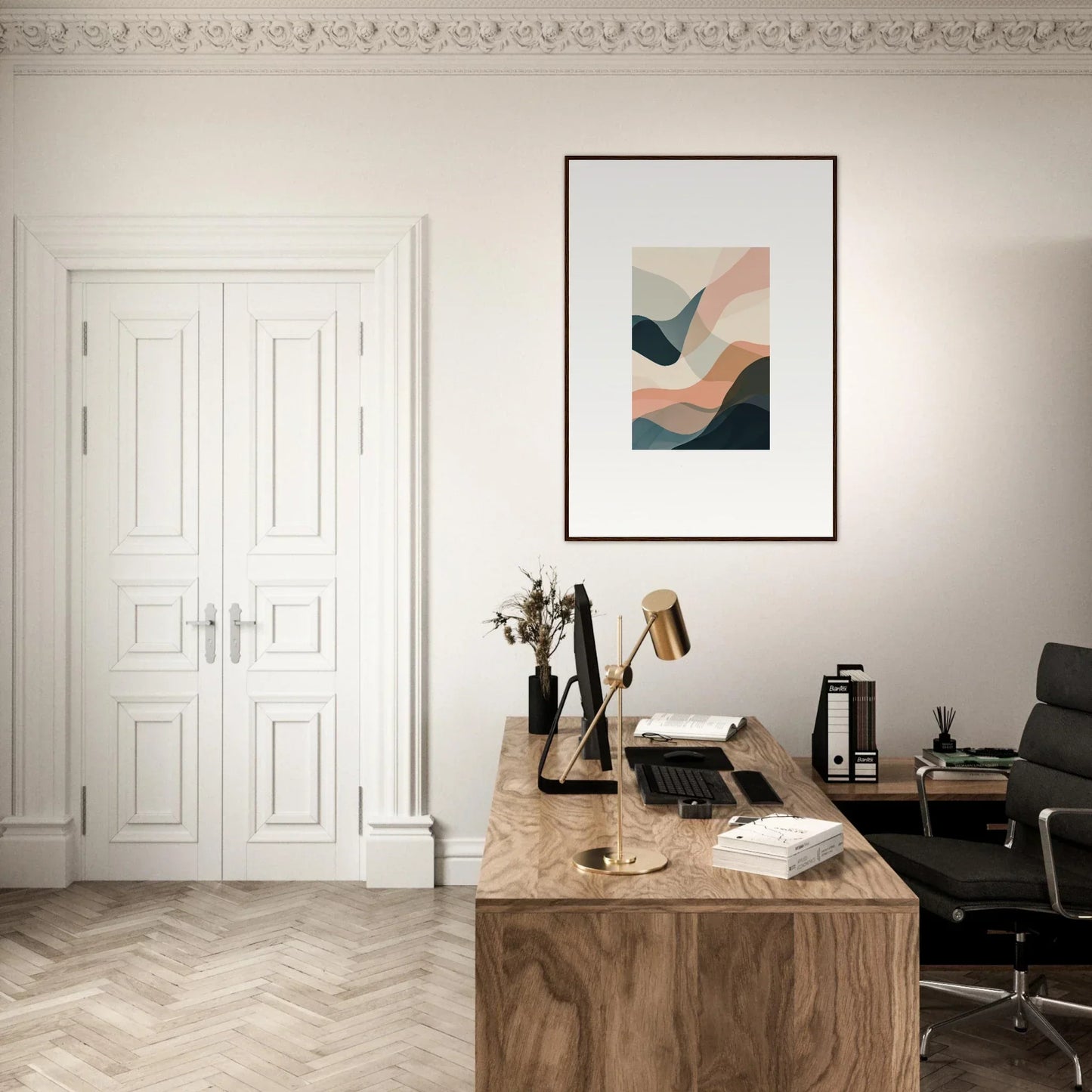 This framed art piece features an analogous color palette and pastel hues, perfectly blending natural tones to enhance any living room or home office. The abstract art and patterns evoke a mood of creativity and serenity, transforming your space into a sanctuary of peace. The big margins allow the art to breathe and make a bold statement on your walls.
