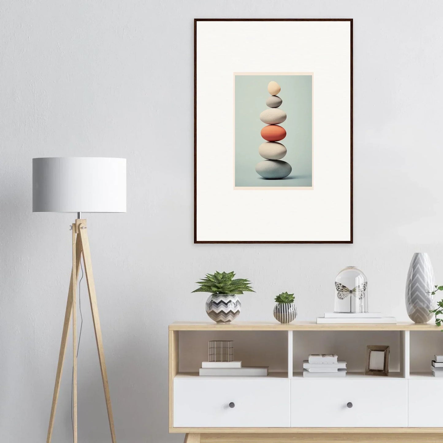 The "Egg Wanders Reverie" framed wall art is an ideal addition to spaces that prize serenity and peace. Its minimalist abstract design, featuring patterns and textures in a muted pastel color palette, harmonizes with various home decors, particularly in living rooms and home offices. The artwork not only beautifies but also evokes a mood of focused tranquility, making it the centerpiece of any room.