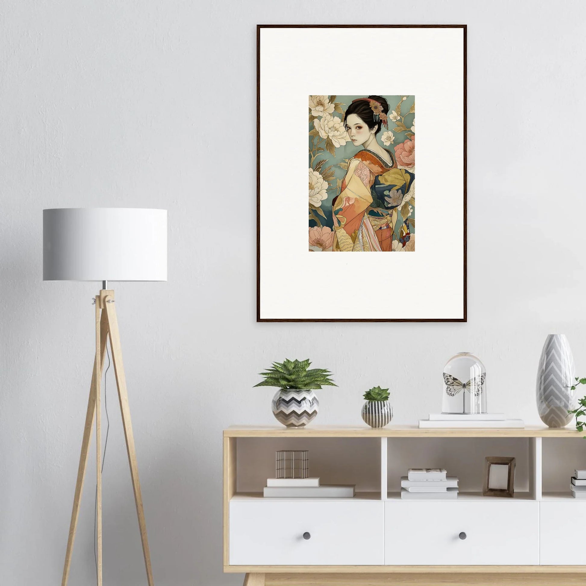 Inspired by traditional Japanese art, this figurative and botanical piece creates a visual feast for the eyes. Its elegant composition and floral motifs bring a touch of exotic allure, seamlessly integrating into various decor styles.