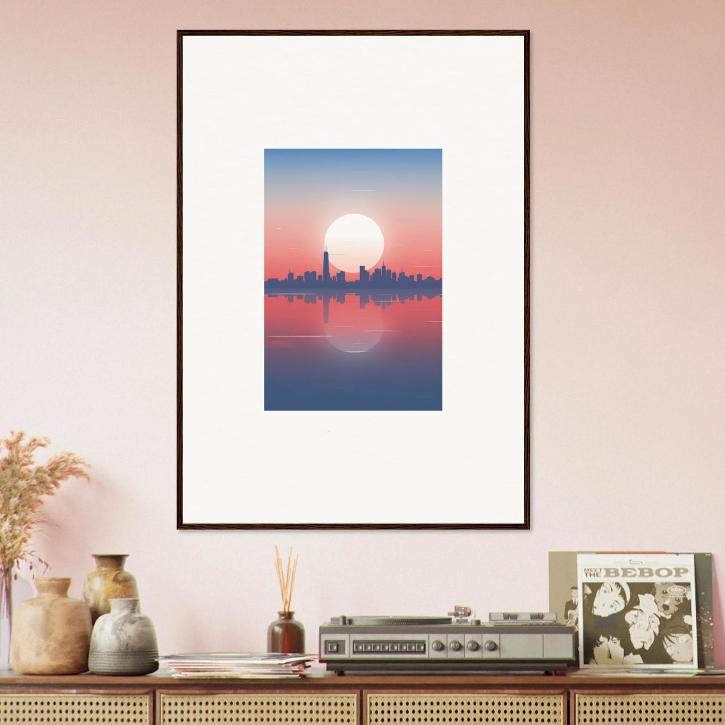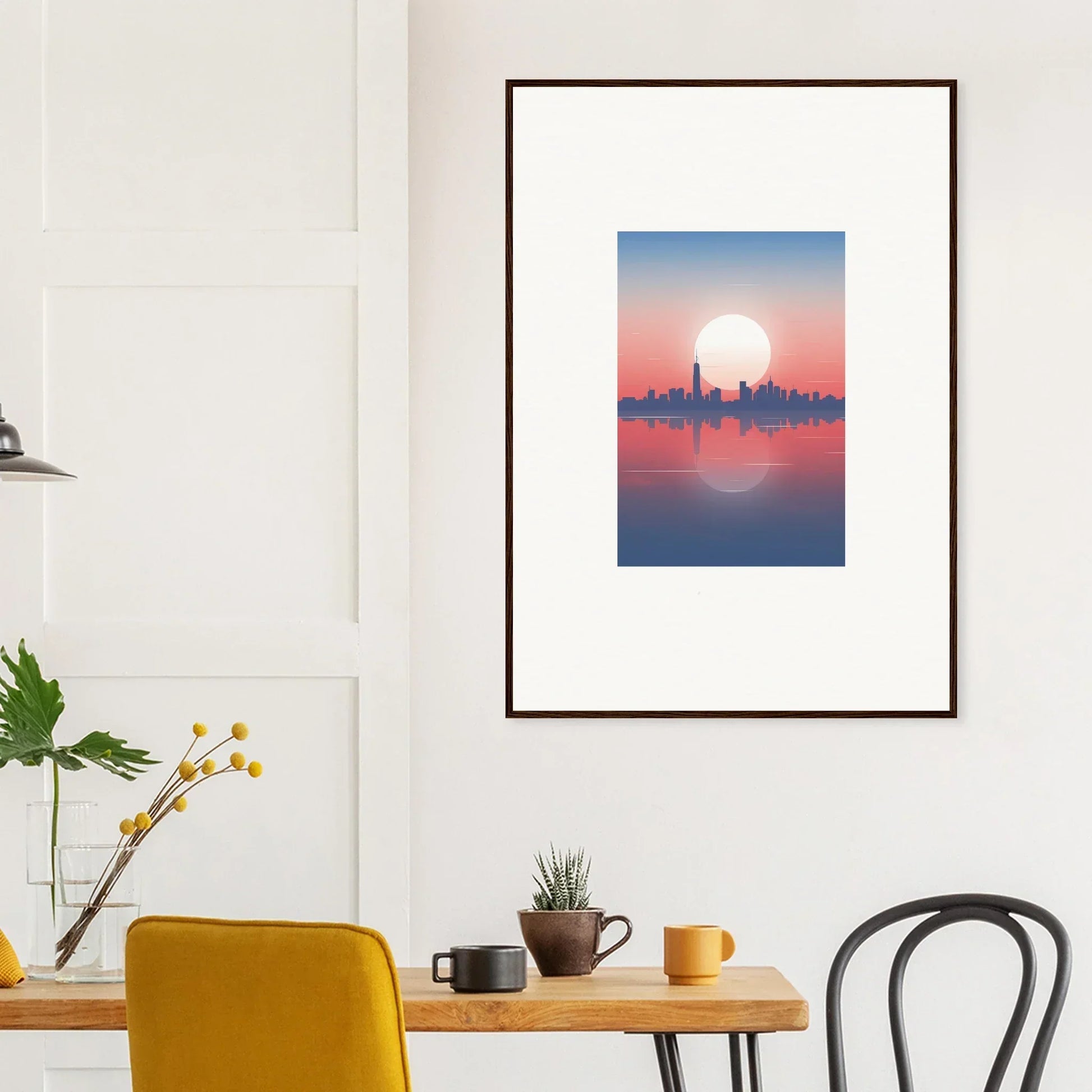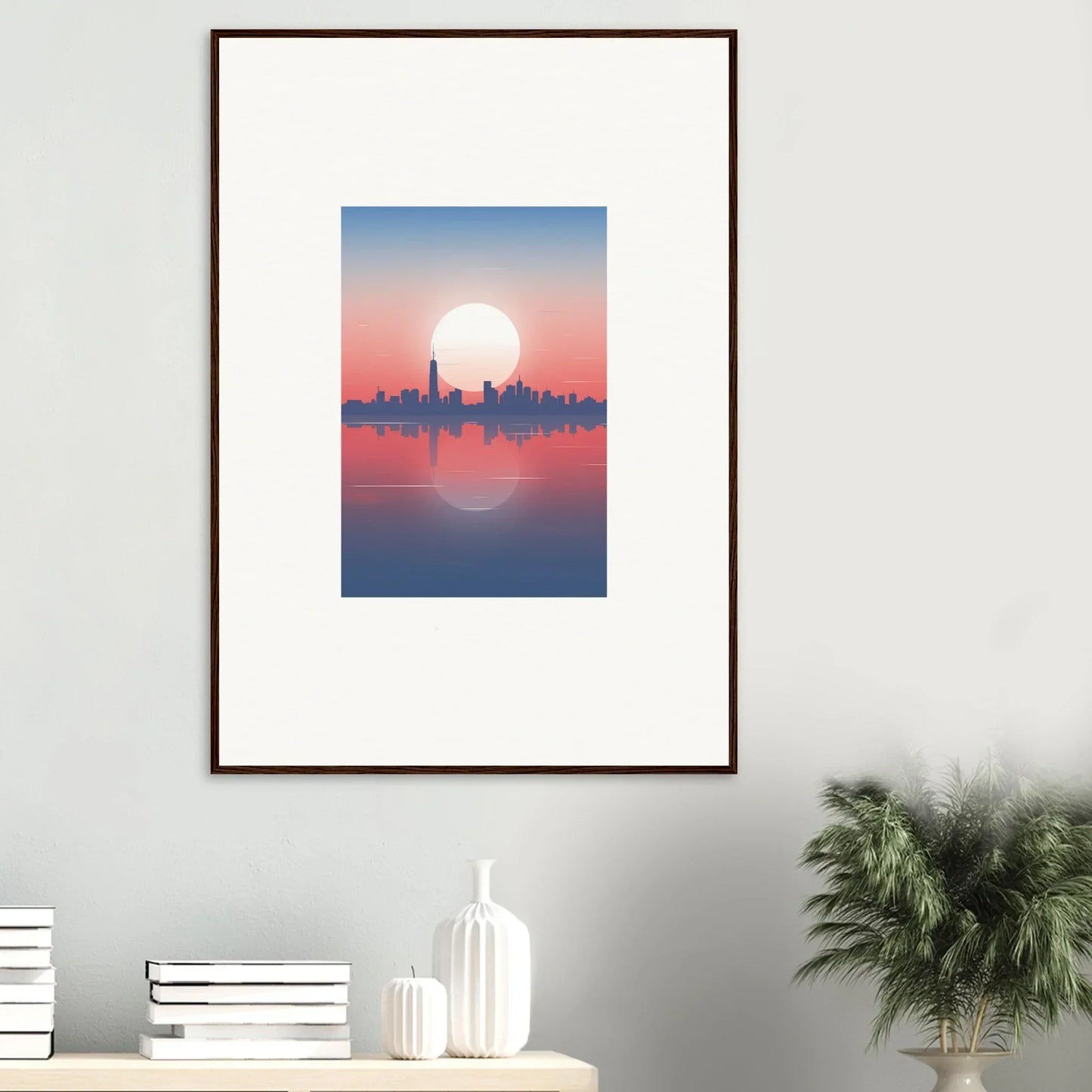 Imagine a moment where art and craftsmanship meet, creating a timeless piece that transforms your living space into a gallery of elegance. Presenting the Eloquent Dusk Memento by SPECIAL EDITION ART™ —a masterpiece that captures the serene beauty of architecture and cityscapes, bathed in the hues of an inspiring dusk. Featuring imagery generated with the latest AI technology, this framed wall art is a blend of modern creativity and classic sophistication.