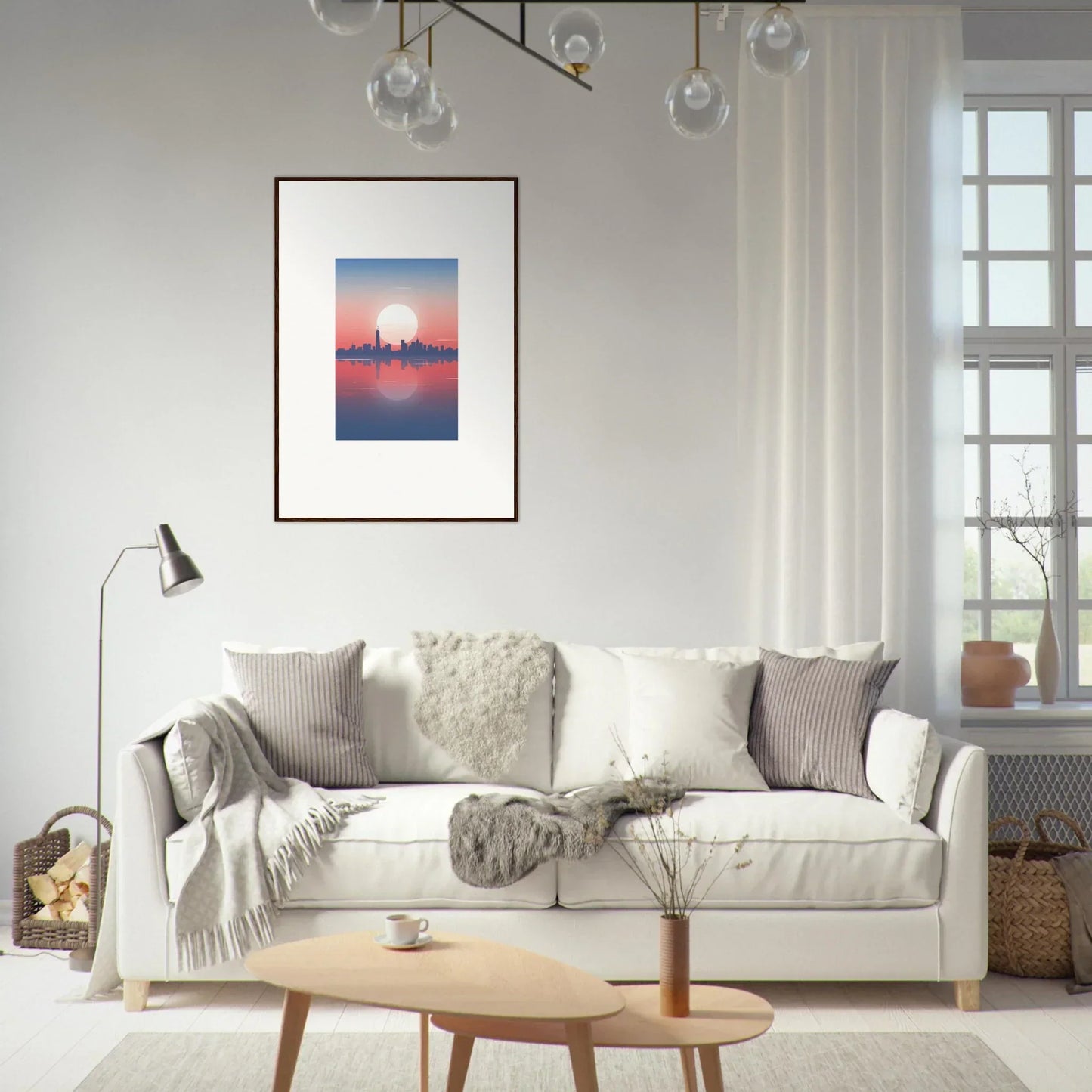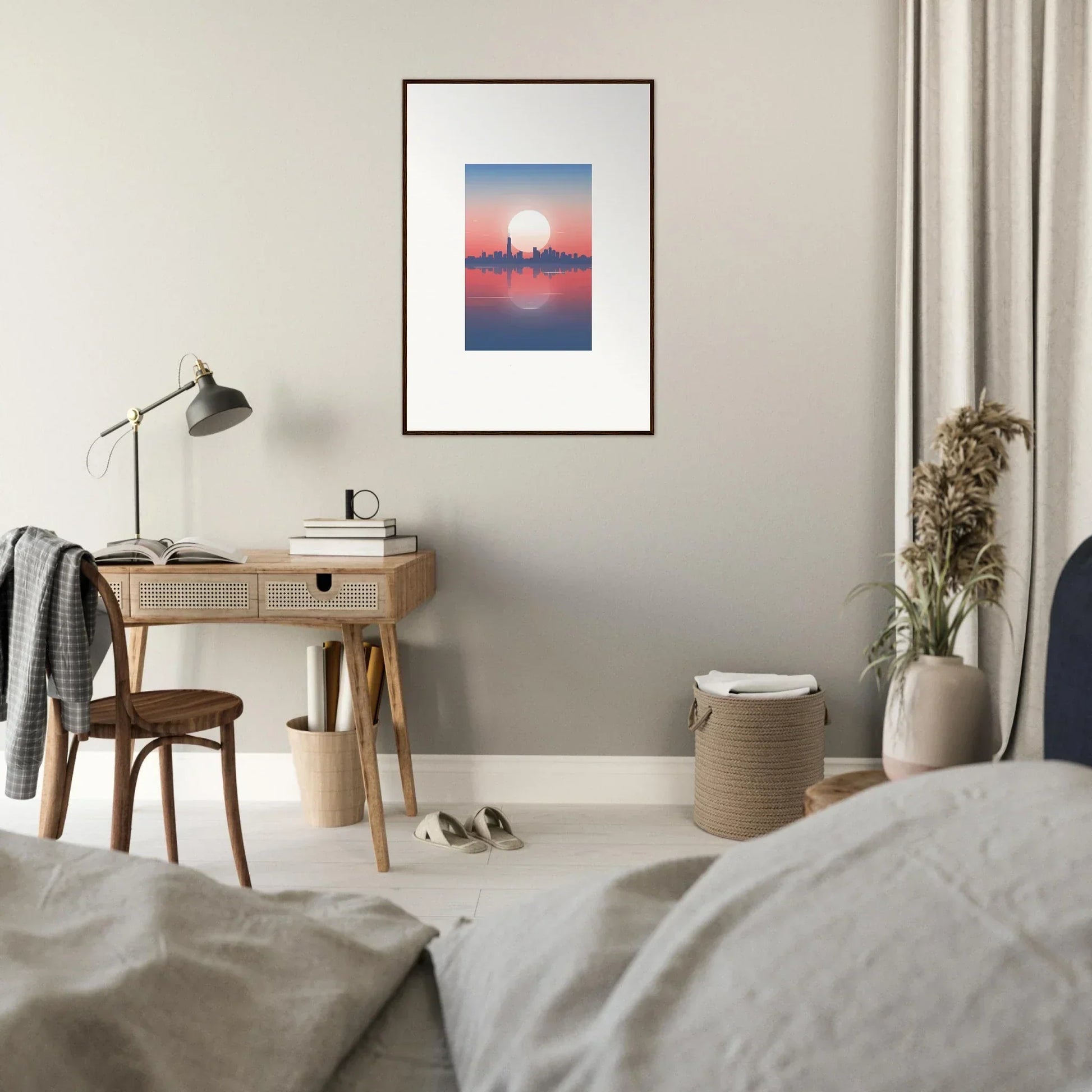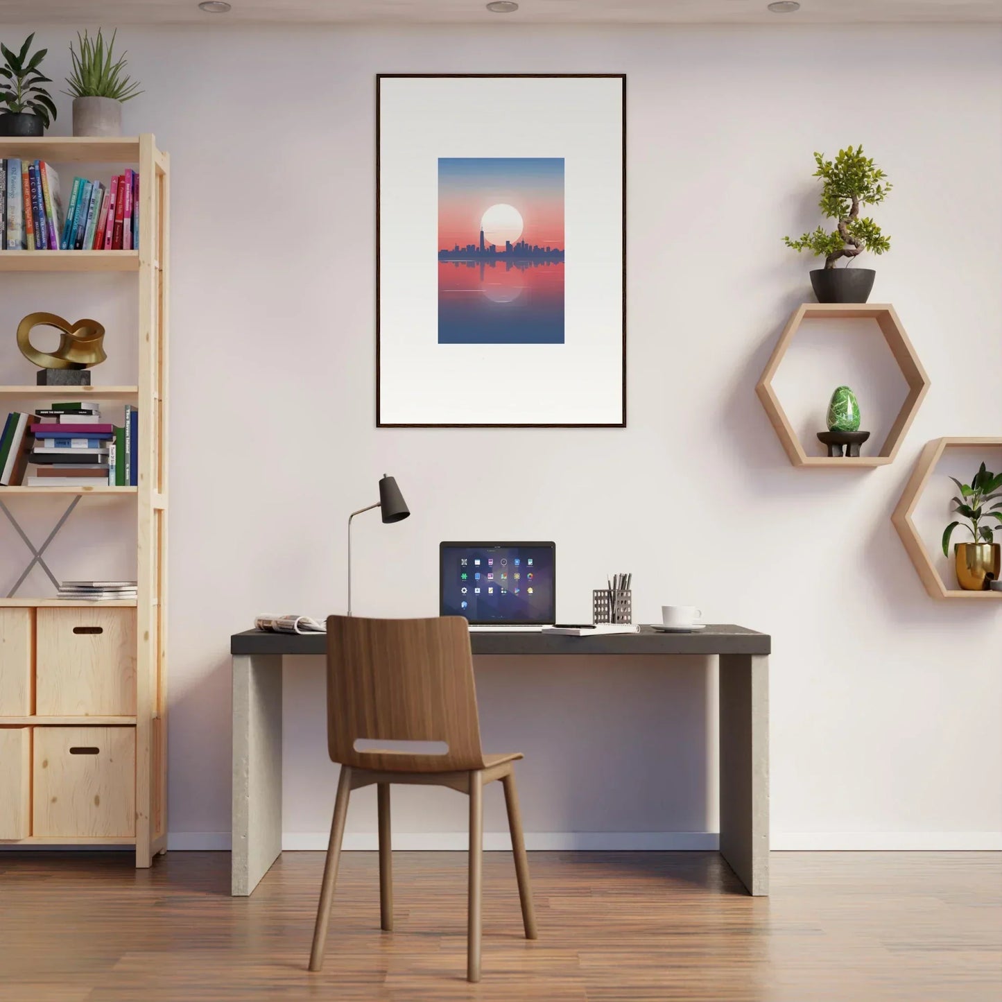 Imagine a moment where art and craftsmanship meet, creating a timeless piece that transforms your living space into a gallery of elegance. Presenting the Eloquent Dusk Memento by SPECIAL EDITION ART™ —a masterpiece that captures the serene beauty of architecture and cityscapes, bathed in the hues of an inspiring dusk. Featuring imagery generated with the latest AI technology, this framed wall art is a blend of modern creativity and classic sophistication.