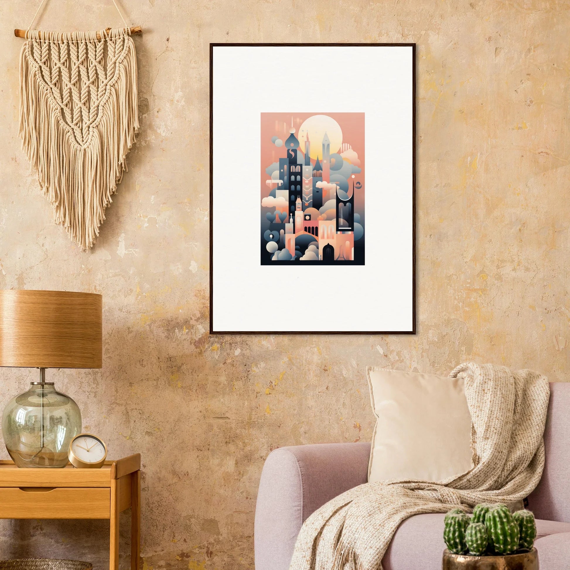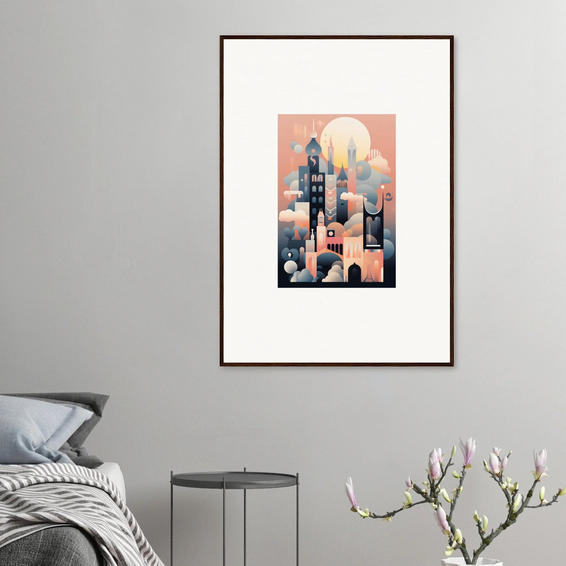Picture the serene and peaceful atmosphere that fills a room adorned with Ephemeral Castle Whispers. The soft palette of blues and pastels instantly brings a sense of serenity and creativity, perfect for spaces like your home office or living room. The abstract architectural cityscape is a celebration of structure and imagination, inviting anyone who beholds it into a world of tranquility and inspiration.