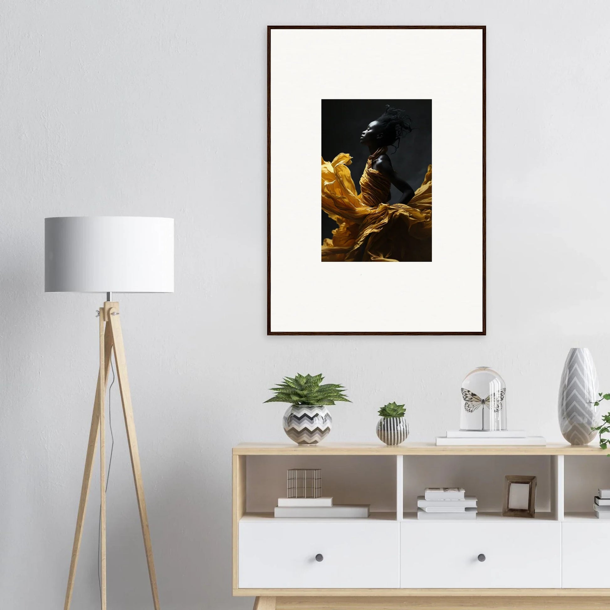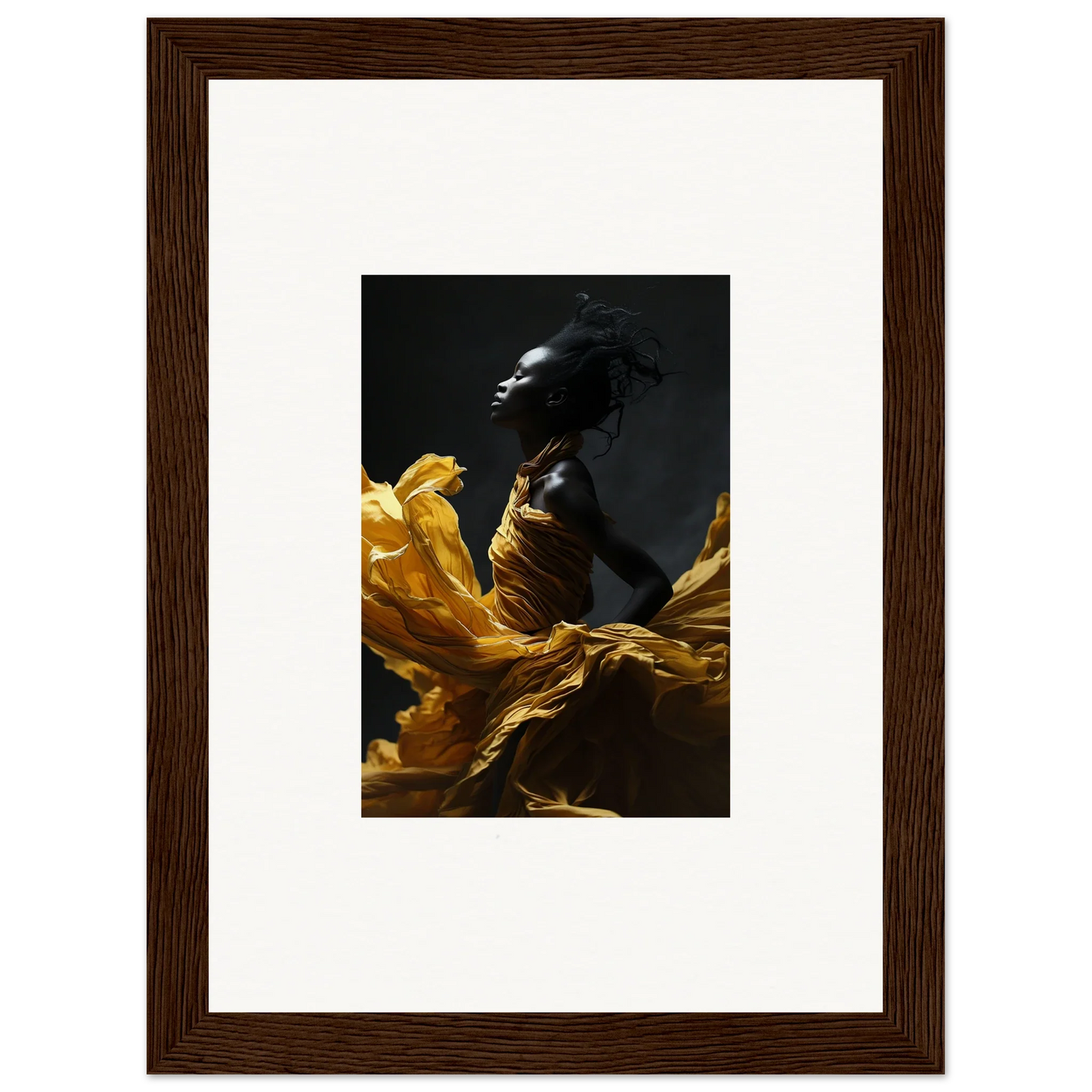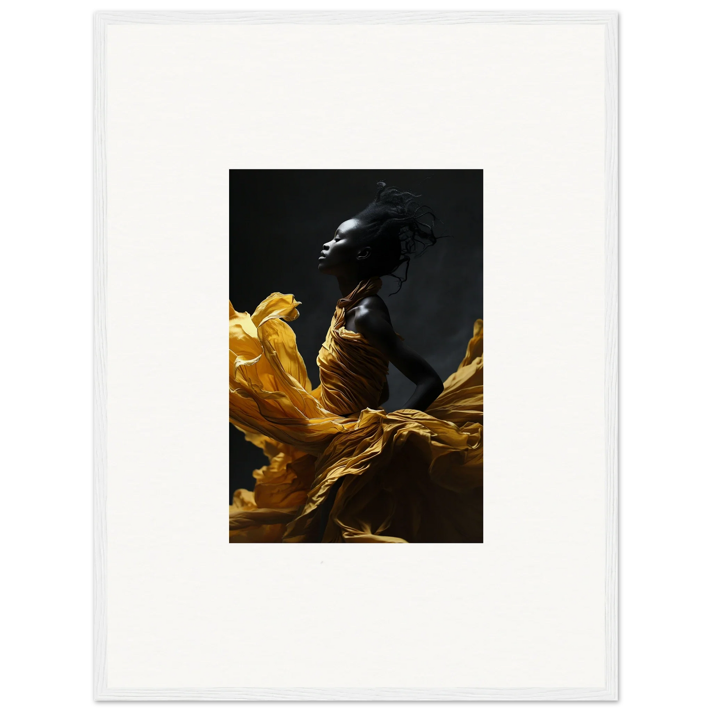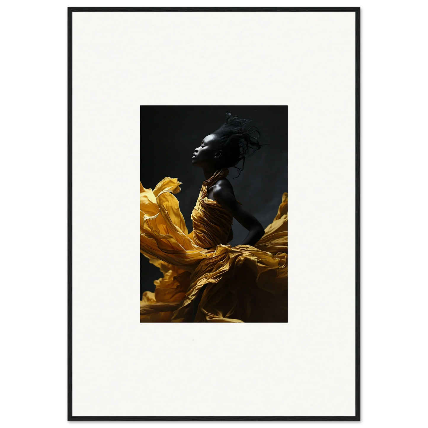Whether it’s a creative sanctuary in your bedroom or an inspiring centerpiece in your living room, Ephemeral Silken Reveries grooves effortlessly with its complementary color palette, primarily featuring spirited yellows and grounding blacks. It’s not just a piece of art; it exemplifies Photography Art, capturing an essence that appeals to lovers of portraits and fashion alike.