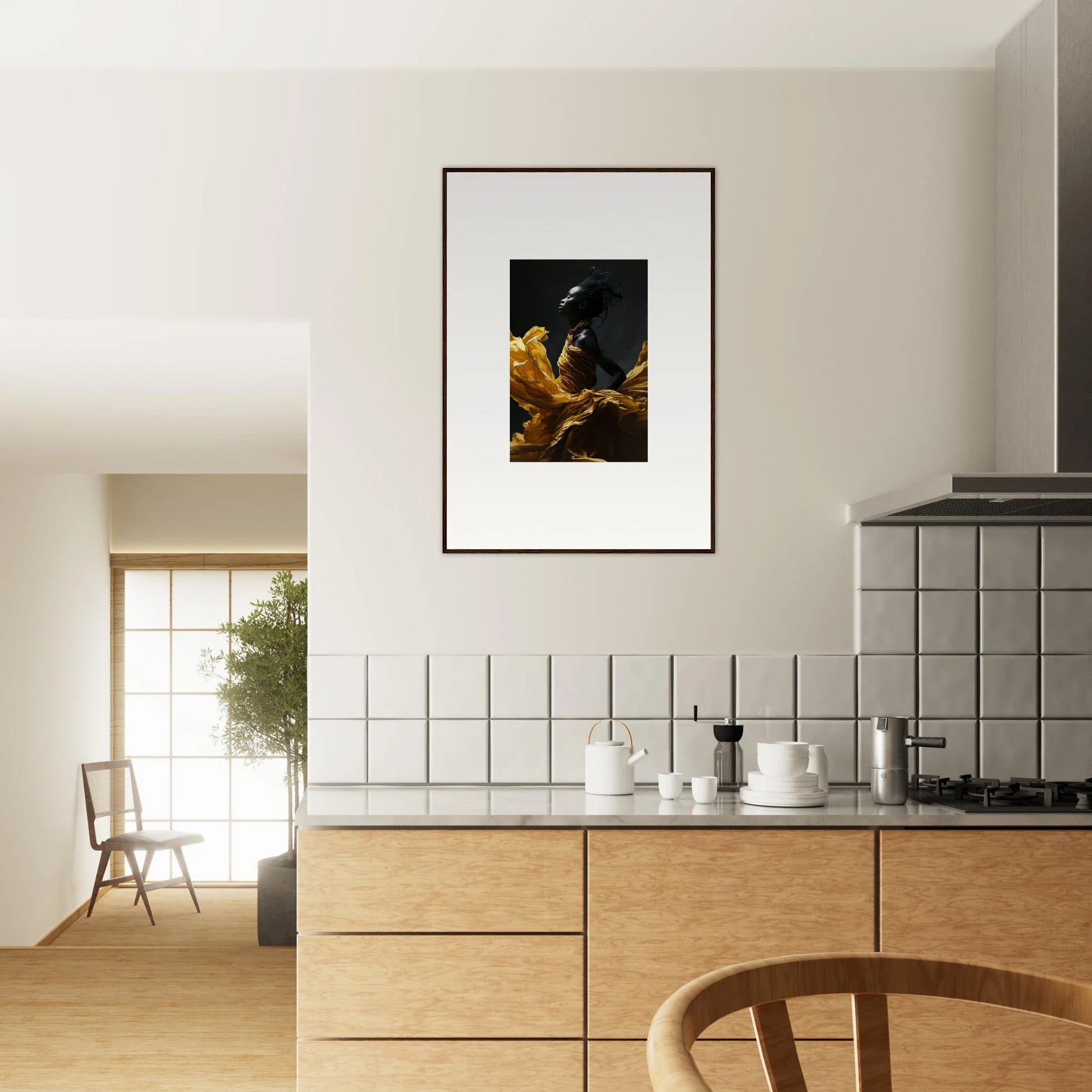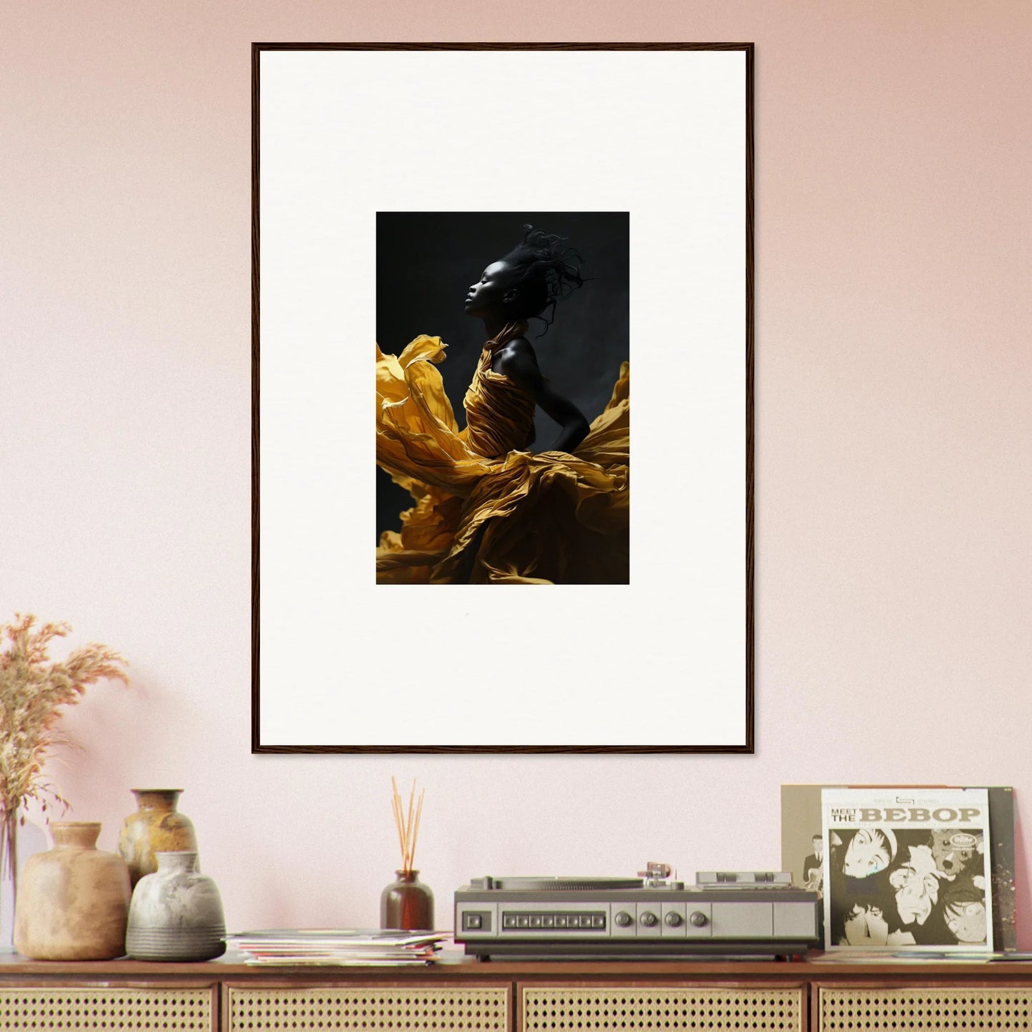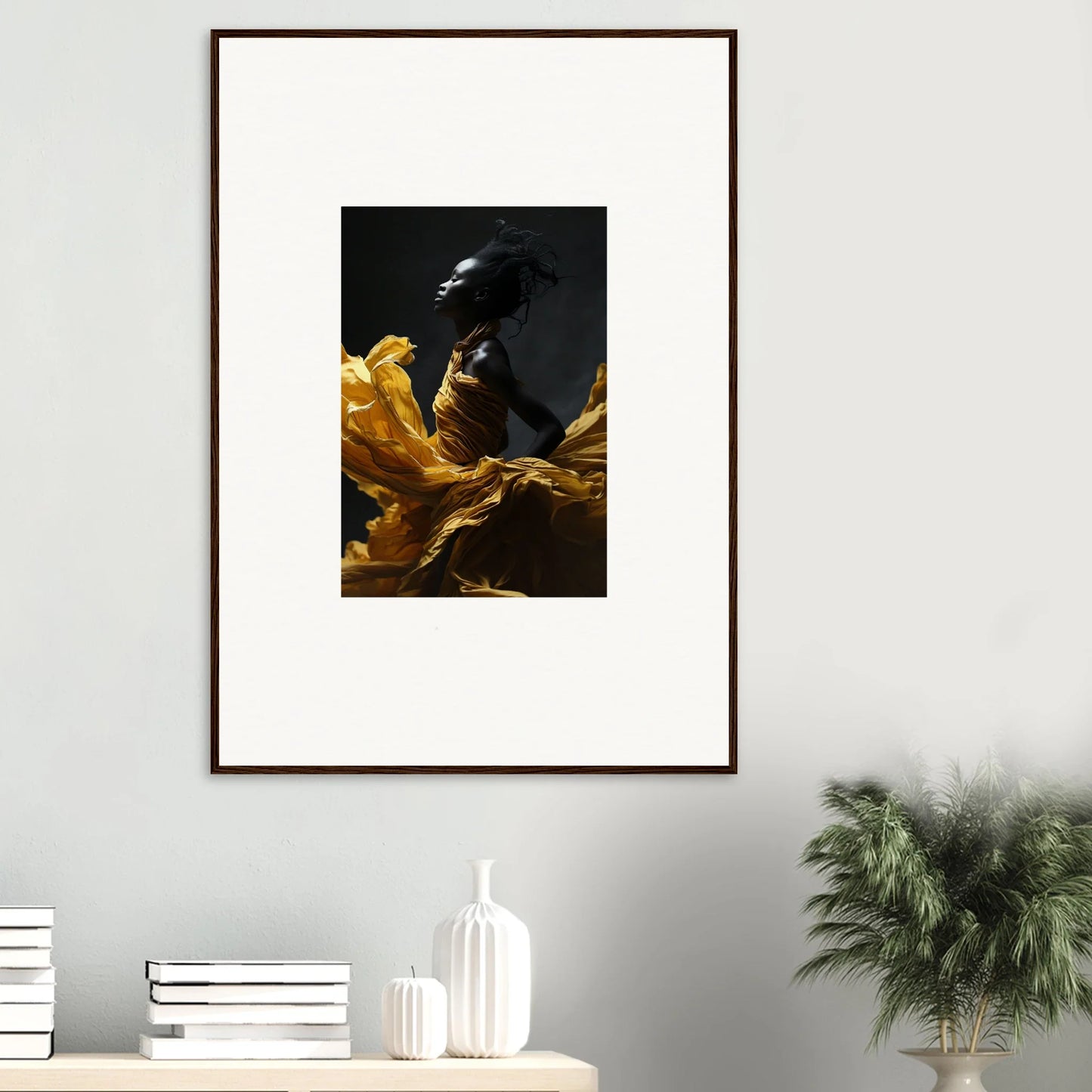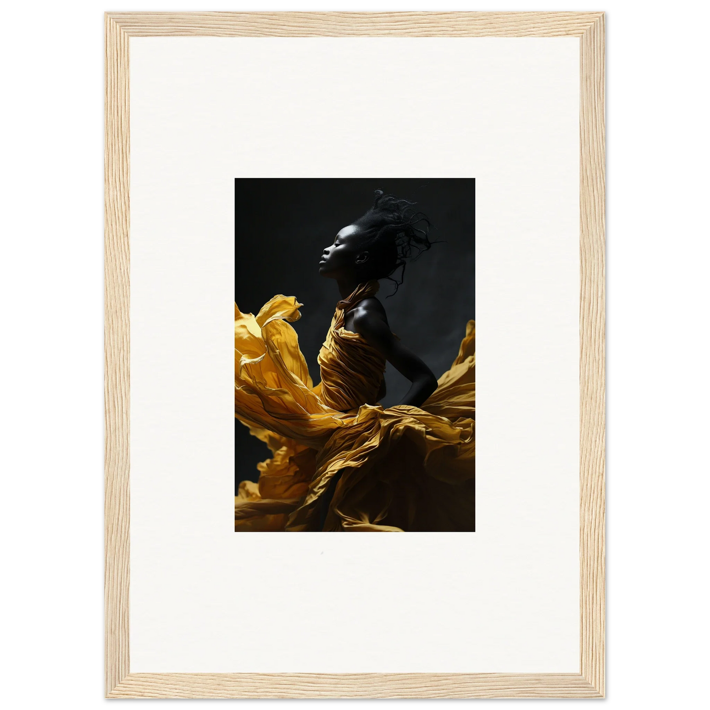 Whether it’s a creative sanctuary in your bedroom or an inspiring centerpiece in your living room, Ephemeral Silken Reveries grooves effortlessly with its complementary color palette, primarily featuring spirited yellows and grounding blacks. It’s not just a piece of art; it exemplifies Photography Art, capturing an essence that appeals to lovers of portraits and fashion alike.