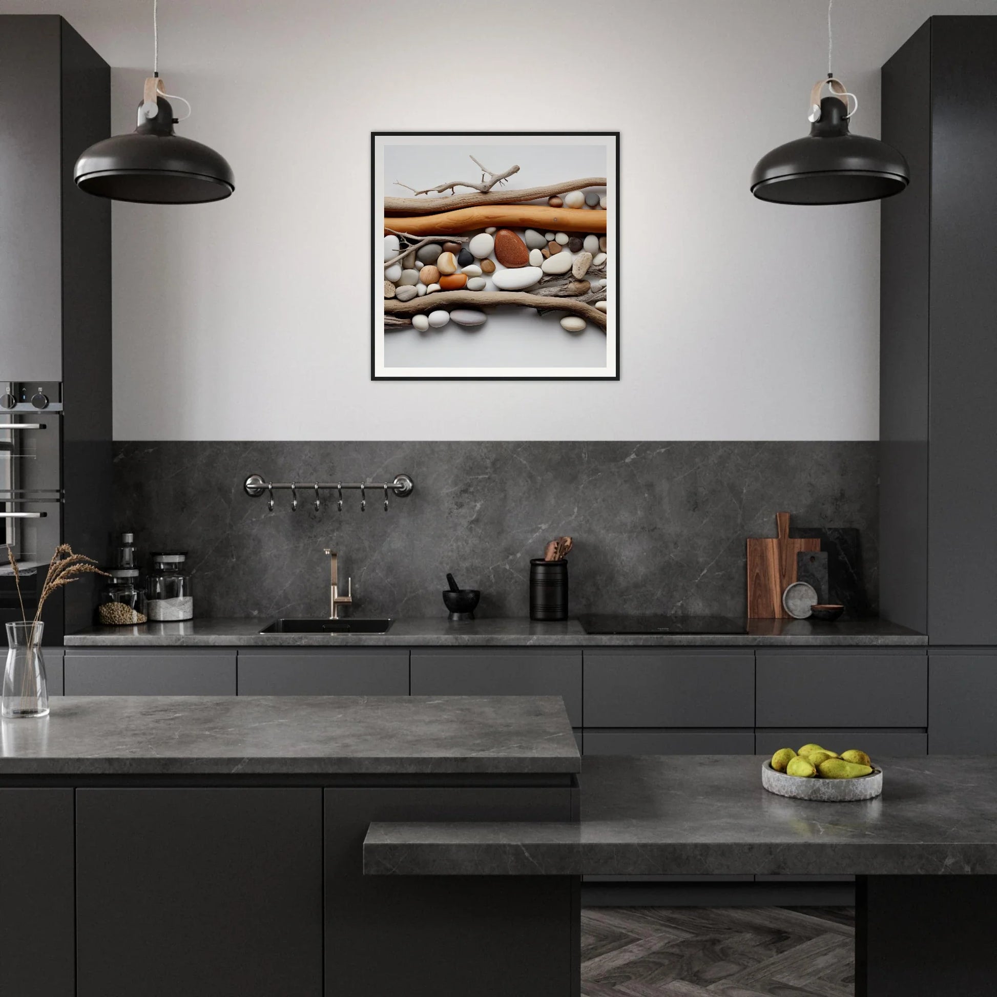- Vividly captures the natural beauty of earthy pebbles and driftwood.
