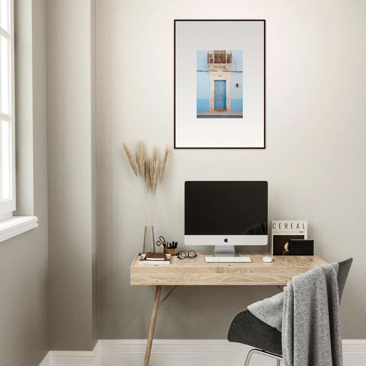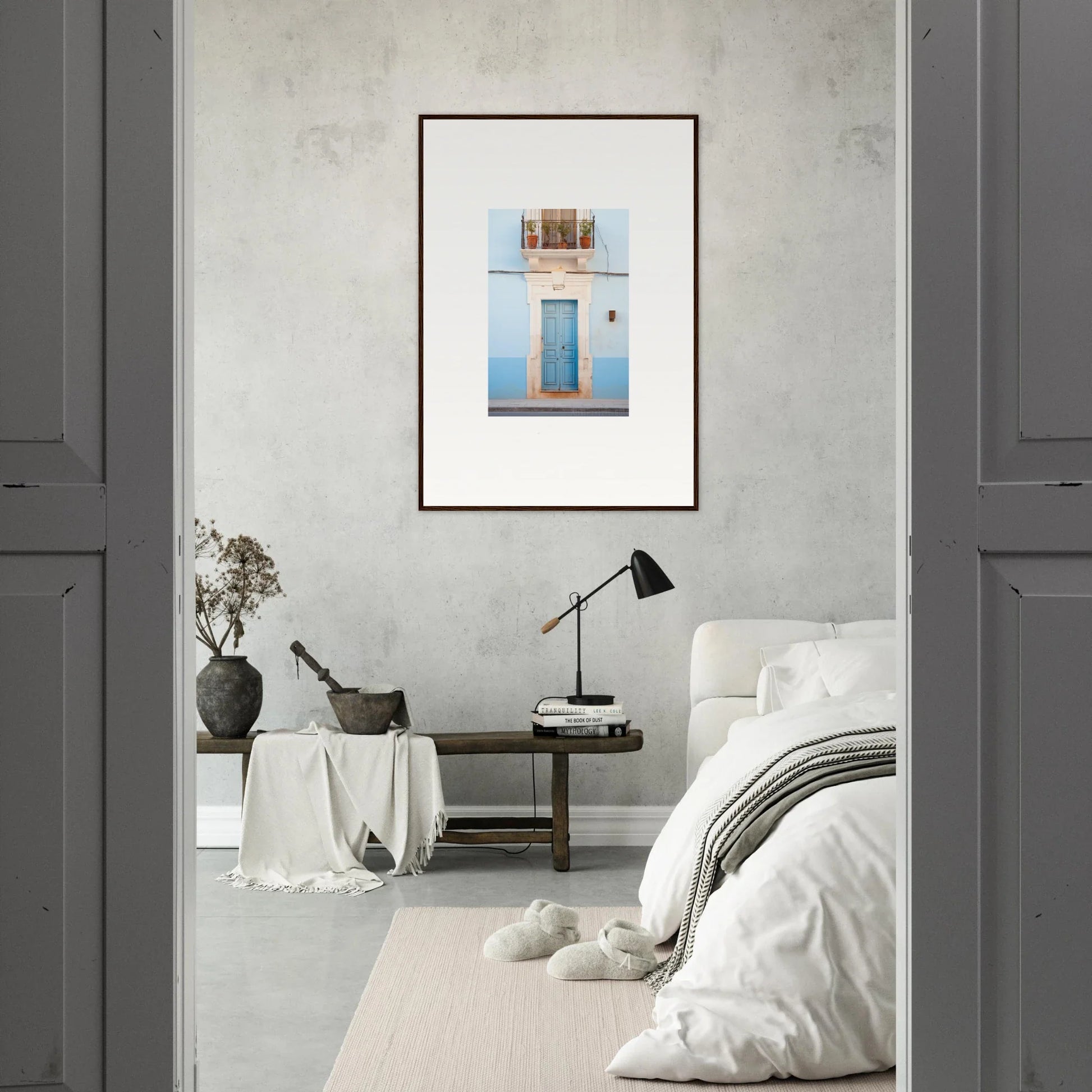 Immerse your home in the serene hues of our Ethereal Azul Entrance. This captivating artwork gracefully blends the antique charm of architectural photography with modern aesthetics, offering a perfect centerpiece for any room.