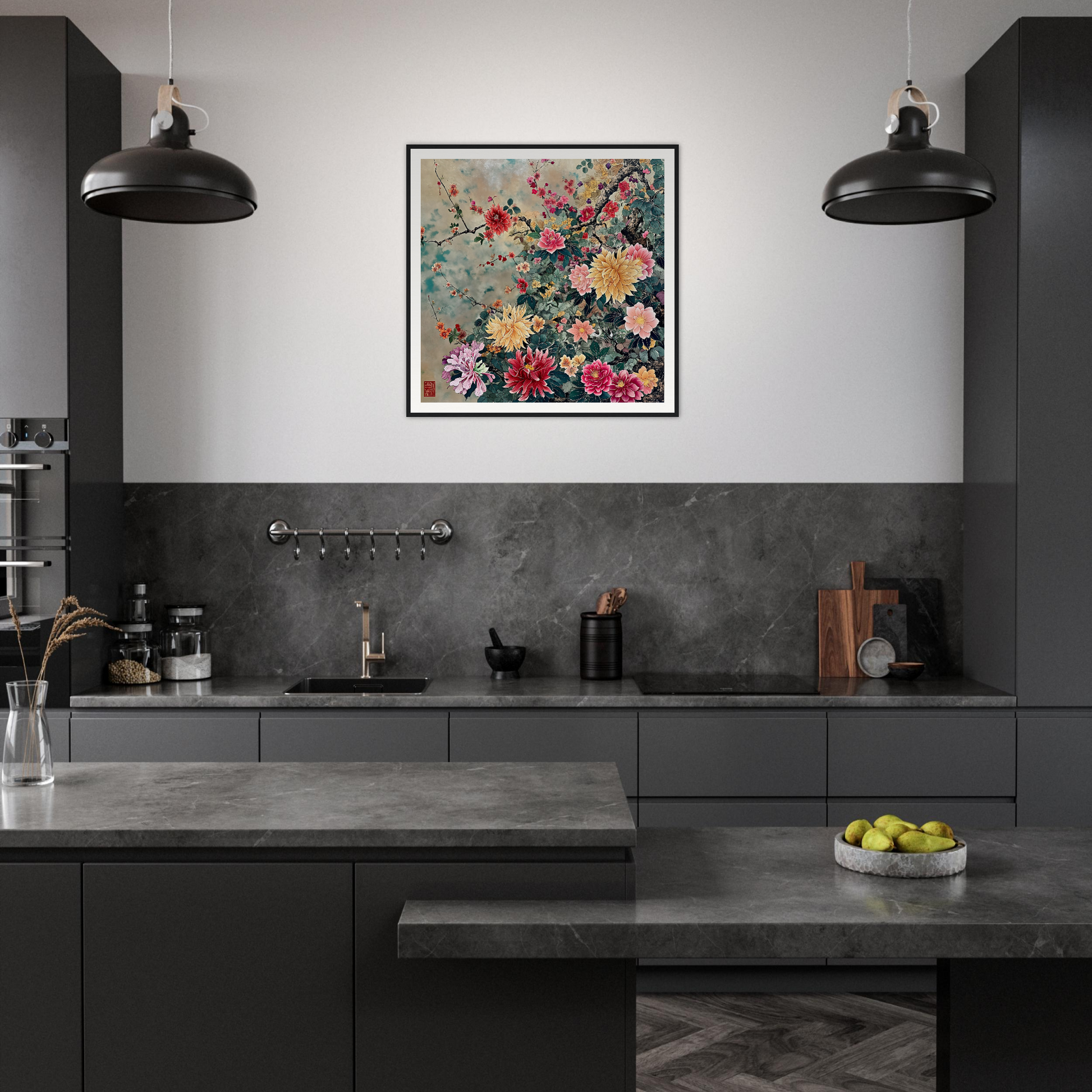 SPECIAL EDITION ART™ invites you into a universe where art and technology coalesce. Celebrate the transformative allure of floral art depicted through A.I. Accompanied by expertly crafted wooden frames, this piece adds sophistication to diverse settings, whether in your living room, bedroom, or favorite reading nook. Its vibrant reds and greens harmonize with neutral or pastel room colors, accenting contemporary or classic styles alike.