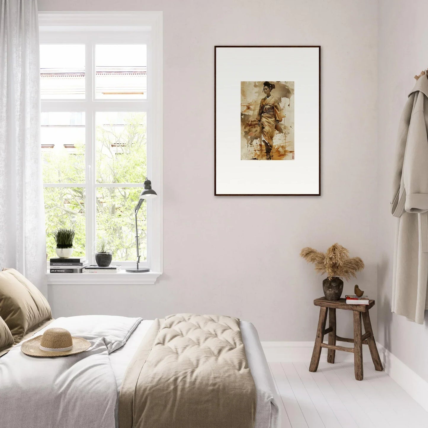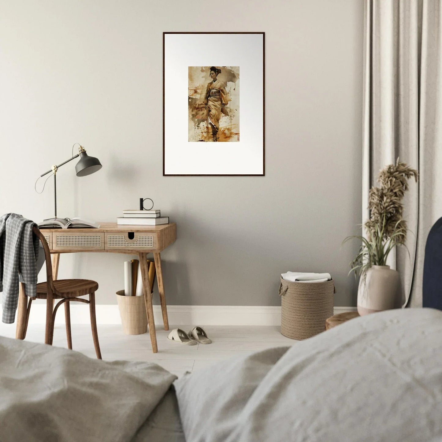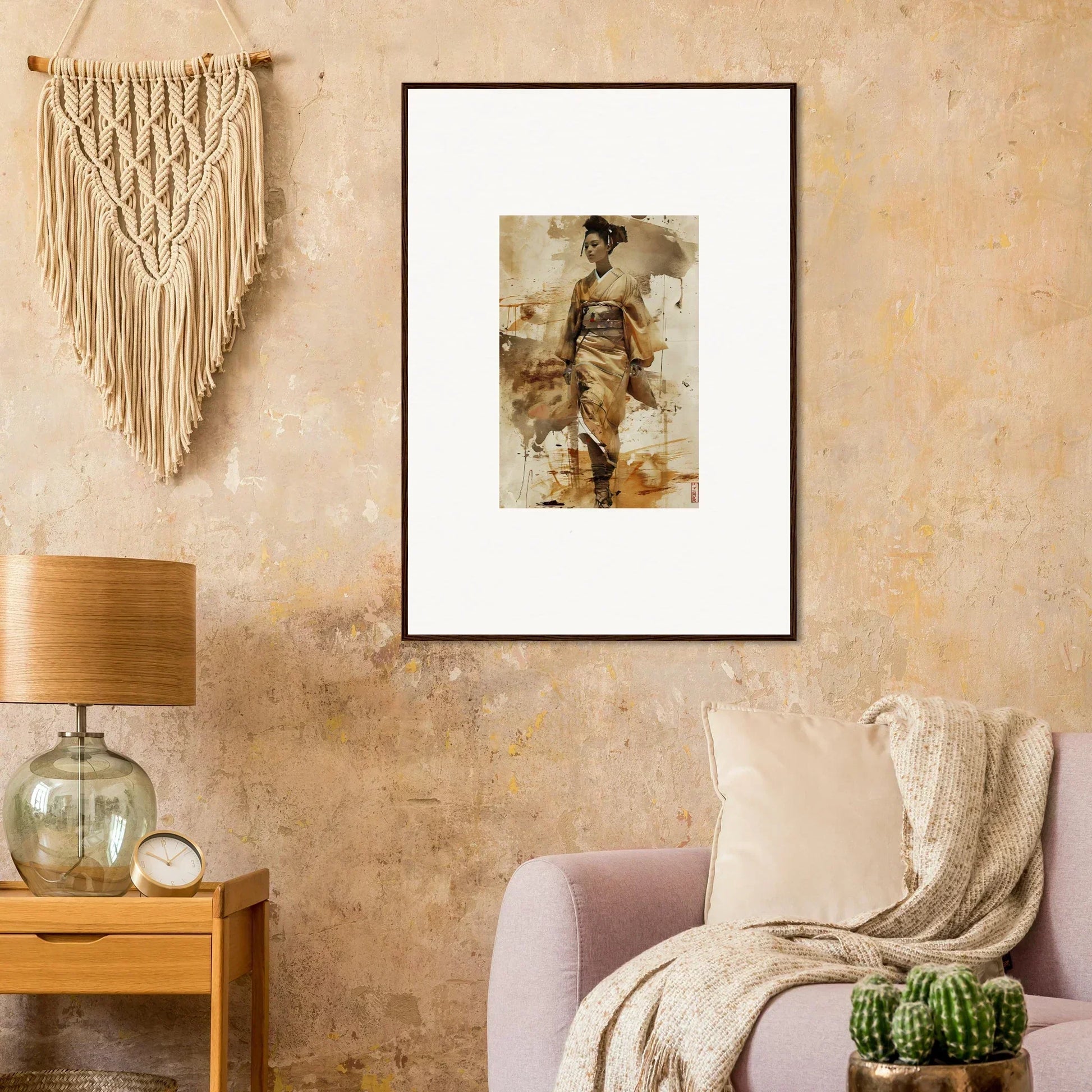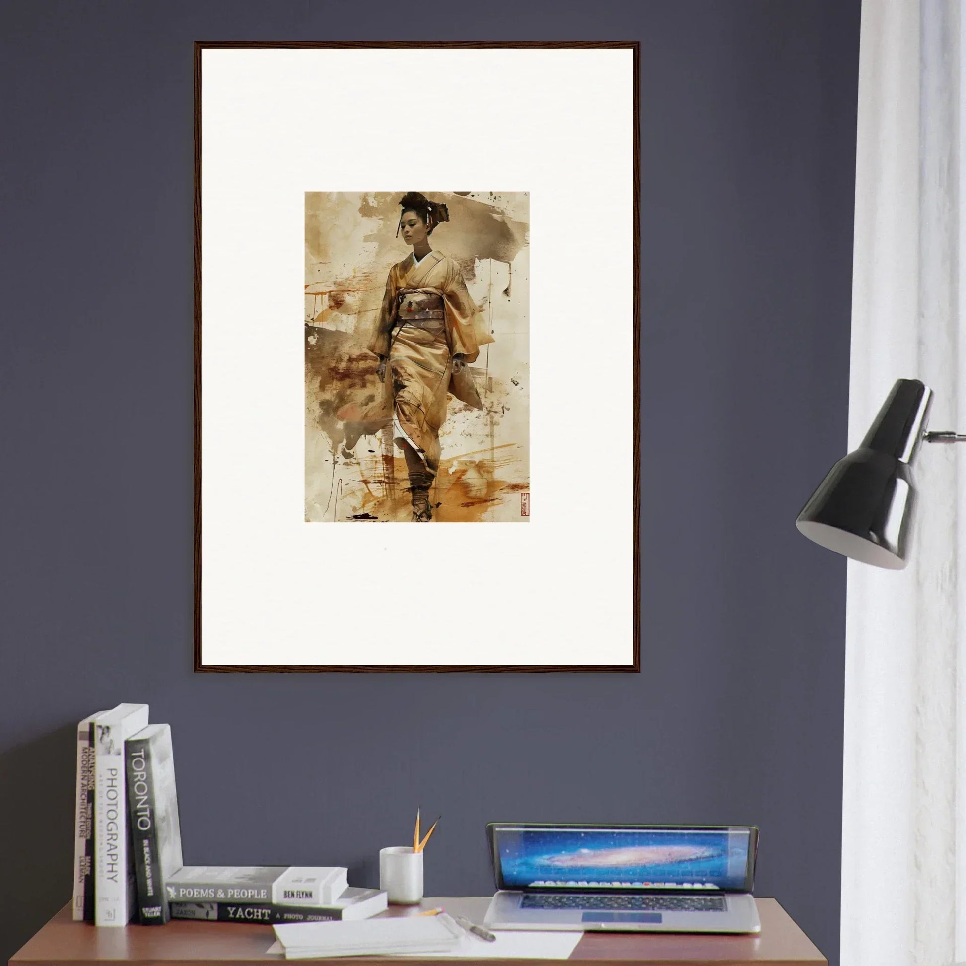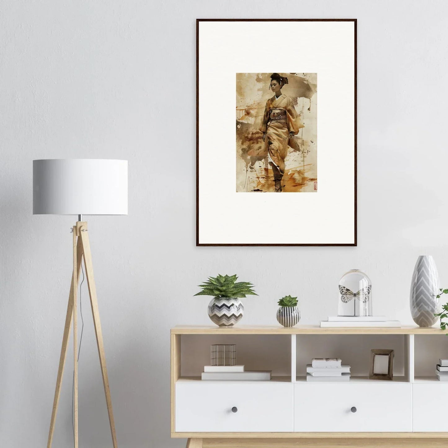 Imagine a realm where elegance and adventure converge, a world beautifully captured and brought to life on your walls. Introducing the Ethereal Canvas Whisper, a stunning framed wall art piece that epitomizes serenity and exploration through the refined aesthetics of Japanese art.