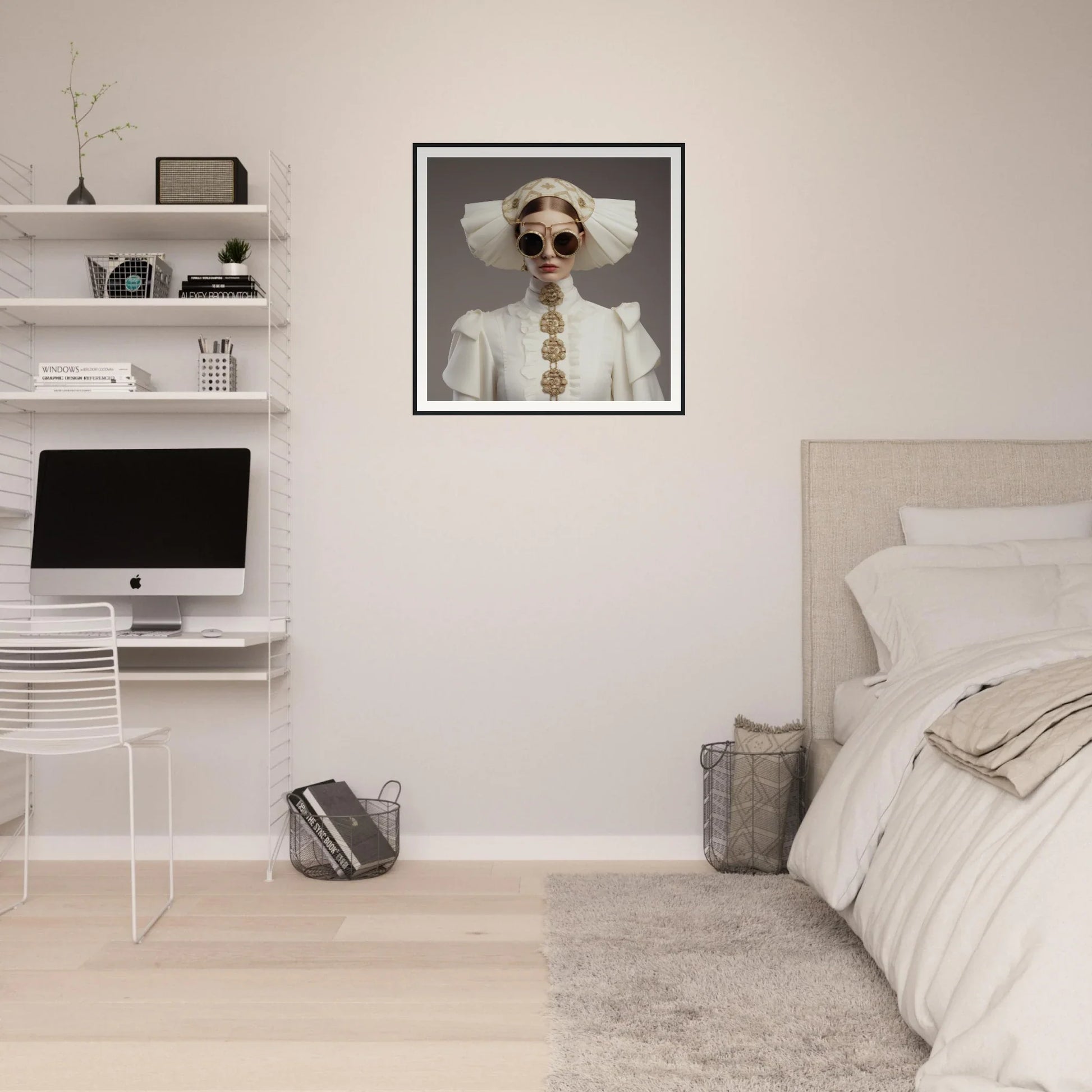 Step into an eloquent dimension where the past gracefully embraces the future through the timeless allure of Ethereal Couture Dreaming. This museum-quality framed wall art captures the serenity and mystique of a transcendent figure, adorned in an exquisite blend of avant-garde elegance and historical nuances, inviting your space to transform into a haven of sophistication.