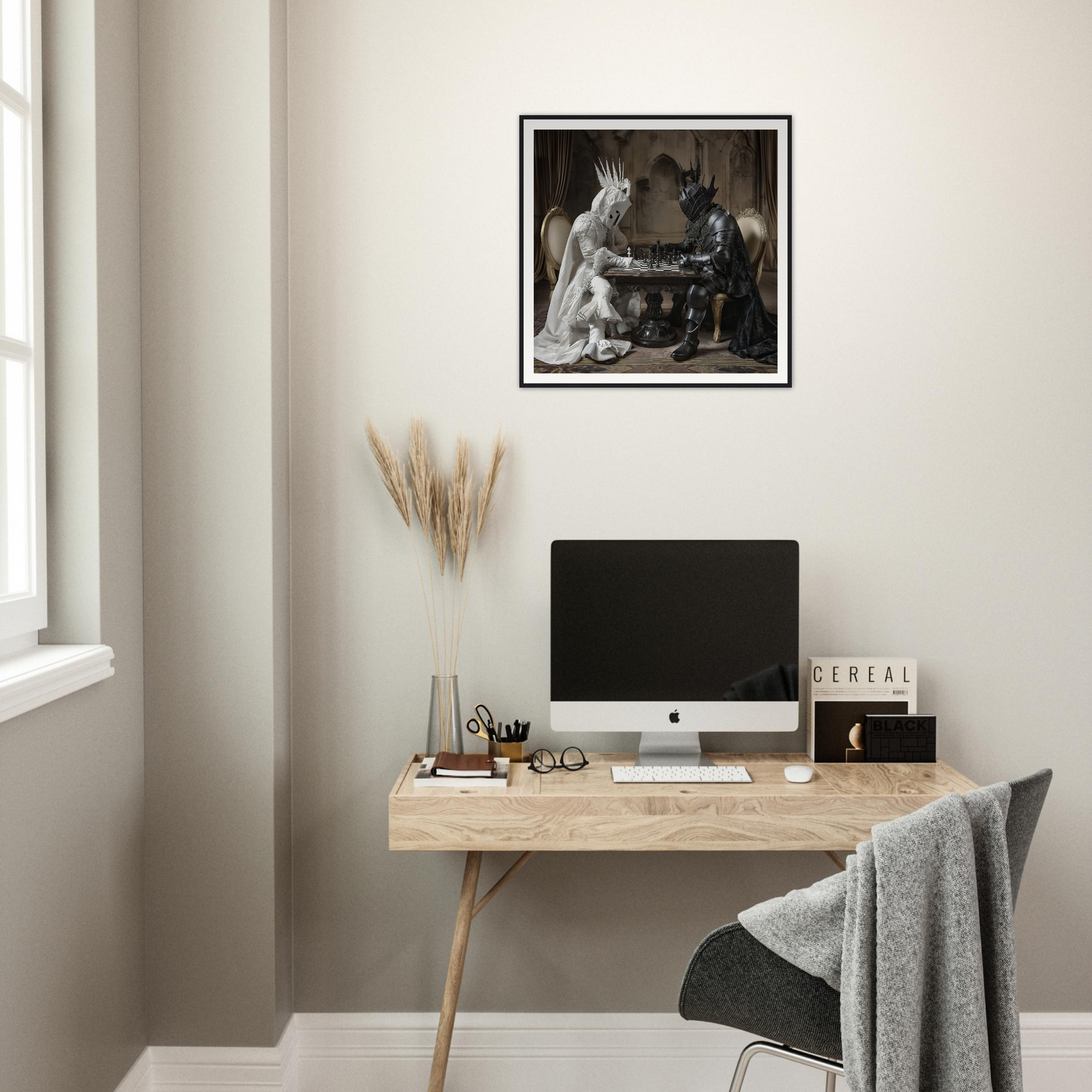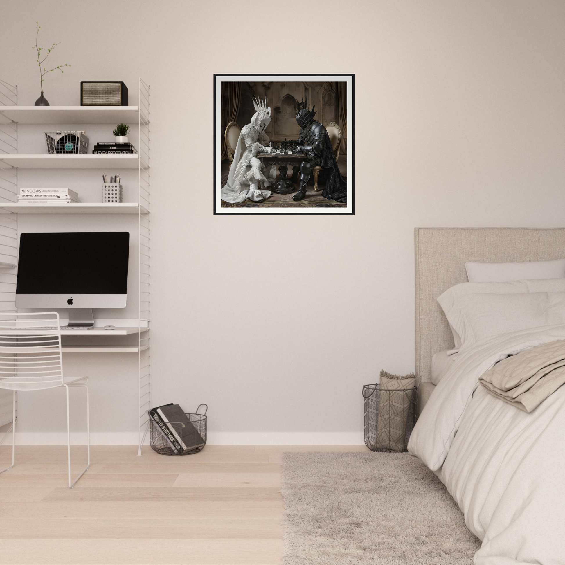 Step into a realm where light and shadow dance timelessly in an eternal intellectual duel. Ethereal Ebony Clash effortlessly captures the subtle power struggle in a monochrome chiaroscuro of strategic brilliance. Presented in a sturdy, ready-to-hang frame, this masterpiece elevates your space with its evocative allure.