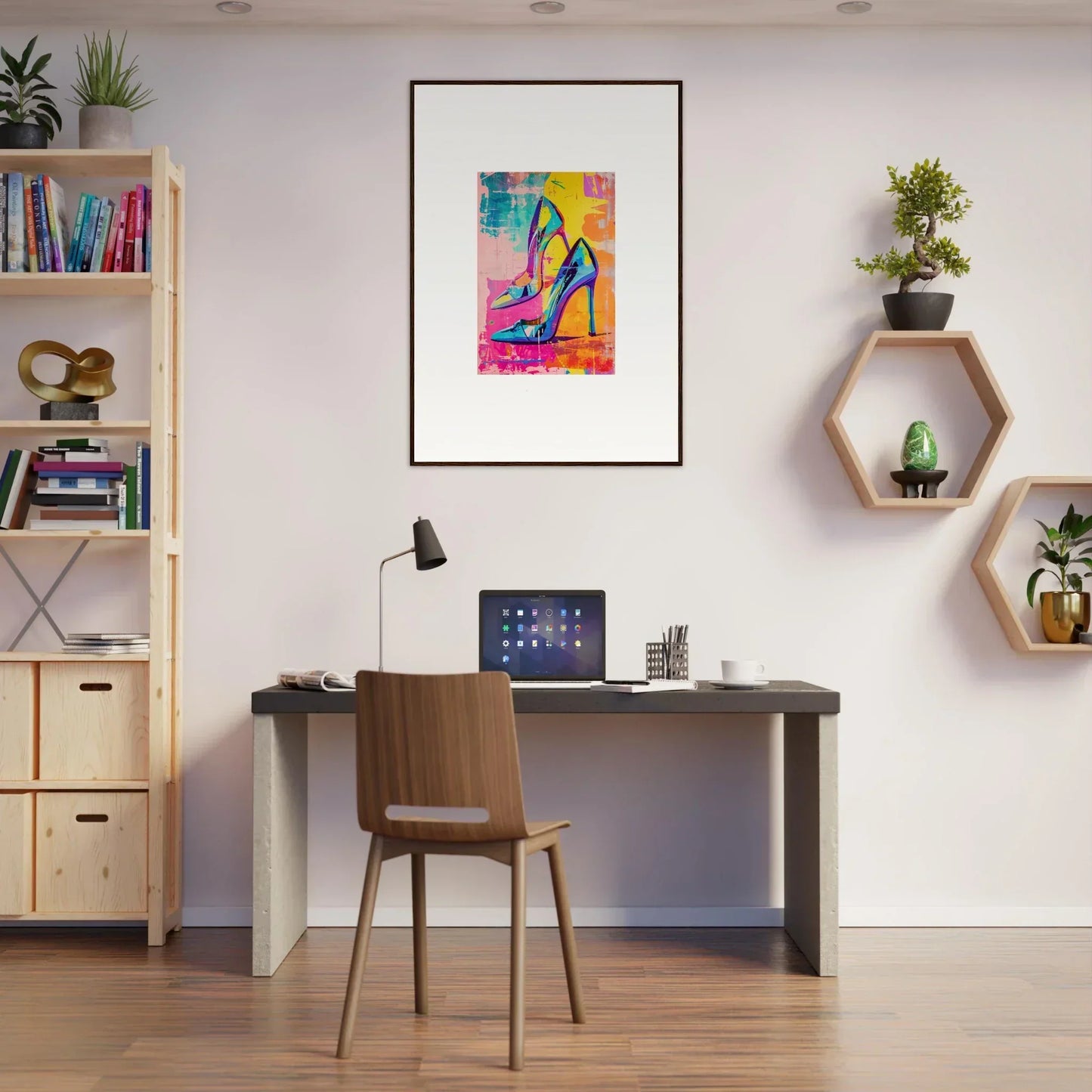 Our Ethereal Heels Reverie adds a burst of color to any room, making it ideal for fashion-forward spaces and vibrant makeup rooms. The colorful palette comes alive, bringing creative inspiration and a sense of joyful celebration. Whether it's a chic boutique or a personal sanctuary, this artwork will speak volumes about your stylish taste.