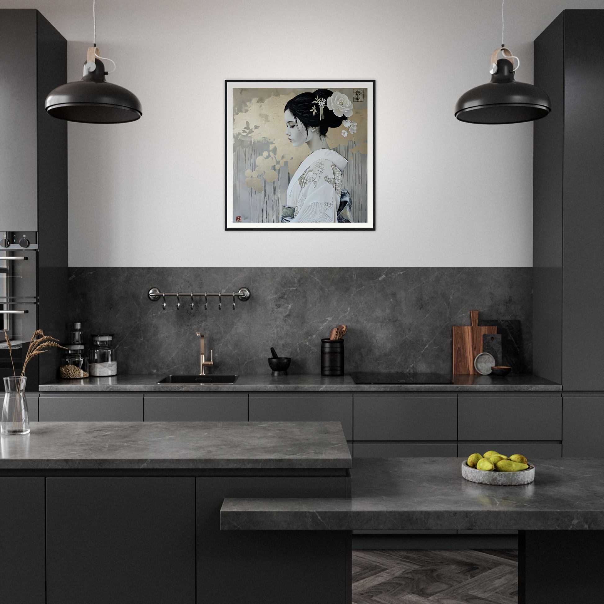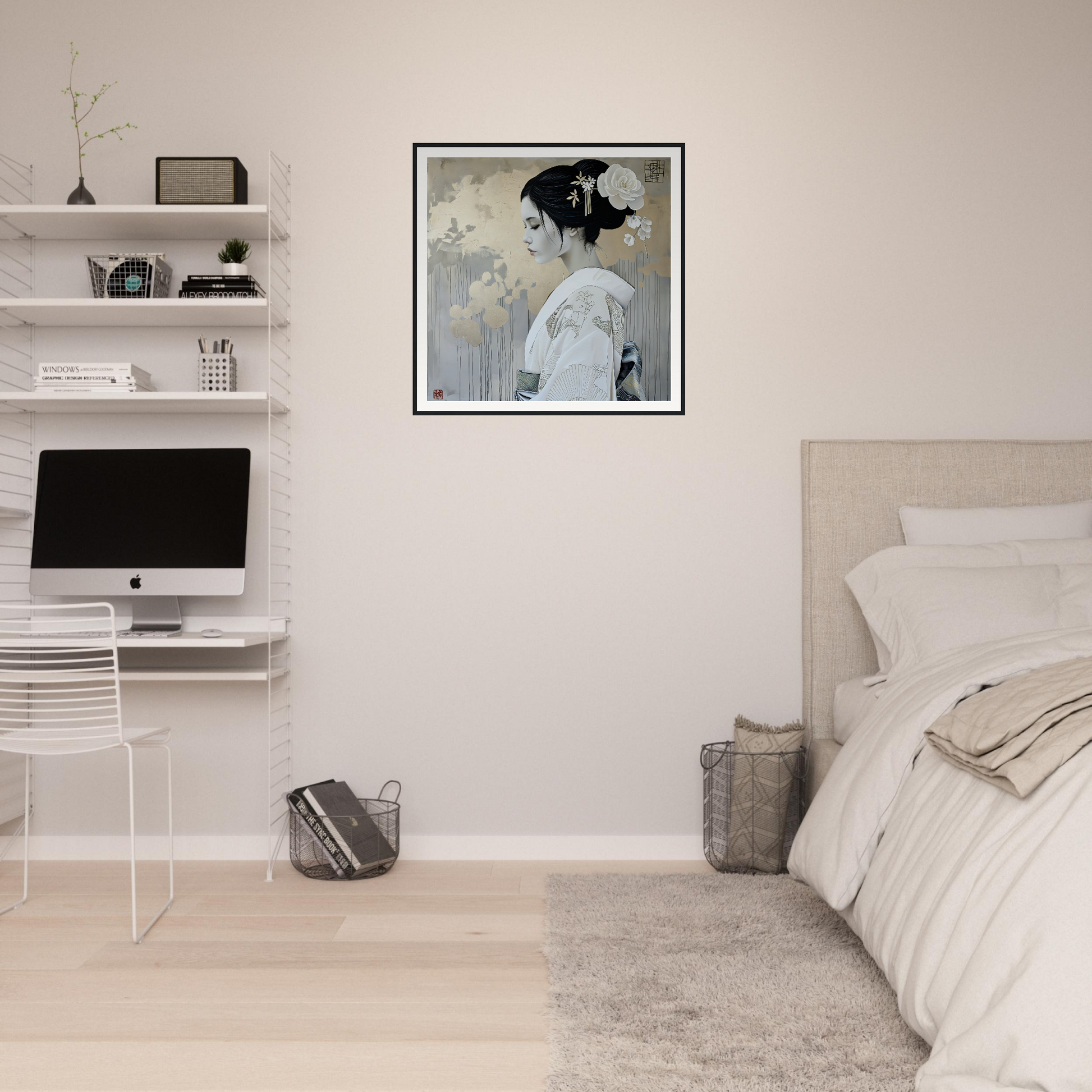 Step into tranquility and grace as the Ethereal Kimono Muse adorns your space with serenity steeped in tradition. Our framed wall art evokes a serene story in quiet contemplation, fusing traditional Japanese elegance with cutting-edge art through the latest AI image generation technology. This striking portrait captures the ethereal beauty of a woman in modern realism.