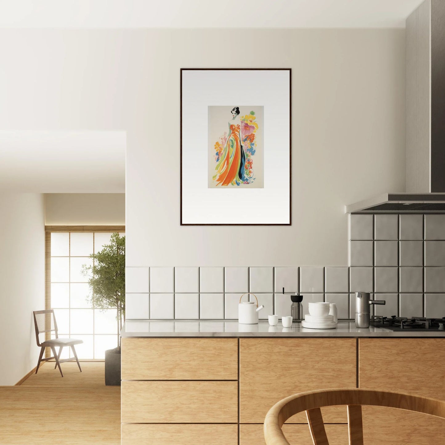 This vibrant rainbow of colors brings joyous celebration into any room, making it a perfect piece for a fashionista's haven or a woman's retreat. The stunning blend of reds and multiple hues exudes a luxurious, stylish mood, enhancing any space it's placed in. The subject matter of fashion intertwined with floral and botanical inspirations makes this piece a versatile addition to any fashion-forward home.