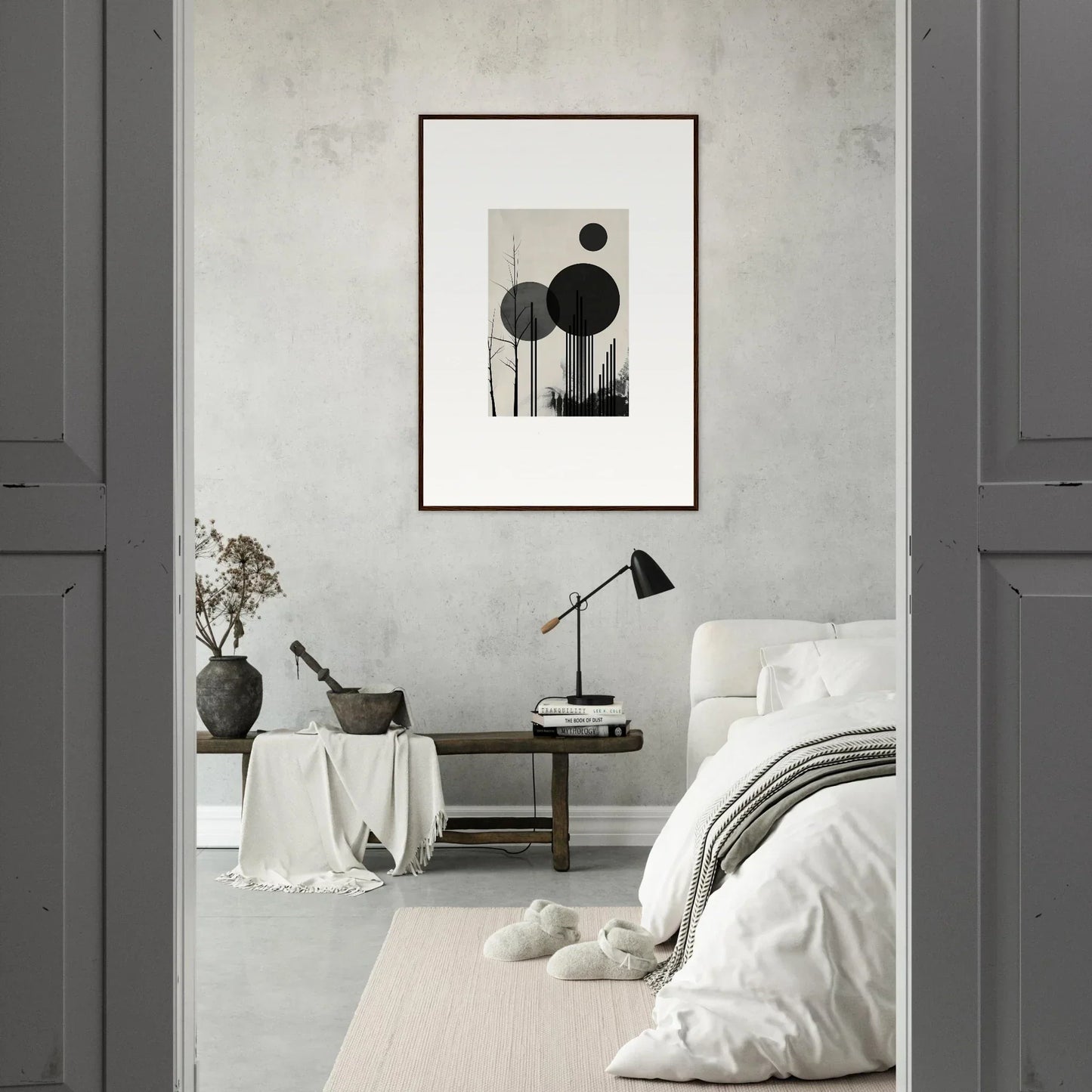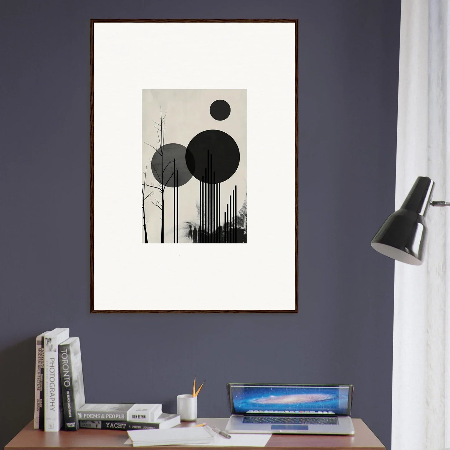 Our Existential Dropscape Wandering framed wall art is more than a decoration; it's an experience. Whether you want to add a touch of serenity and peace to your home office or focus and creativity to your living room, this monochrome masterpiece with its bold, abstract designs will transform any room into a sanctuary of art and elegance.