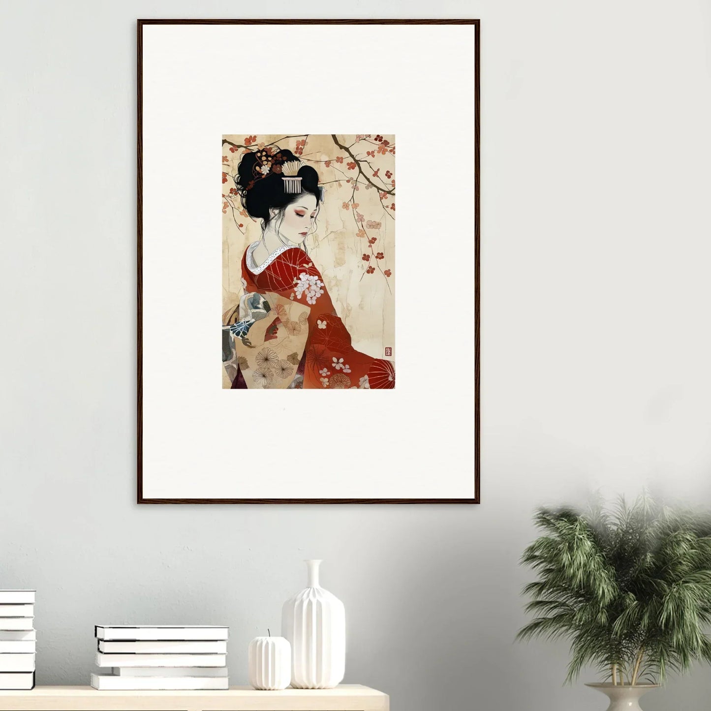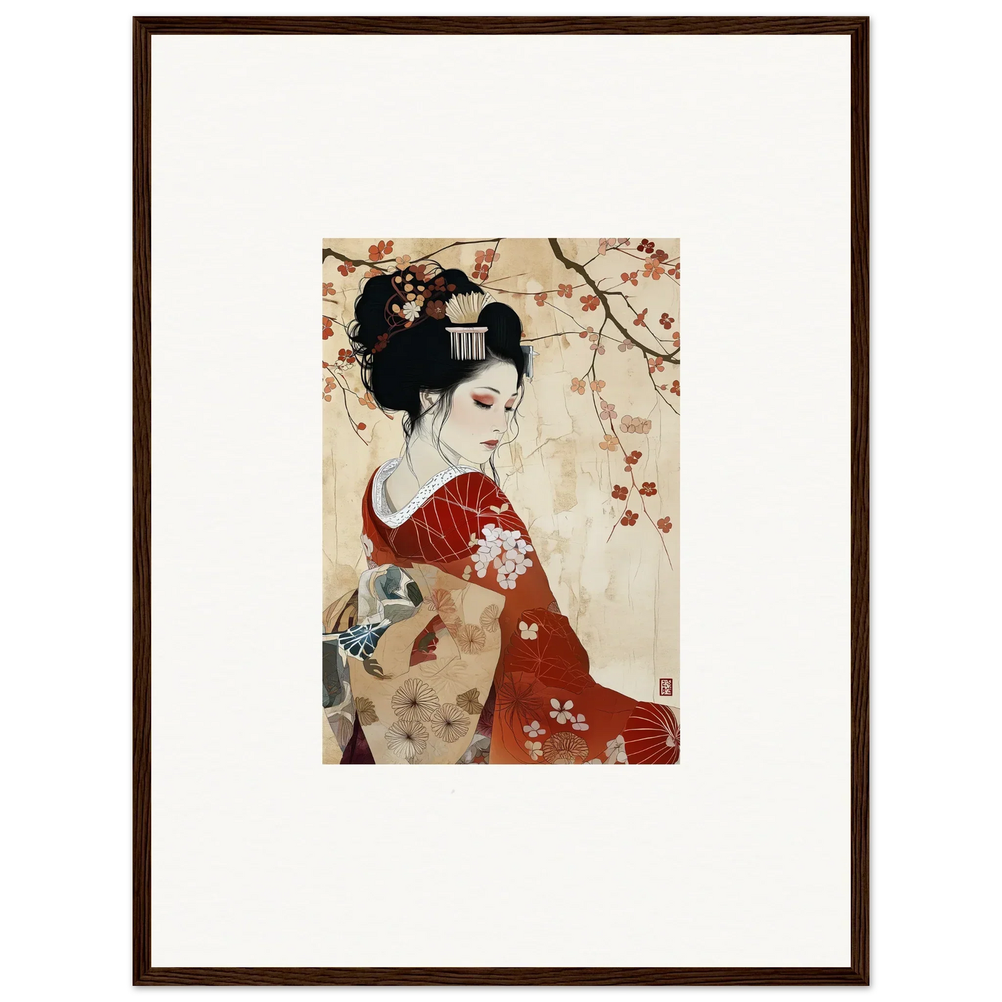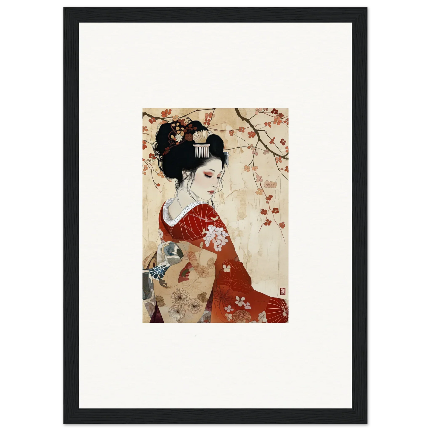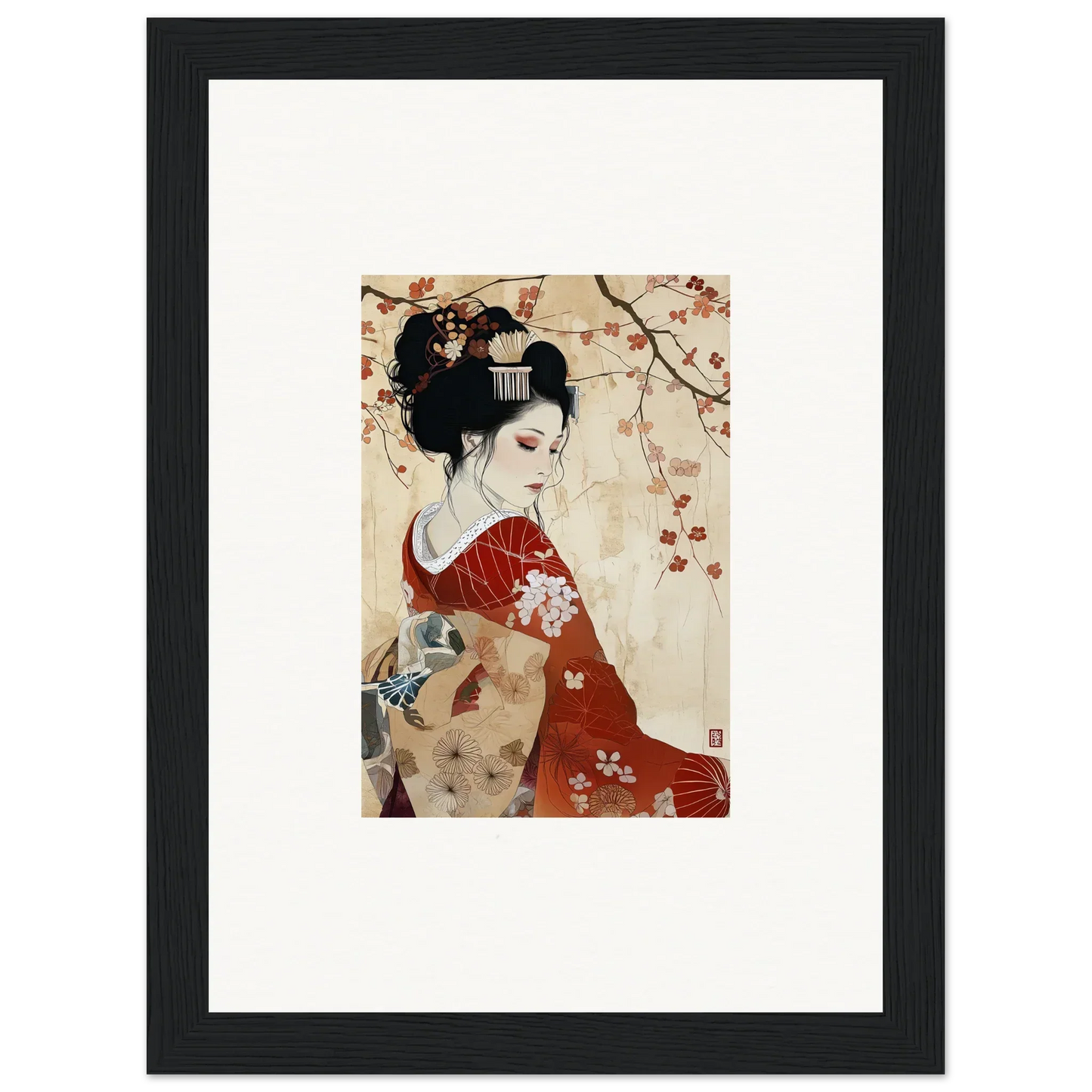 From the graceful, red tones of the artwork to the serene expression of the subject, our framed wall art embodies Compassion and Love as well as Serenity and Peace. Ideal for bedrooms and living rooms, this piece fits perfectly within spaces that aim to evoke tranquility and cultural sophistication. The complementary black and white color palette of the frame further highlights the rich, red hues at the heart of the subject.