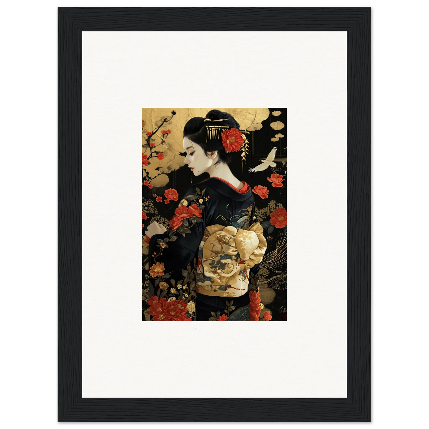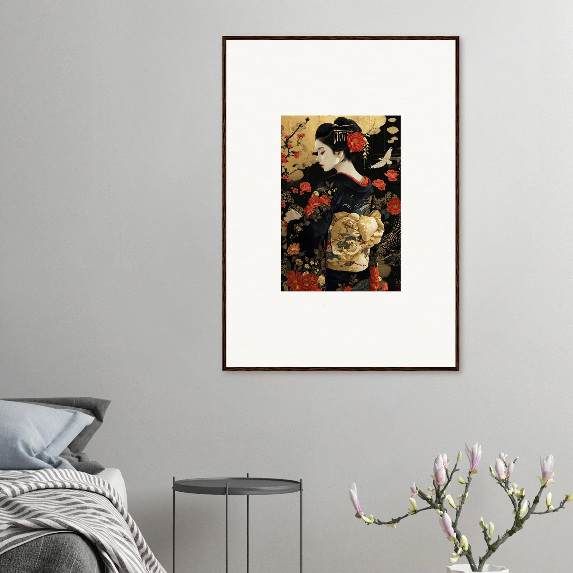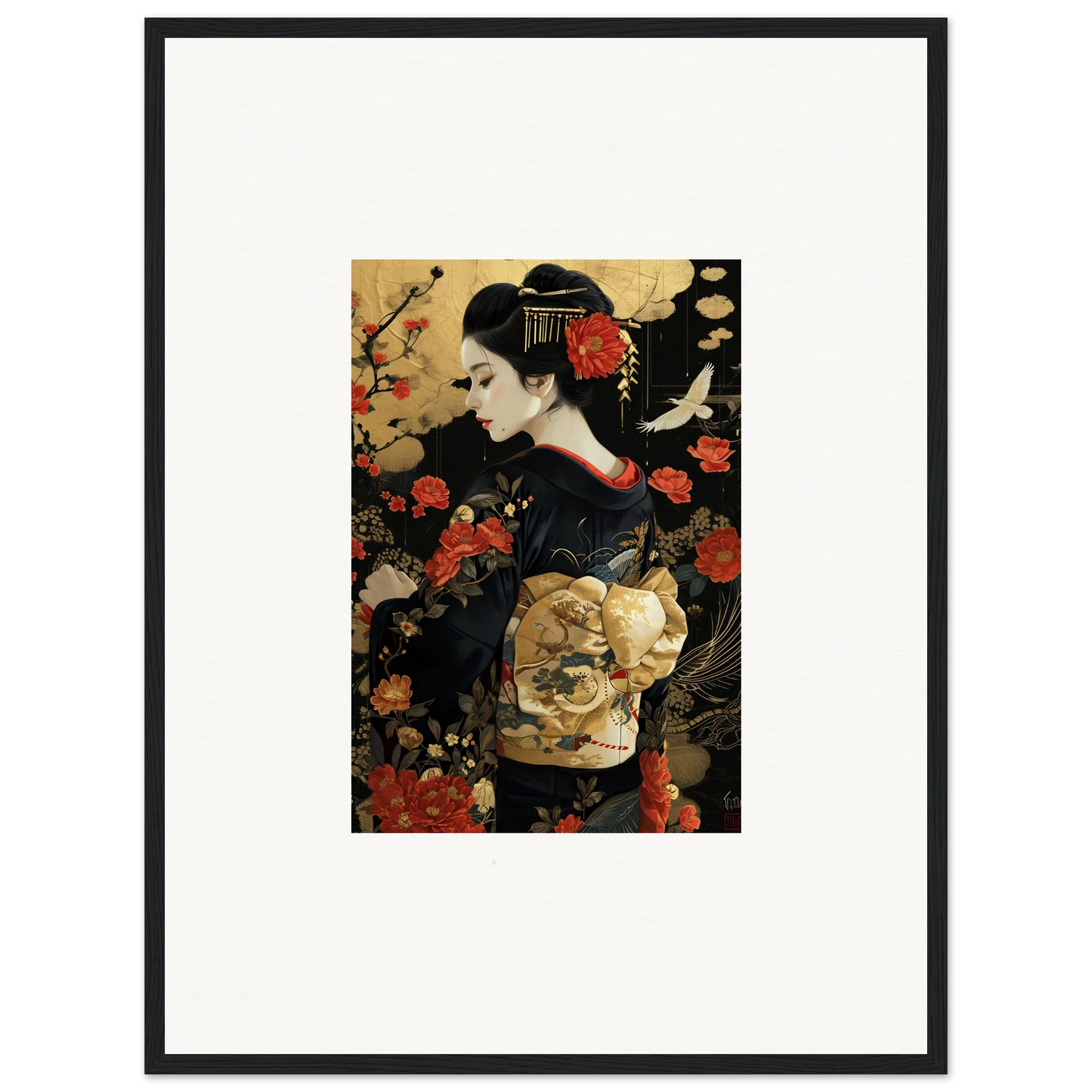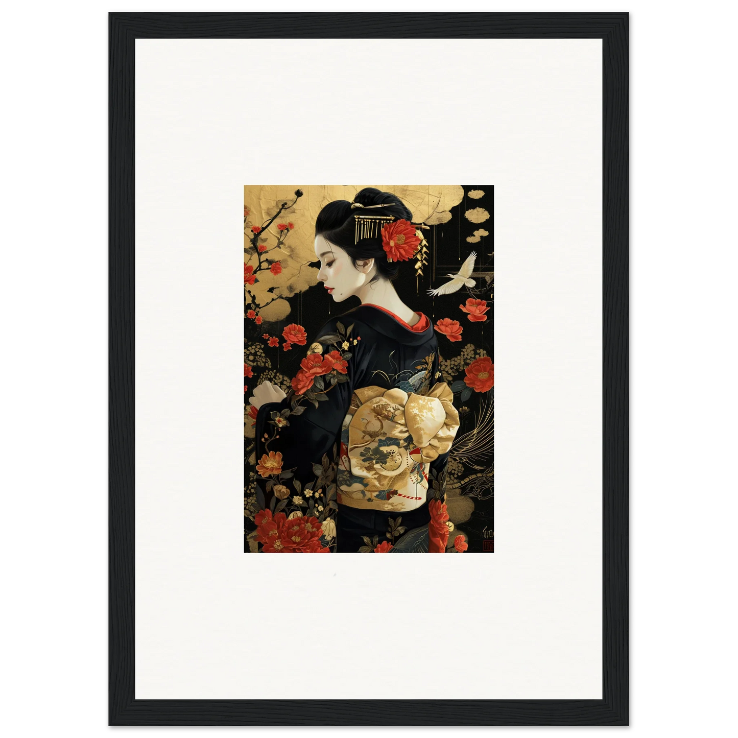 The Floral Ghost Horizon captures the essence of Japanese artistry with a modern twist. The harmonious blend of gold and black creates a complementary color pallet that enhances any living room or bedroom with luxurious and peaceful vibes.