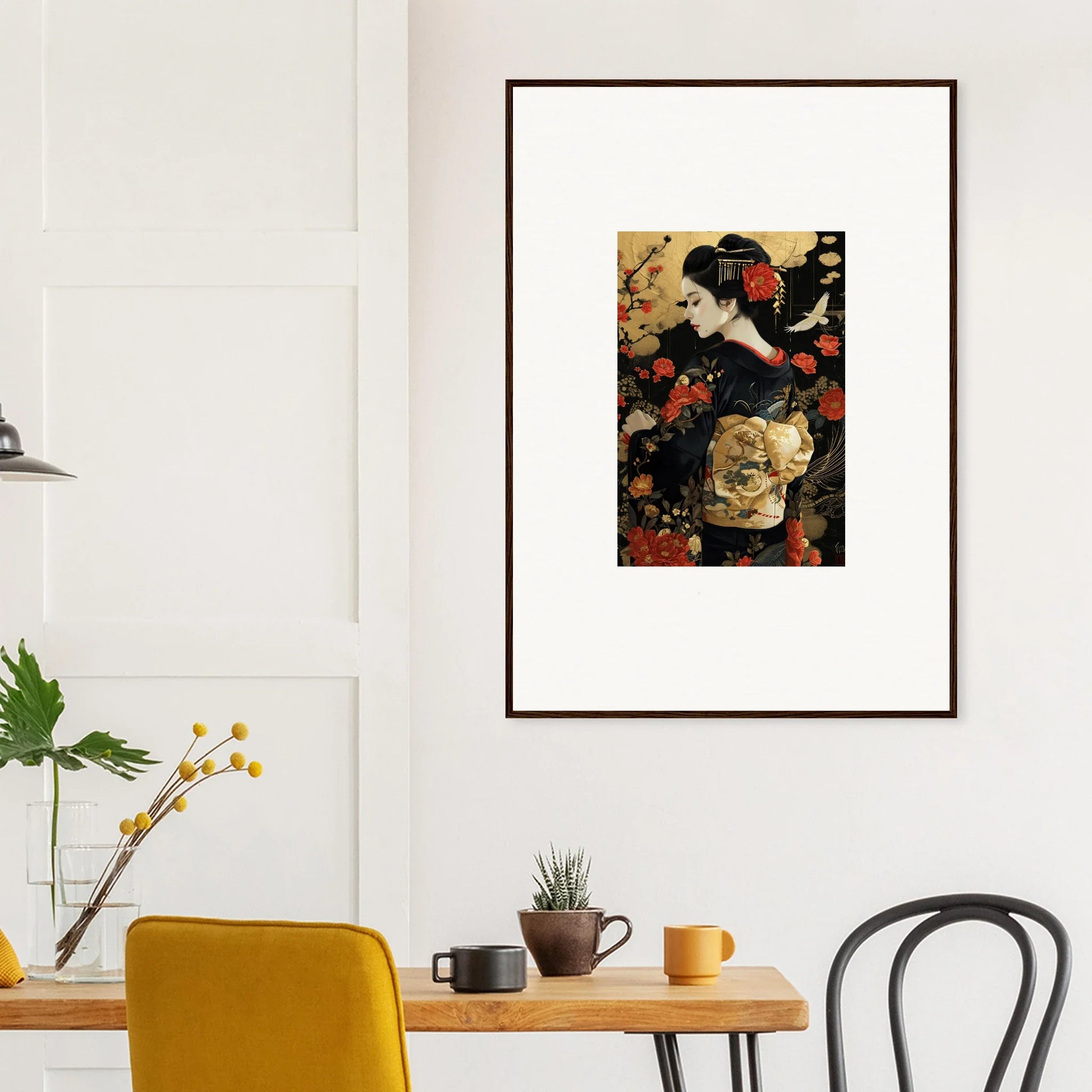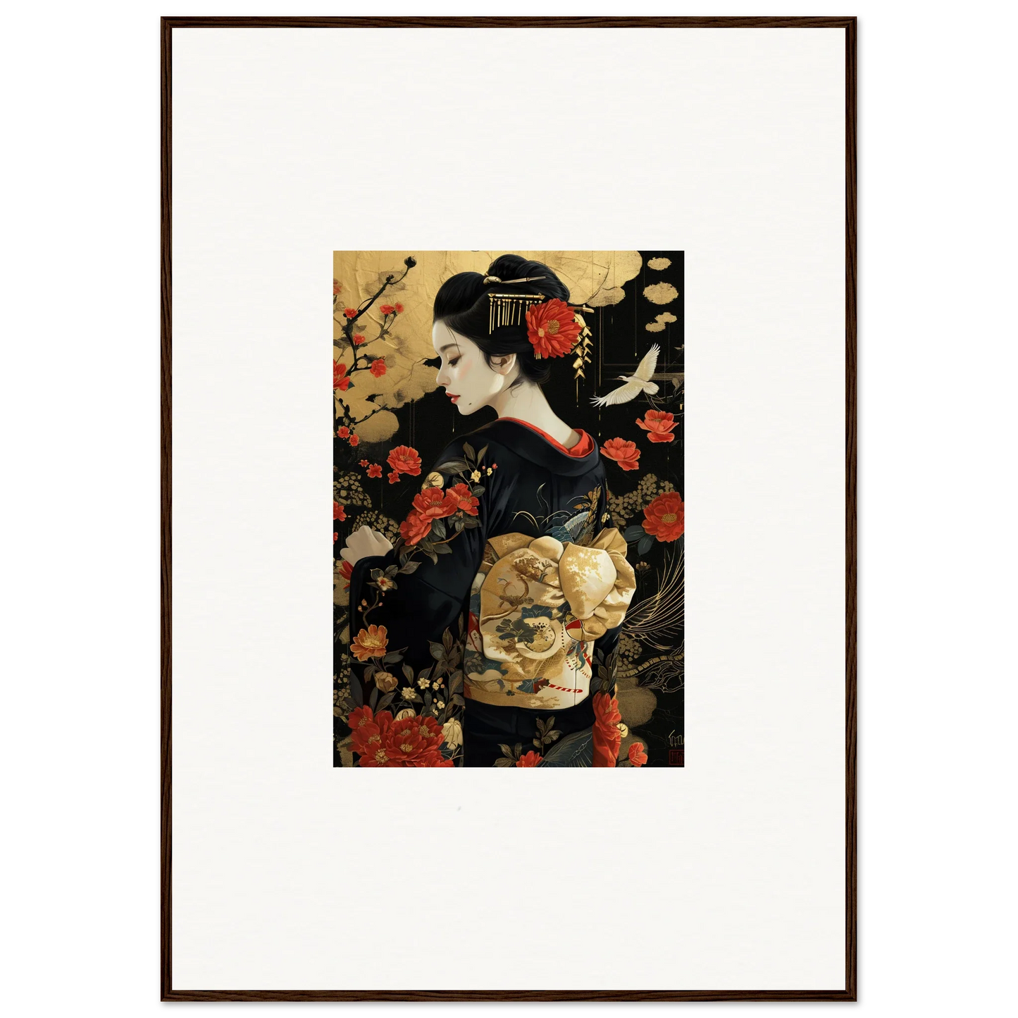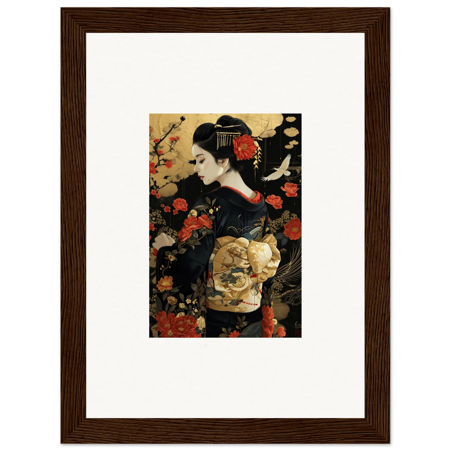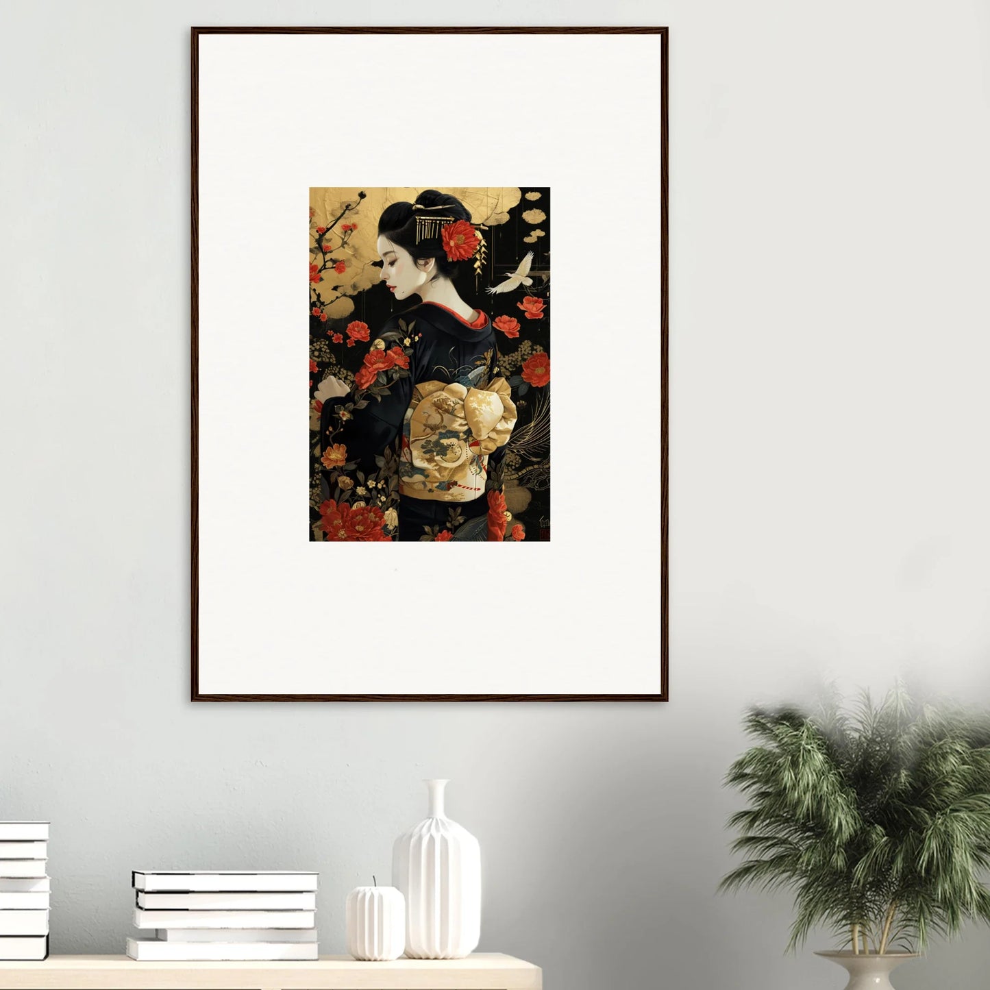 The Floral Ghost Horizon captures the essence of Japanese artistry with a modern twist. The harmonious blend of gold and black creates a complementary color pallet that enhances any living room or bedroom with luxurious and peaceful vibes.