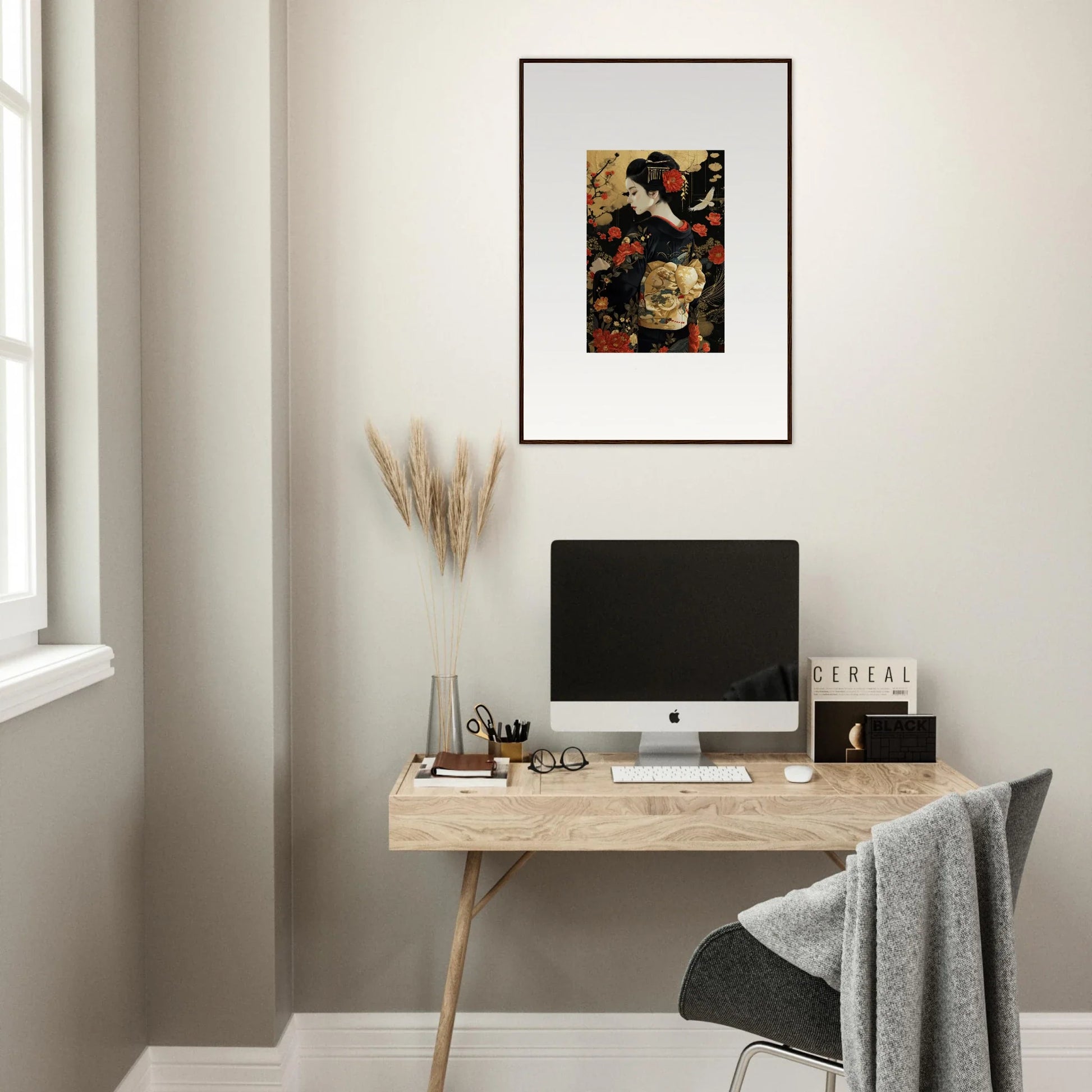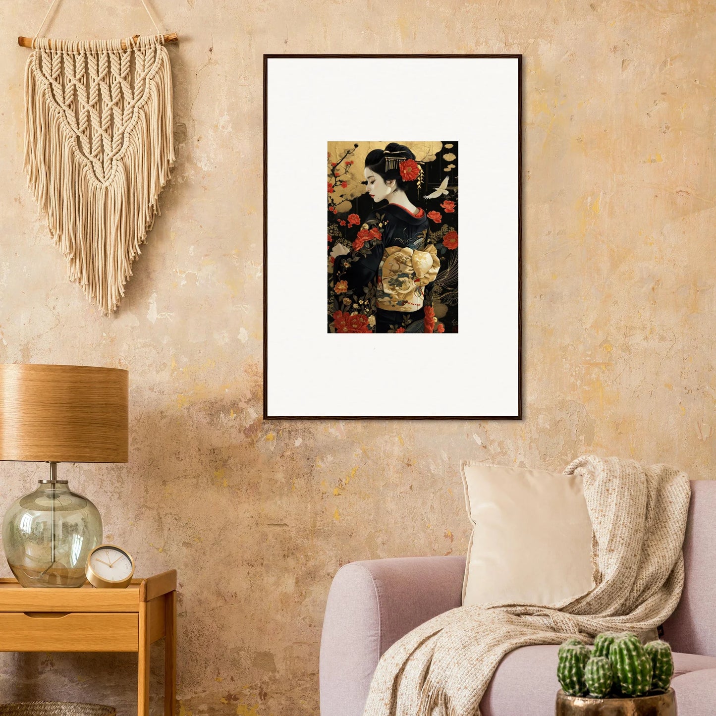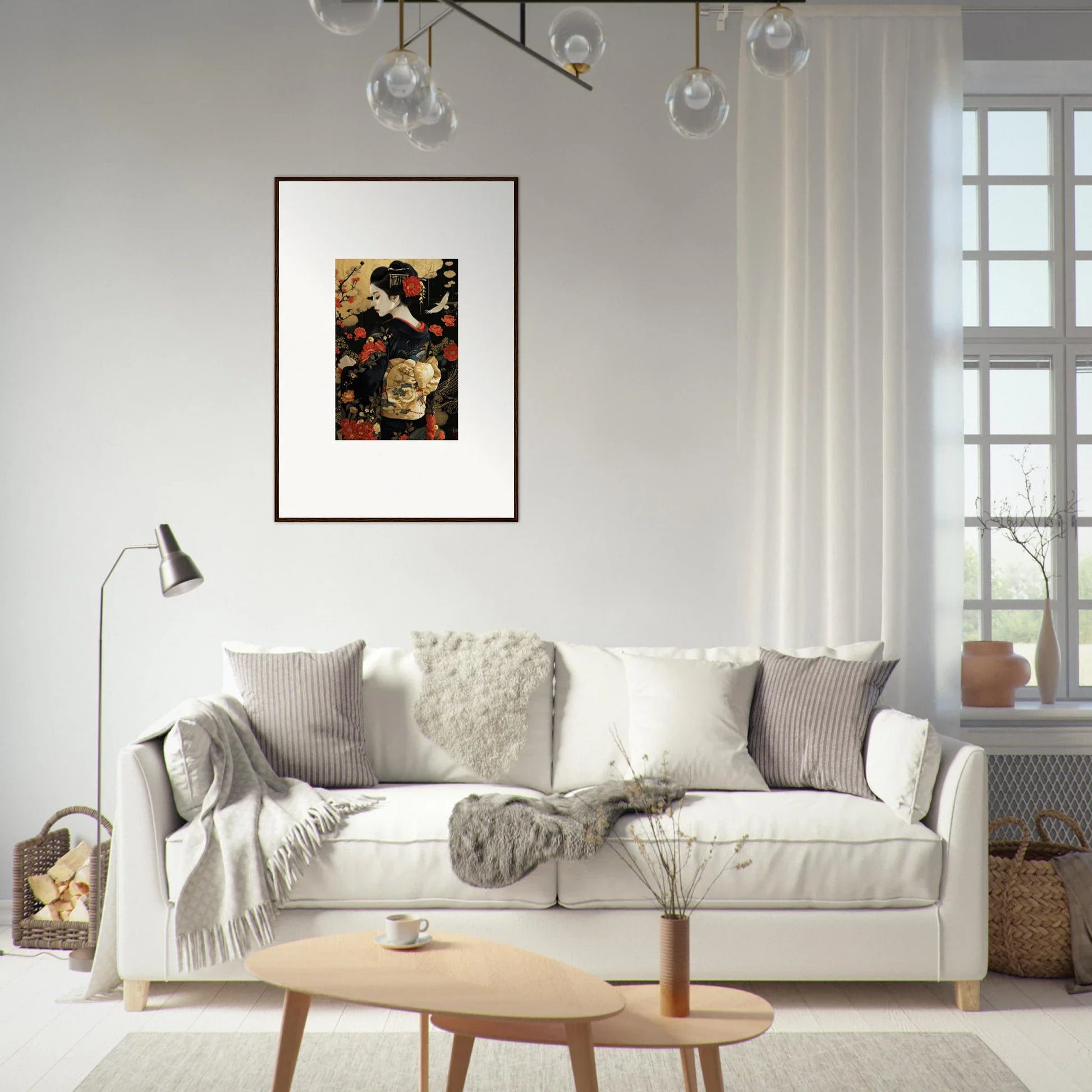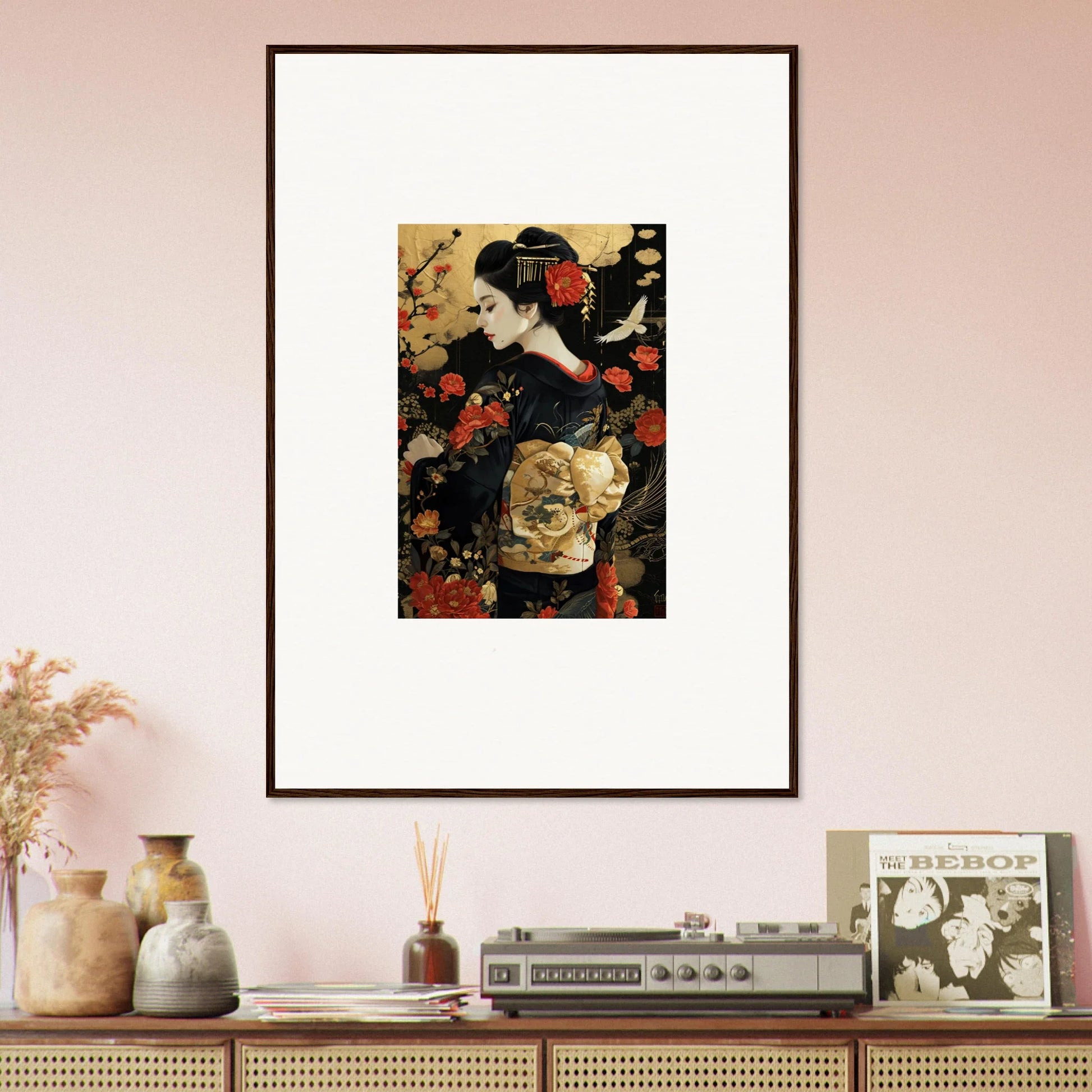 The Floral Ghost Horizon captures the essence of Japanese artistry with a modern twist. The harmonious blend of gold and black creates a complementary color pallet that enhances any living room or bedroom with luxurious and peaceful vibes.