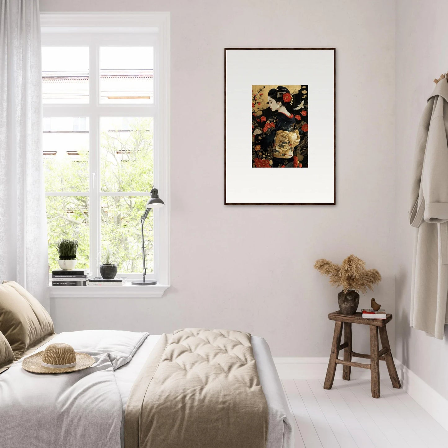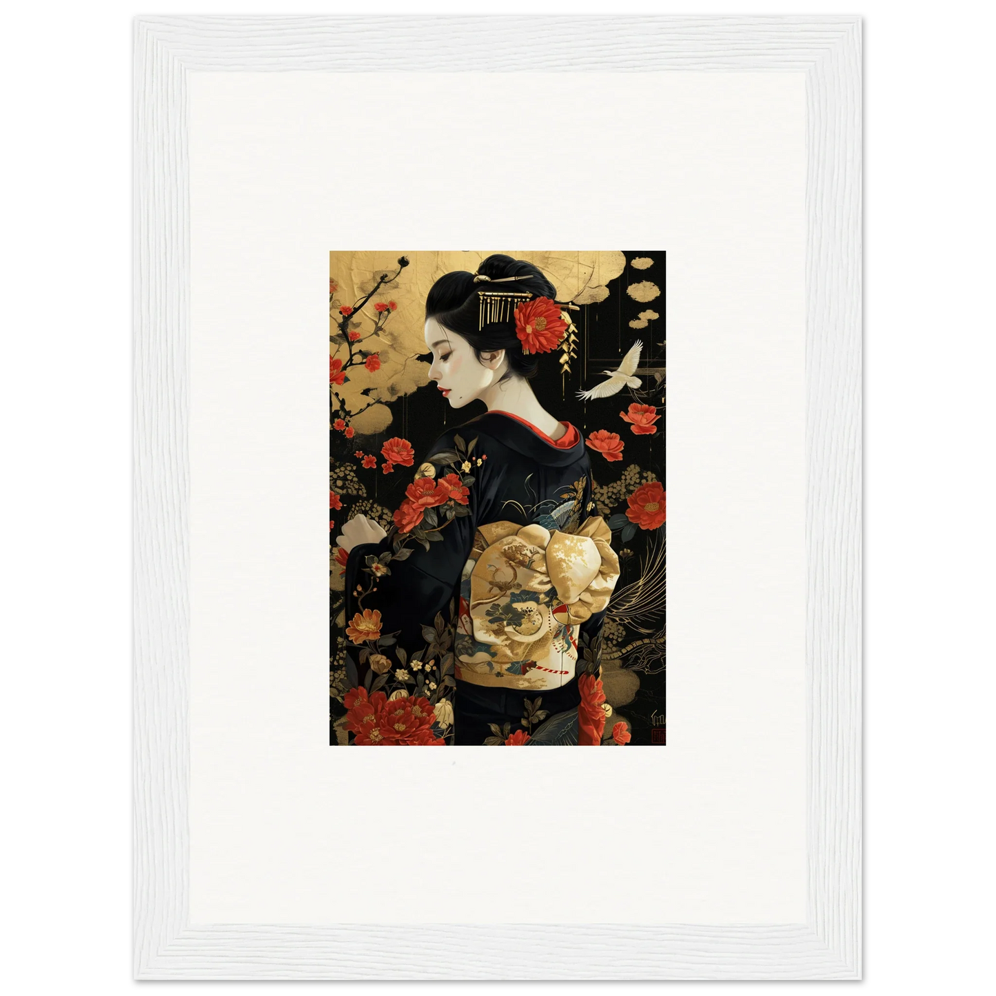Introducing the Floral Ghost Horizon - an exquisite representation of figurative and fashion art inspired by Japanese artistry. Crafted with intricate floral patterns and ethereal imagery, this piece is a testament to serene peace and luxurious style.