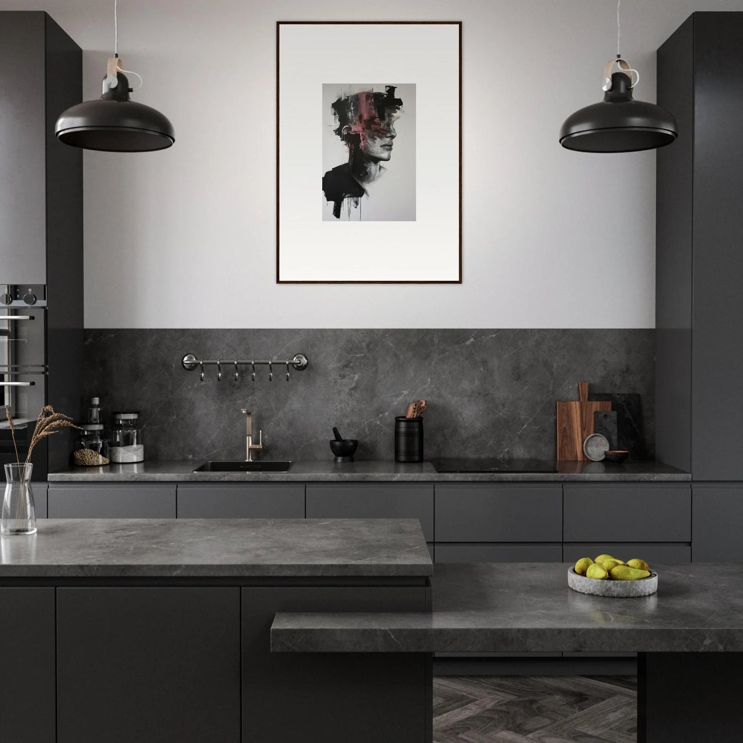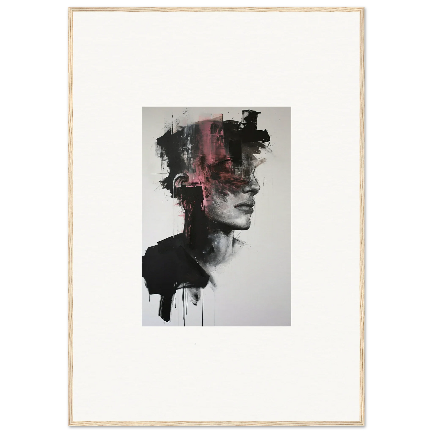 This stunning monochrome and pink artwork, showcasing a black and white foundation, is beautifully framed to complement any home office or living room. Its abstract, contemporary portrait style brings a sophisticated, moody ambiance, perfect for any space seeking a touch of creativity and inspiration.