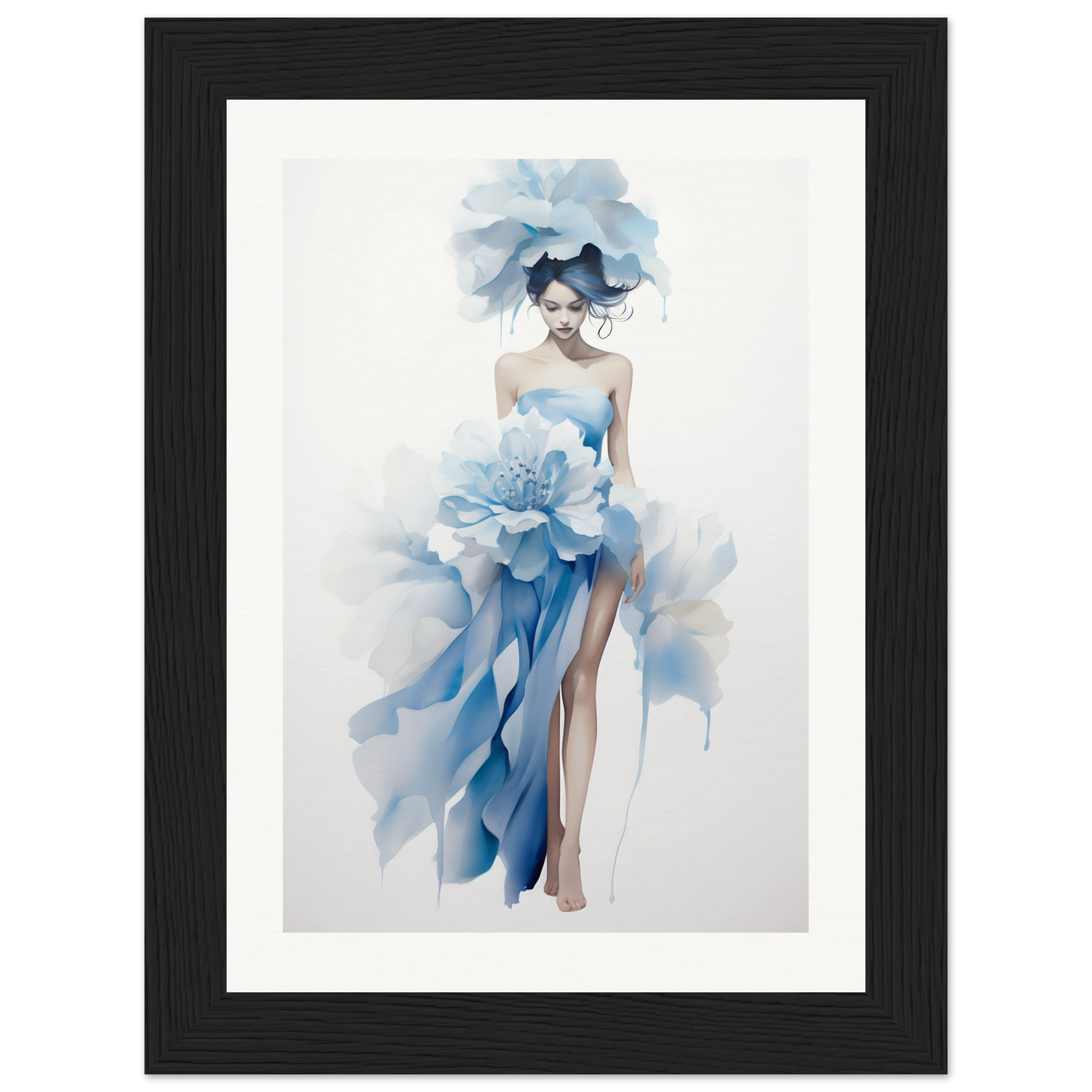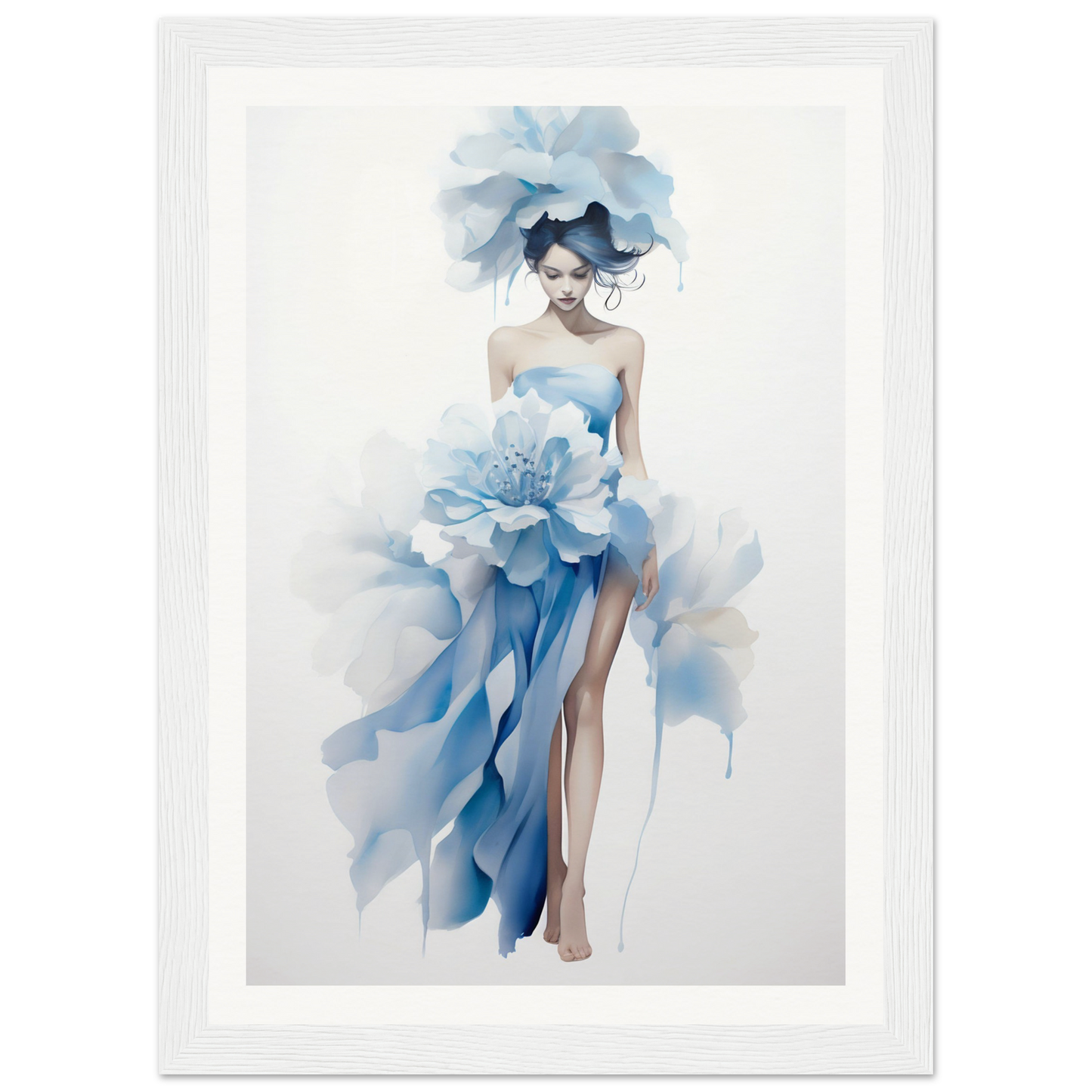 This stunning artwork is a perfect addition to any bedroom or fashionista's haven. The complementary blue and white hues bring a luxurious and inspiring mood into your contemporary decor. The figurative subject with elegant blue flowerheads adds a touch of fashion and femininity, ideal for those who appreciate art that tells a story.