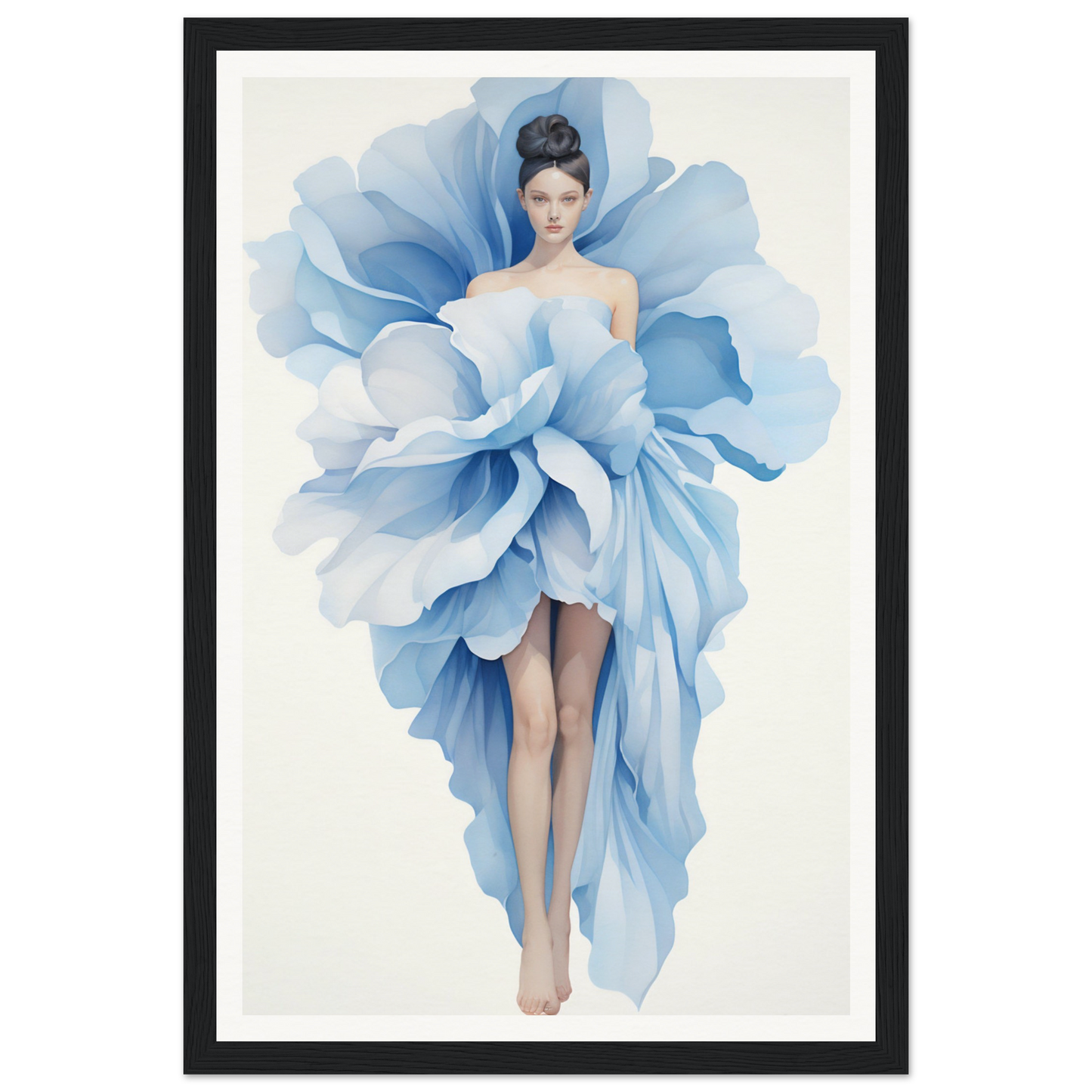 Whether you’re seeking to inspire creativity or exude luxury, the Blue Glam Oracle is your answer. Draped in stunning blue and white floral arrangements, this piece is perfect for the bedroom or any room aspiring for a fashionista vibe. Its creative and luxurious mood adds sophistication, making it ideal for spaces that embrace contemporary art and figurative subjects. Let this art print redefine your walls and speak to your soul.