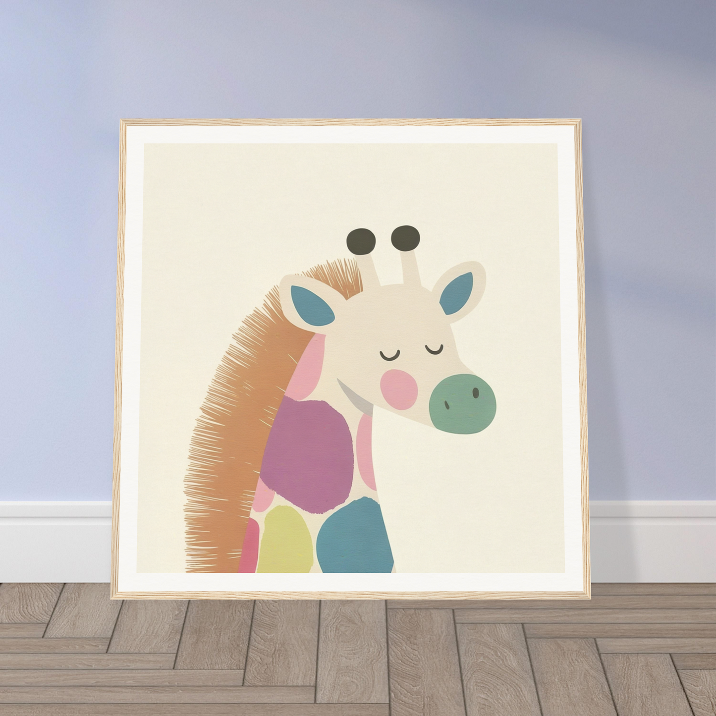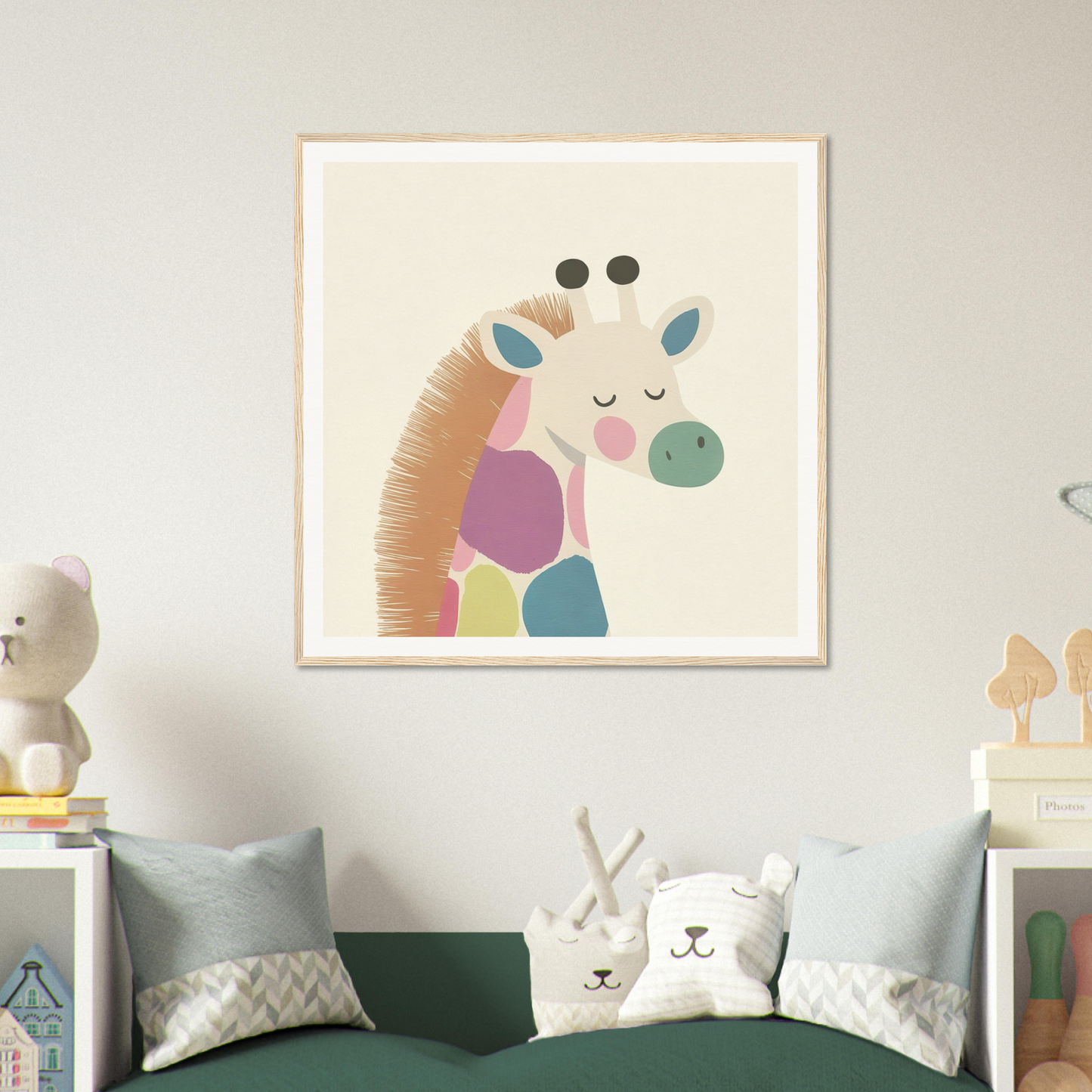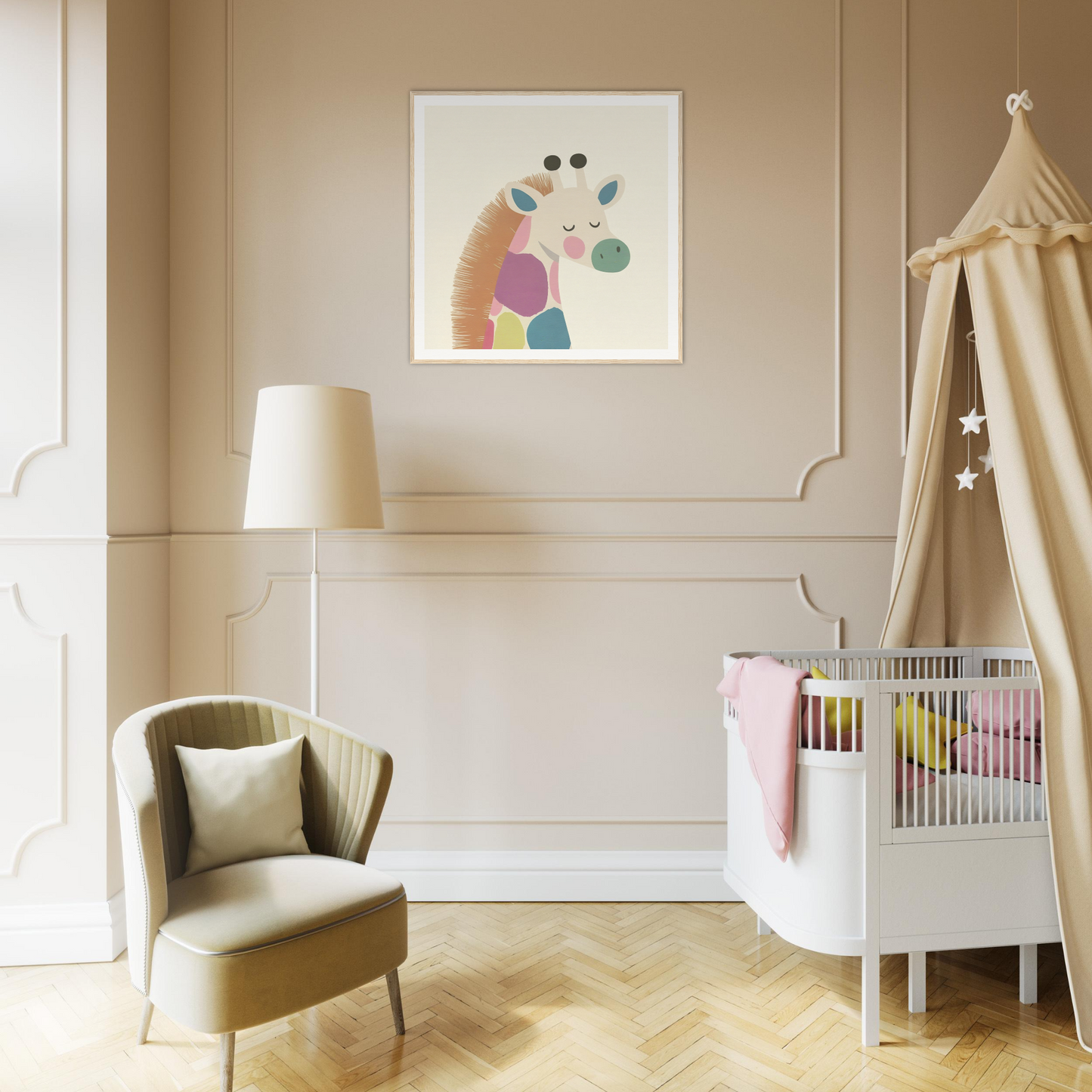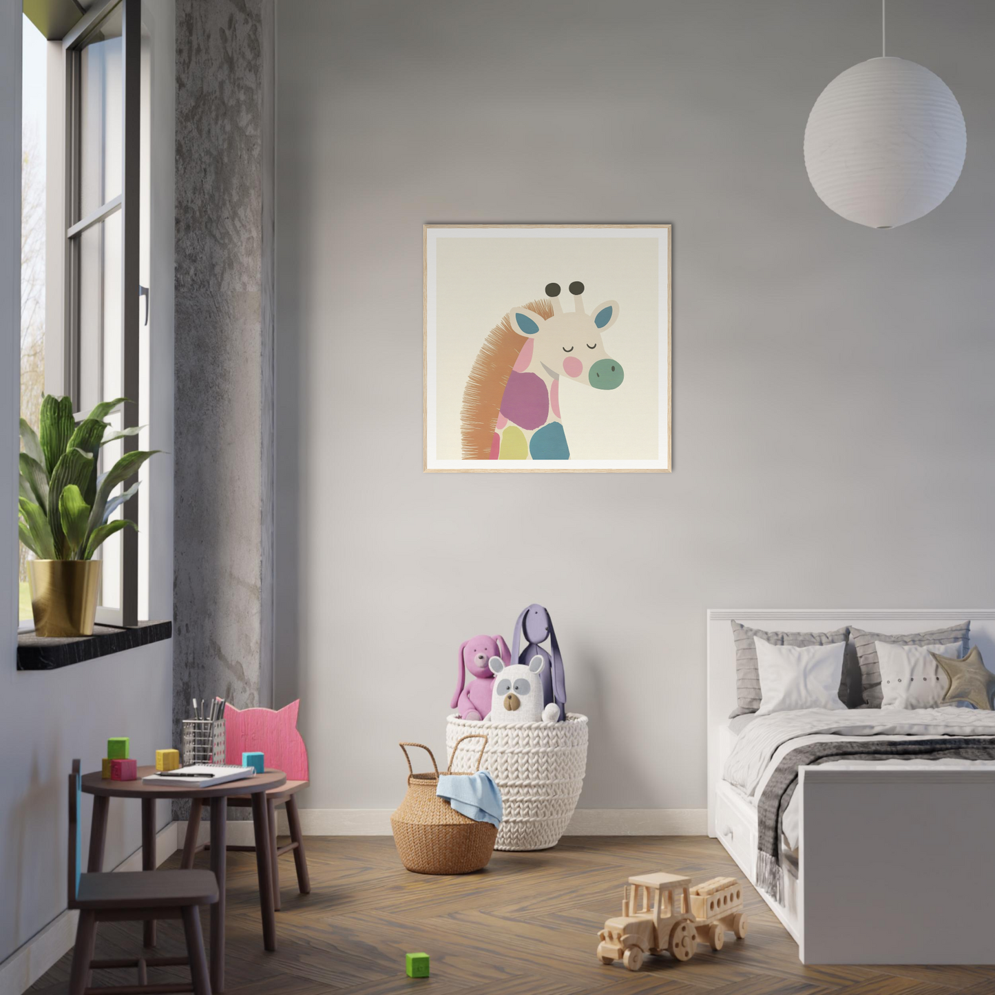 Whether you're decorating a nursery, kids' room, or enhancing a living space with whimsical art, the gentle blend of soft beige, muted teal, and pastel tones suits a variety of themes including nursery room decor, animal theme decorations, and more.
