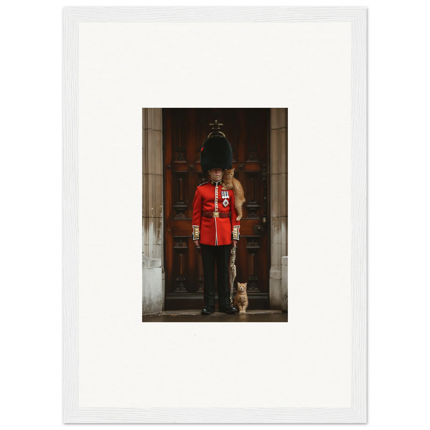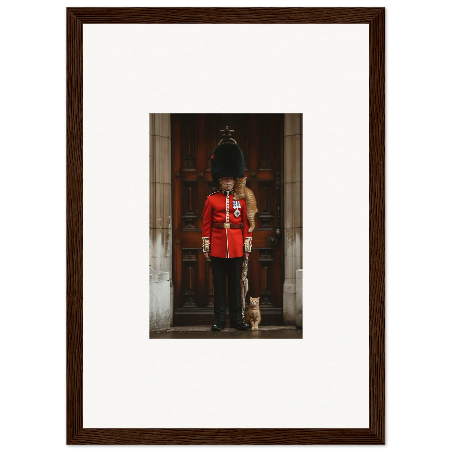 Imagine a moment where art and craftsmanship meet, creating a timeless piece that transforms your living space into a gallery of elegance. Our Premium Framed Wall Art featuring "God Save the Queen and the Cats" is designed to do just that. Created with the latest AI-generated imagery, this masterpiece captures the essence of modern creativity and classic sophistication.