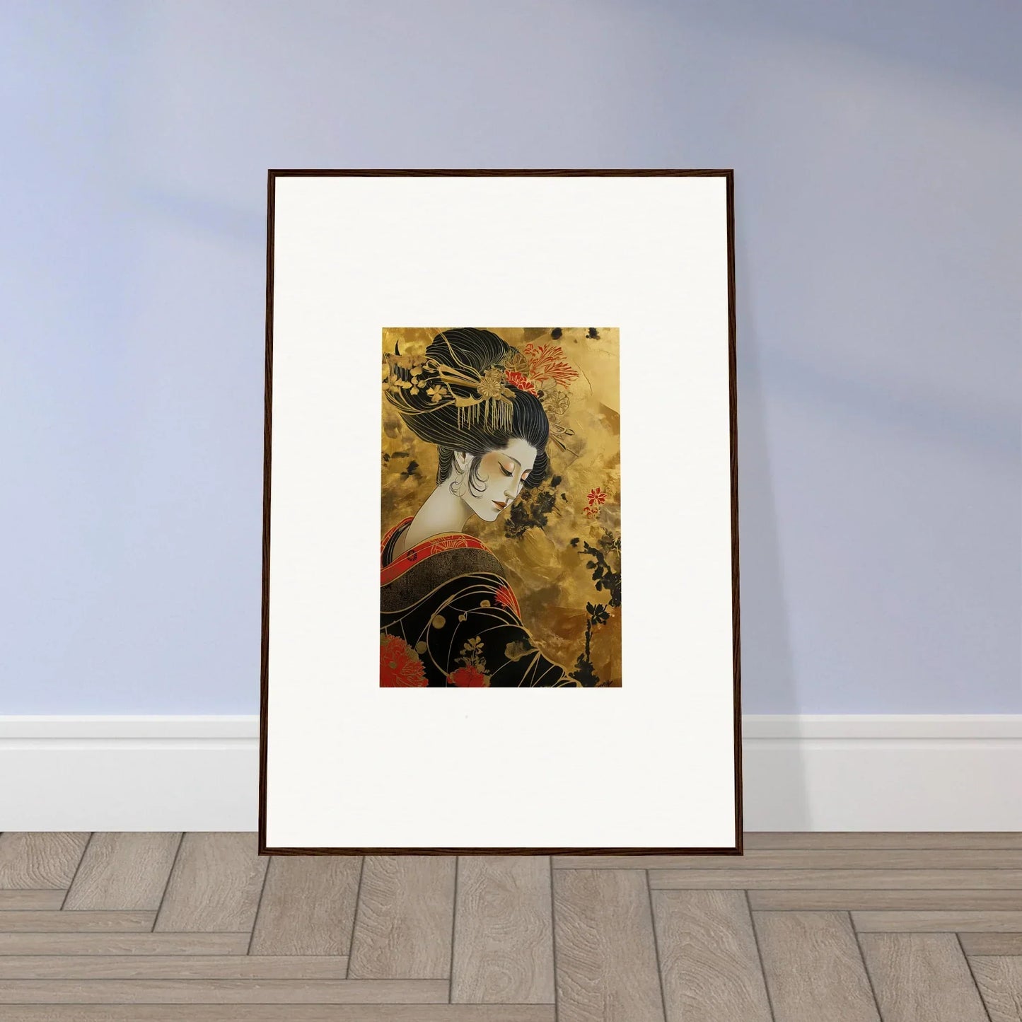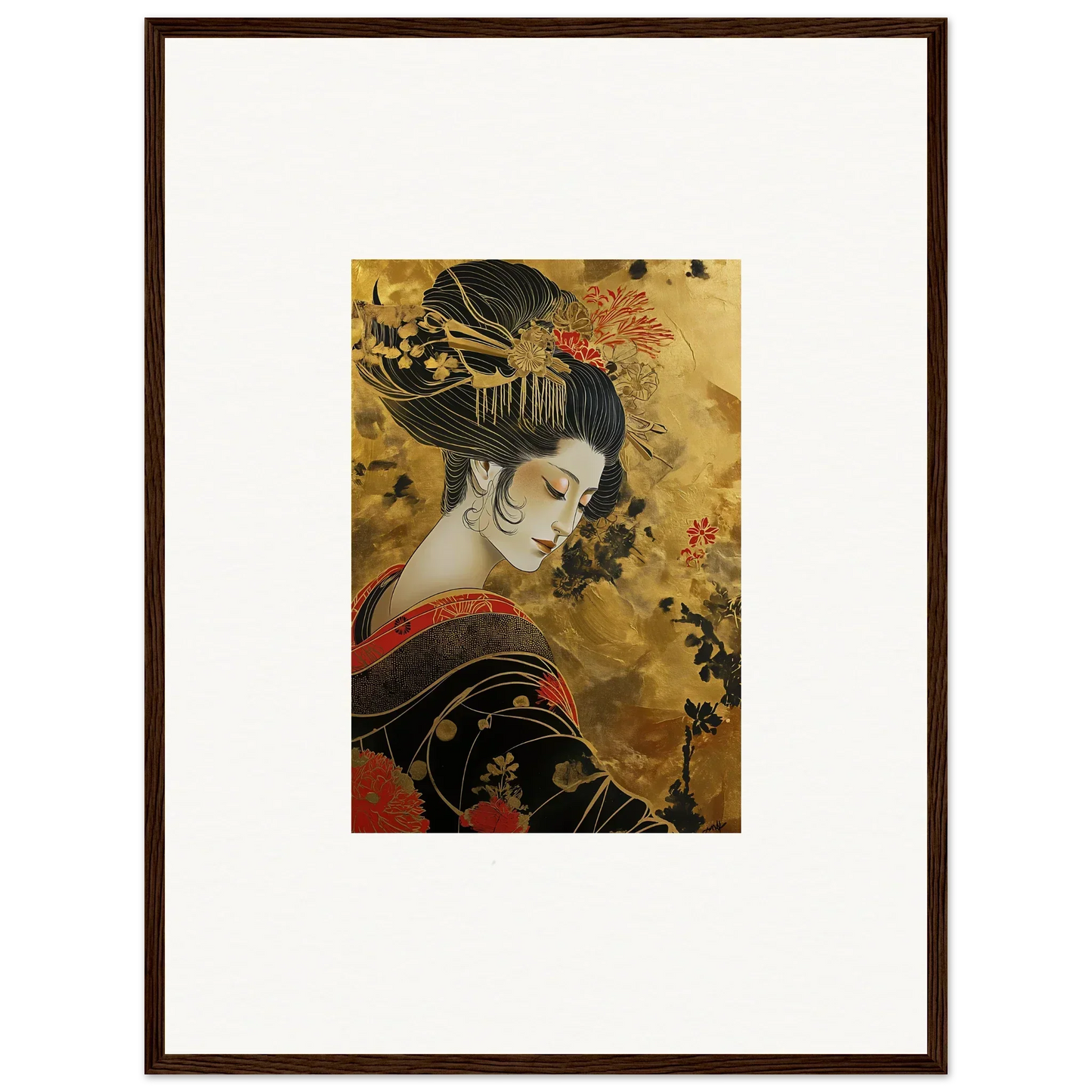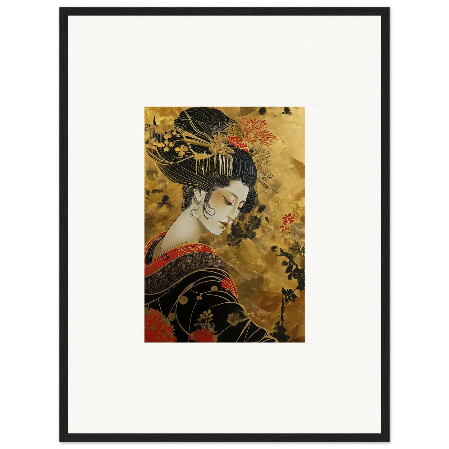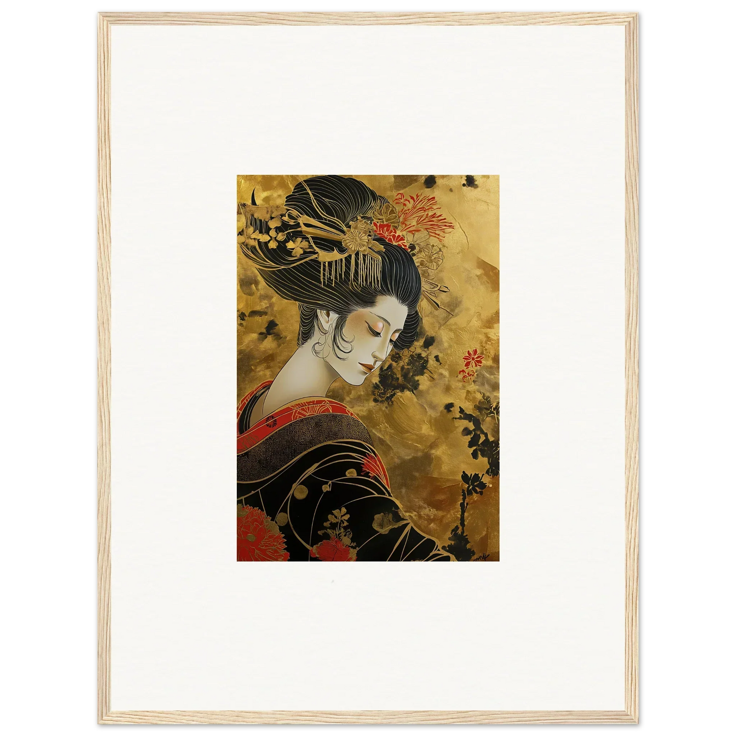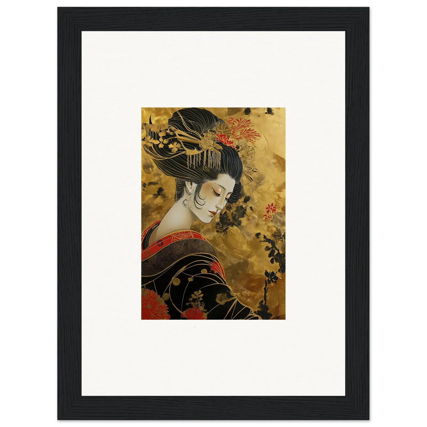 Our artwork, crafted with the latest AI image generation technology, captures the essence of Japanese Art and Cultural and World subjects. The intricate, figurative design and the luxurious gold and black color palette create a mood of serenity and peace, making this piece a perfect fit for your bedroom or living room.