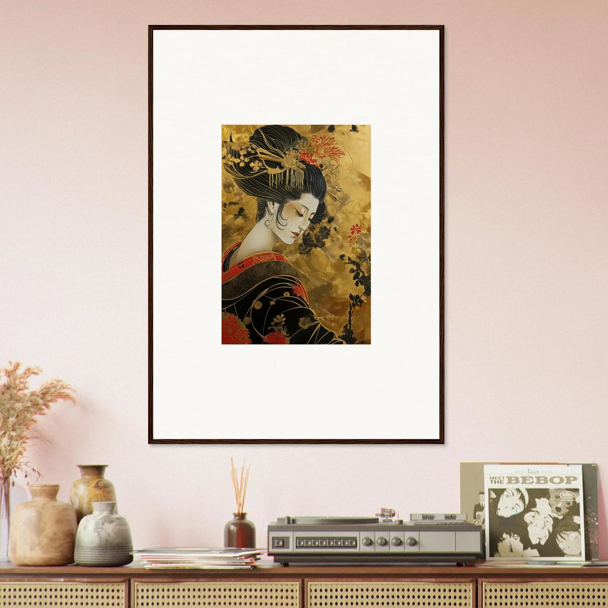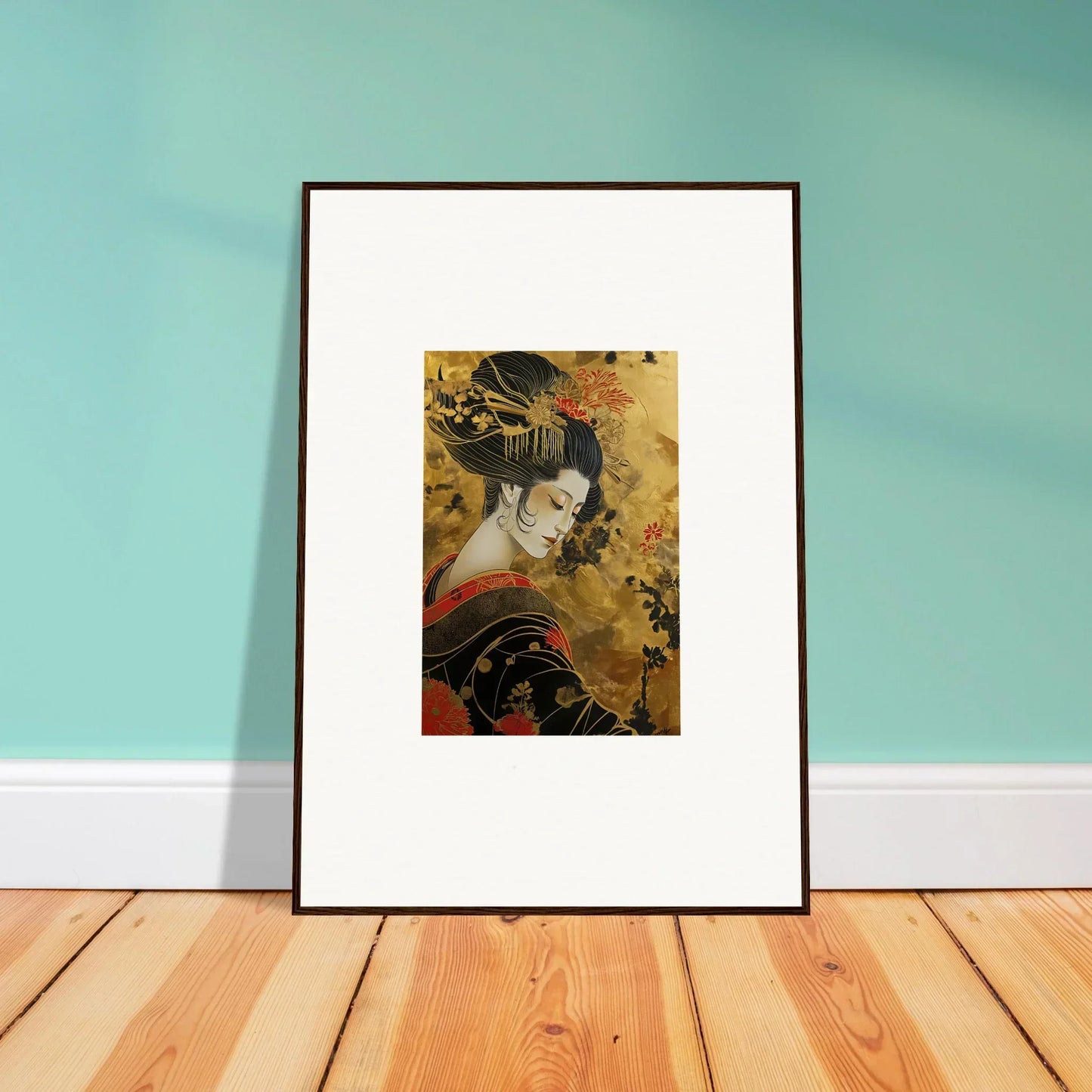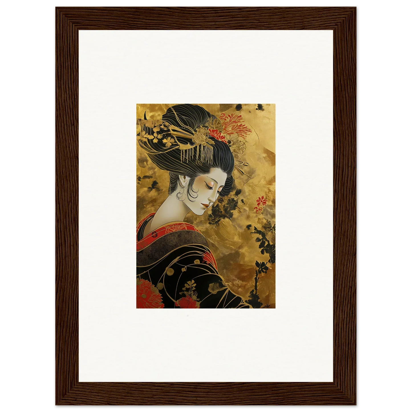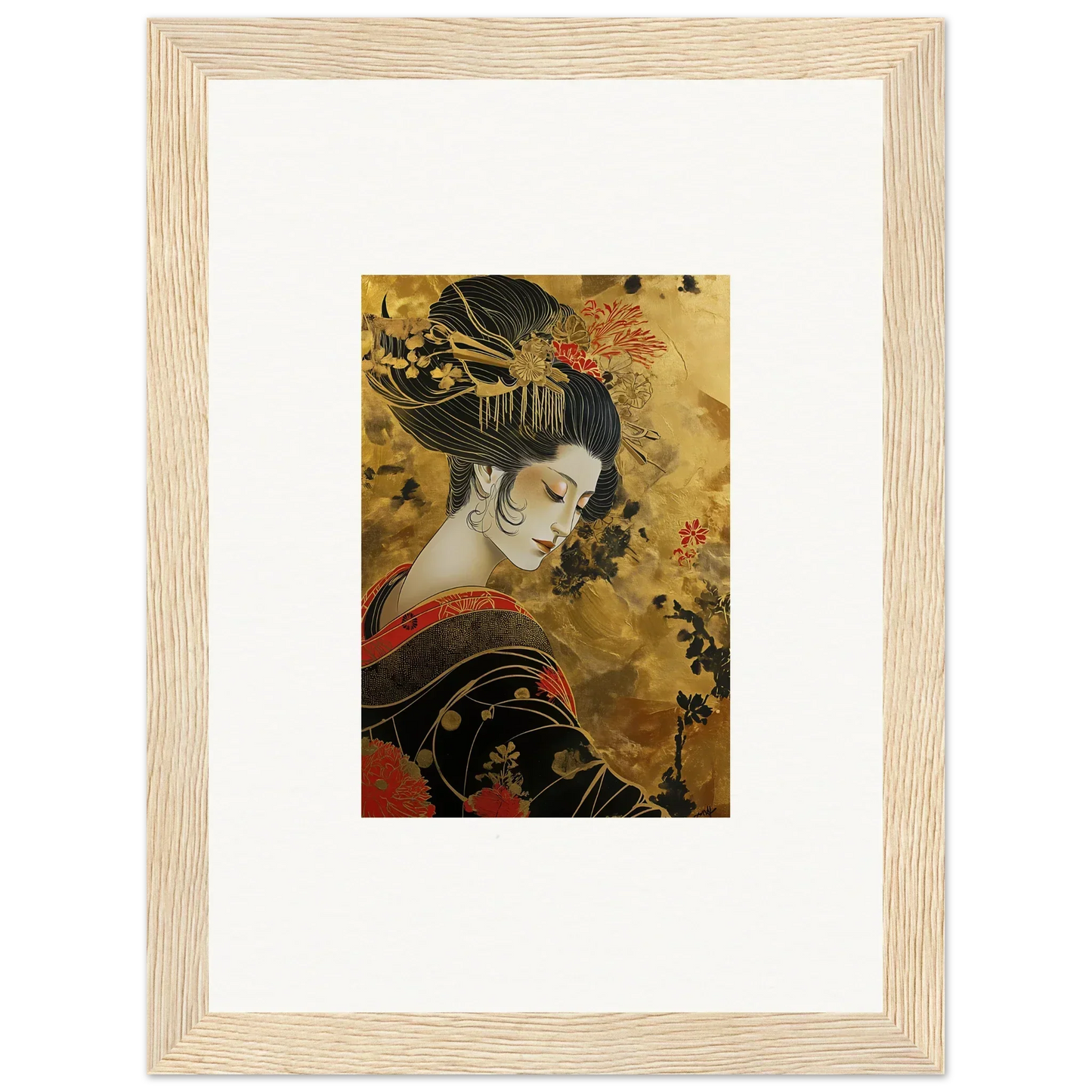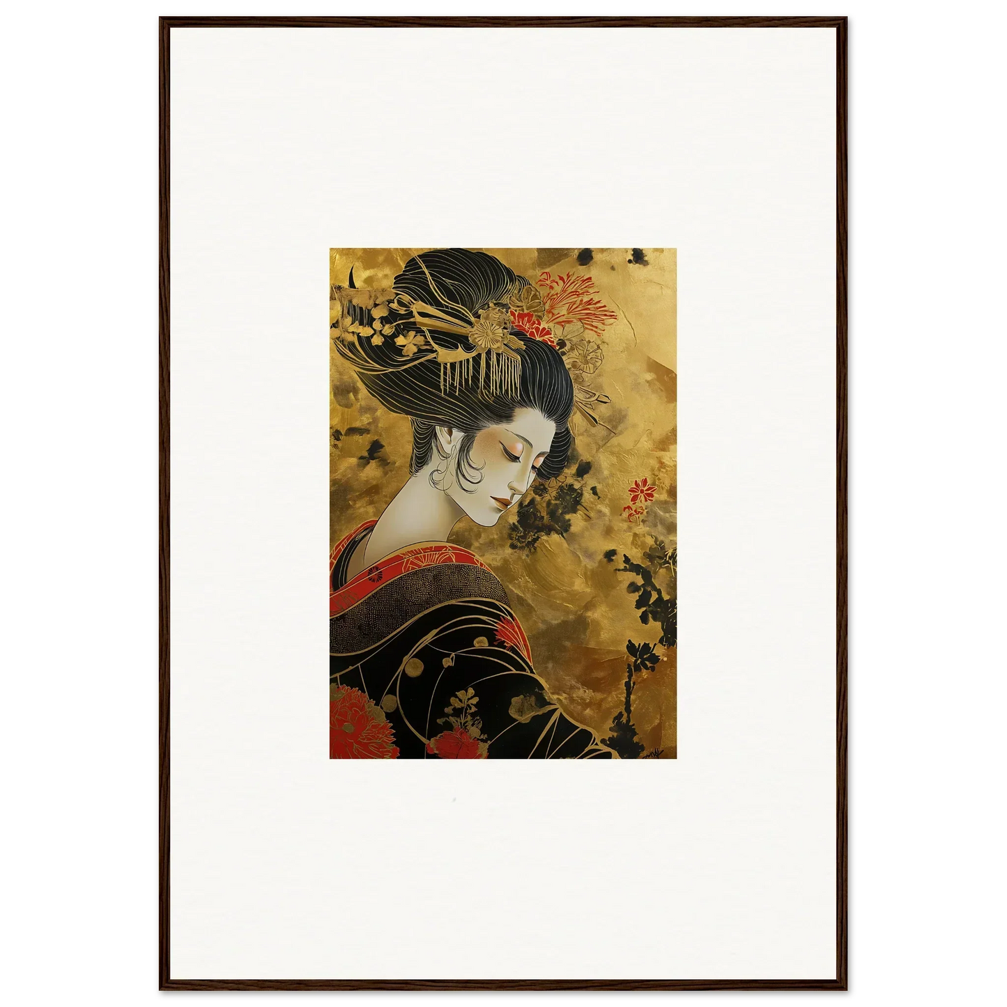 Our artwork, crafted with the latest AI image generation technology, captures the essence of Japanese Art and Cultural and World subjects. The intricate, figurative design and the luxurious gold and black color palette create a mood of serenity and peace, making this piece a perfect fit for your bedroom or living room.