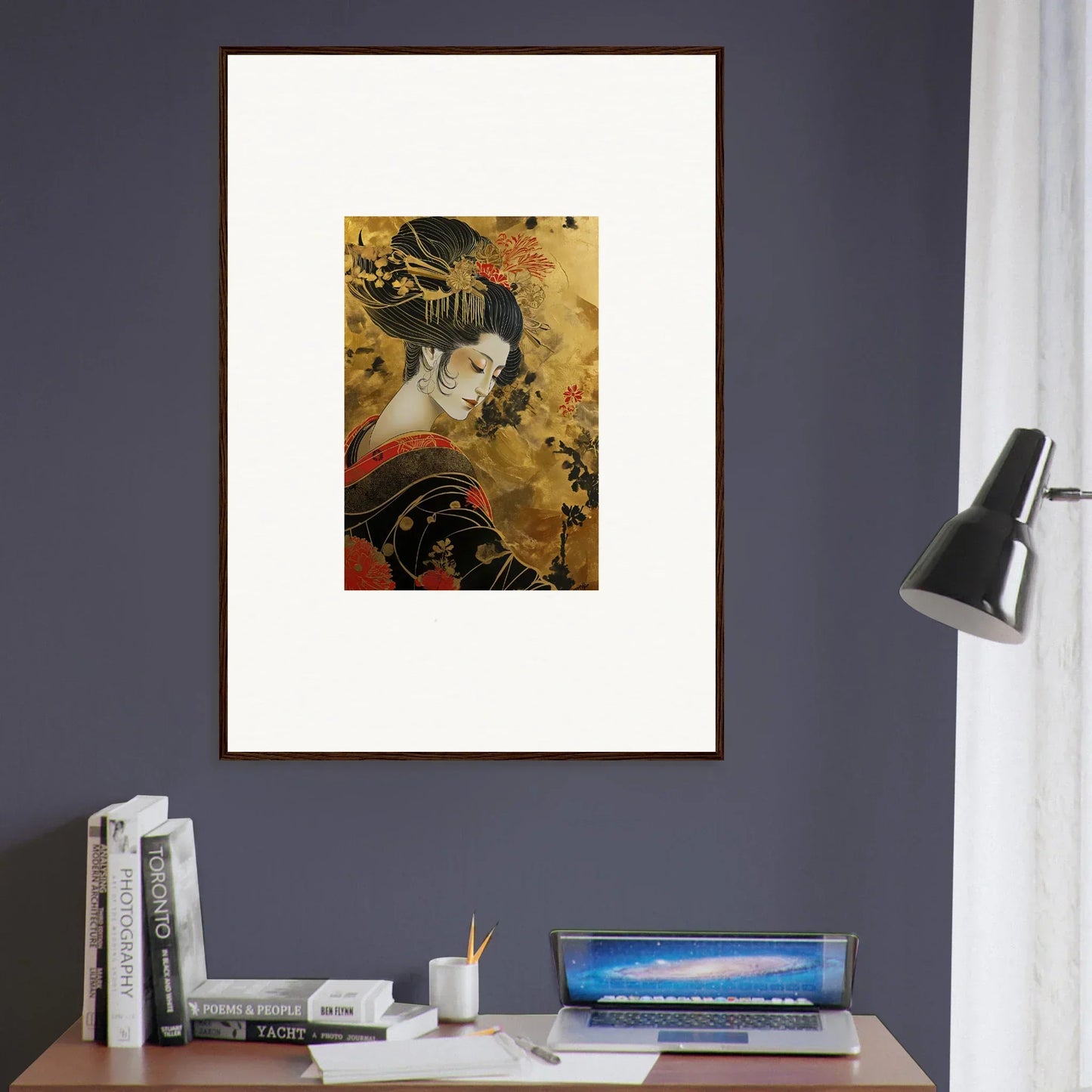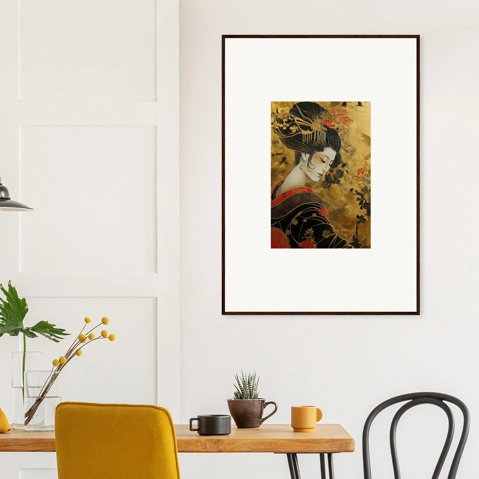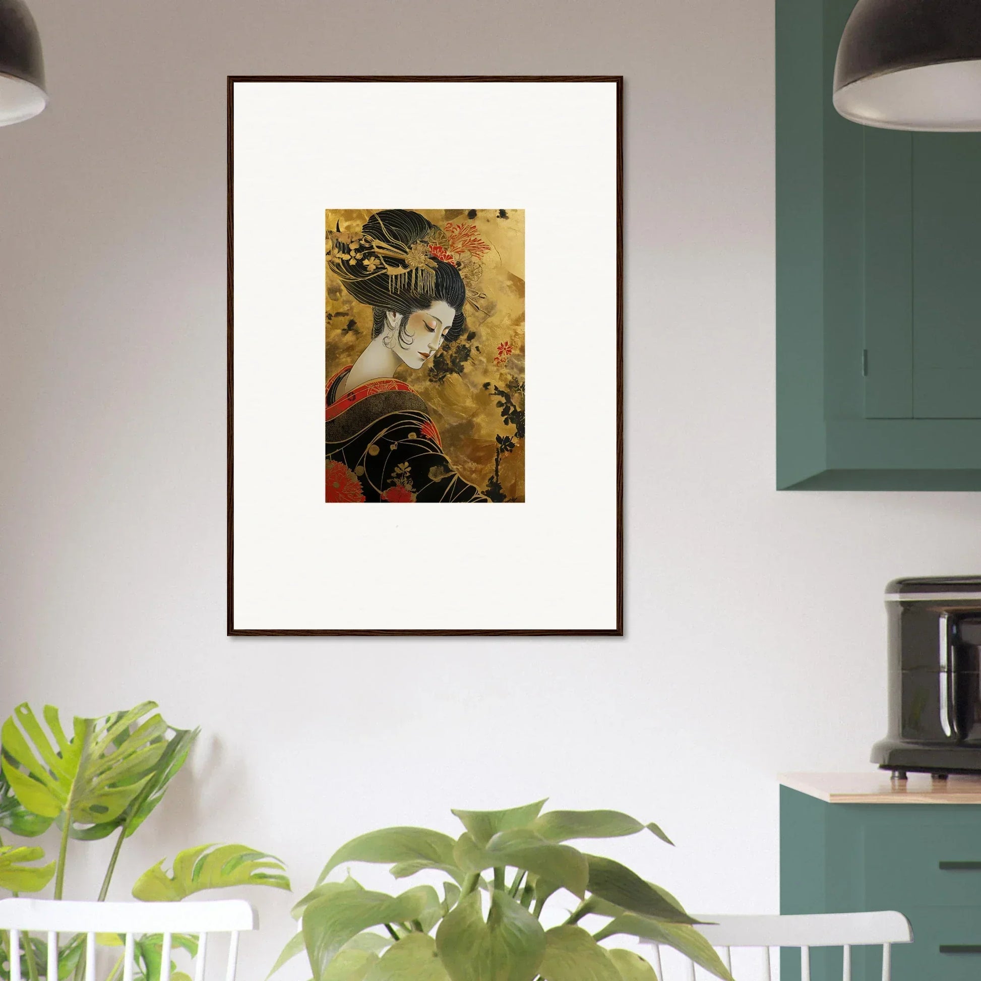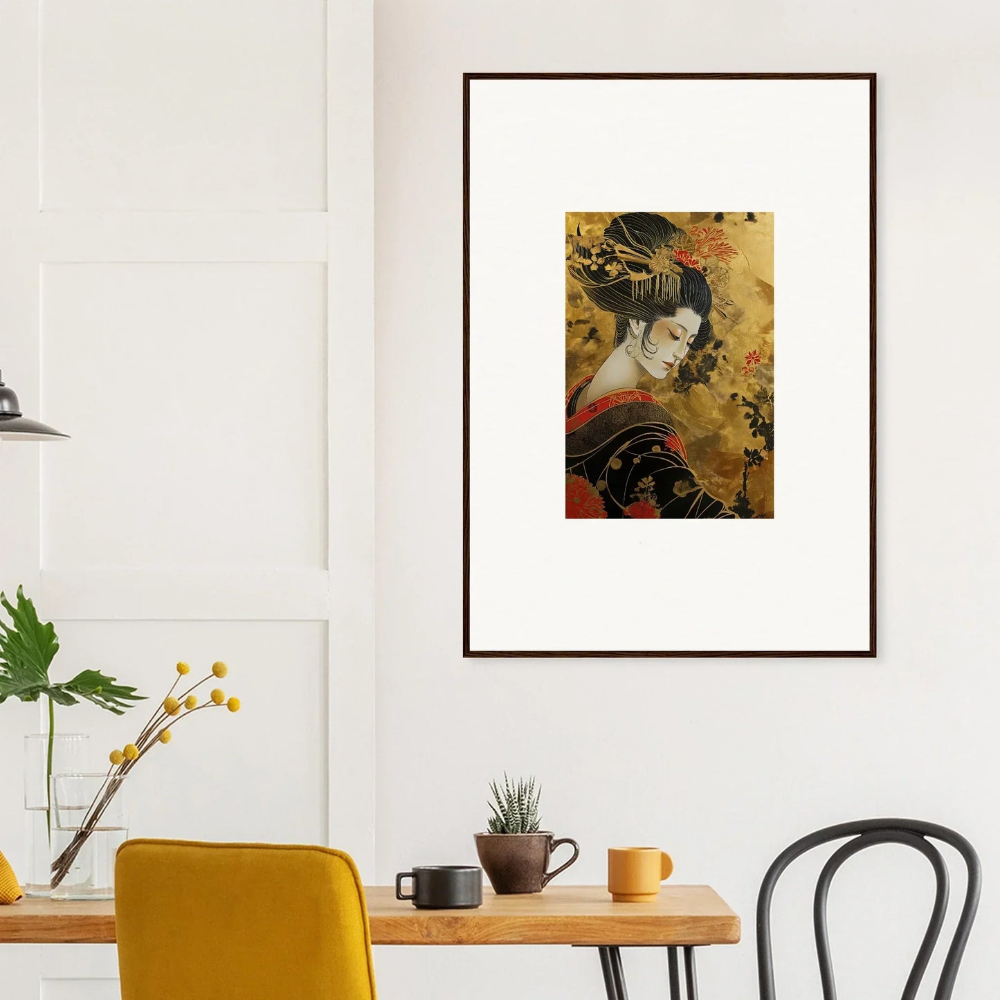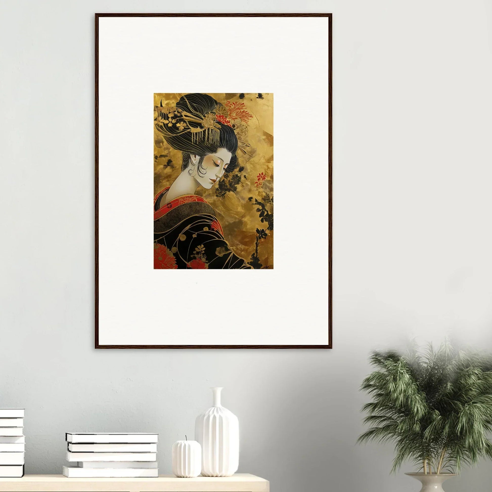 Our artwork, crafted with the latest AI image generation technology, captures the essence of Japanese Art and Cultural and World subjects. The intricate, figurative design and the luxurious gold and black color palette create a mood of serenity and peace, making this piece a perfect fit for your bedroom or living room.