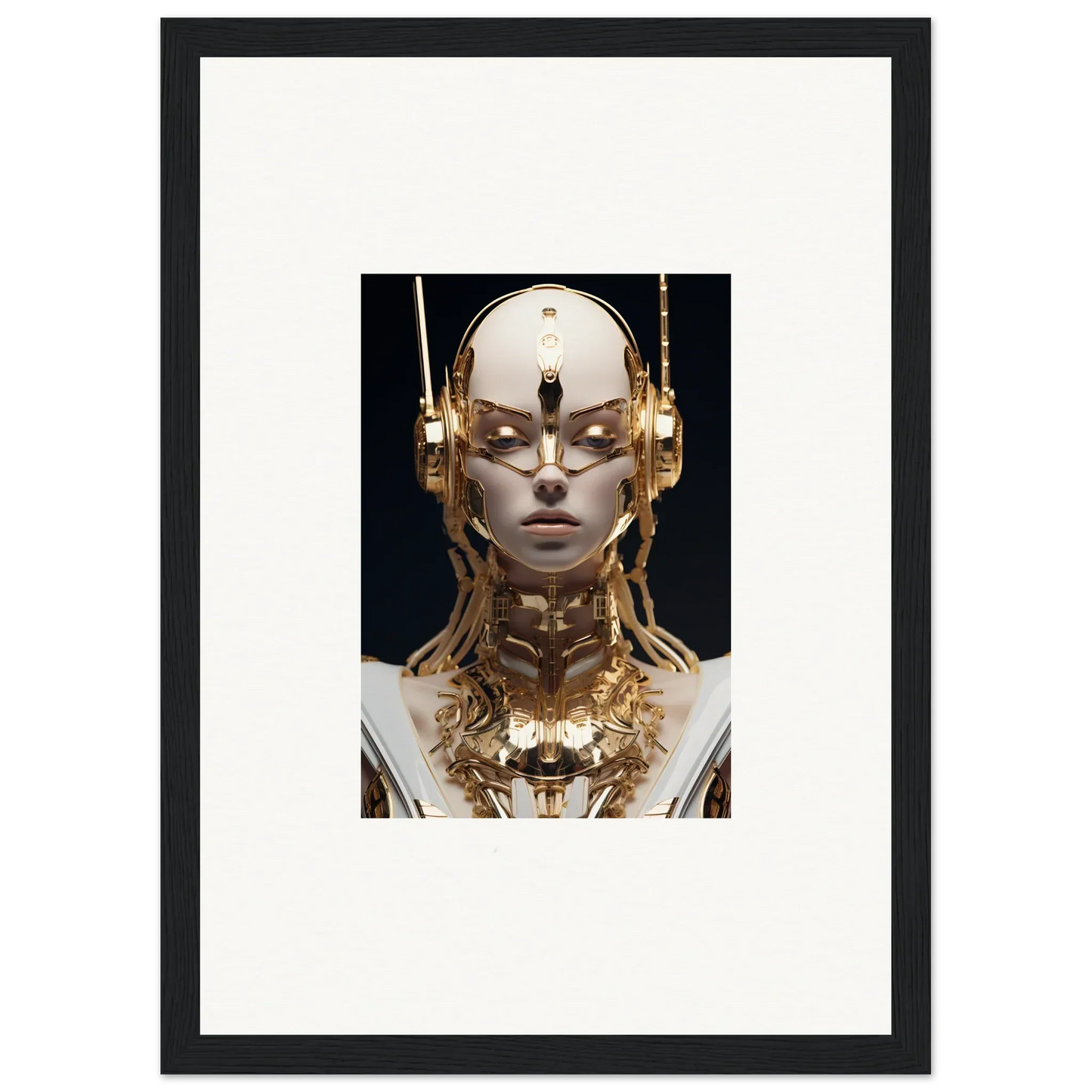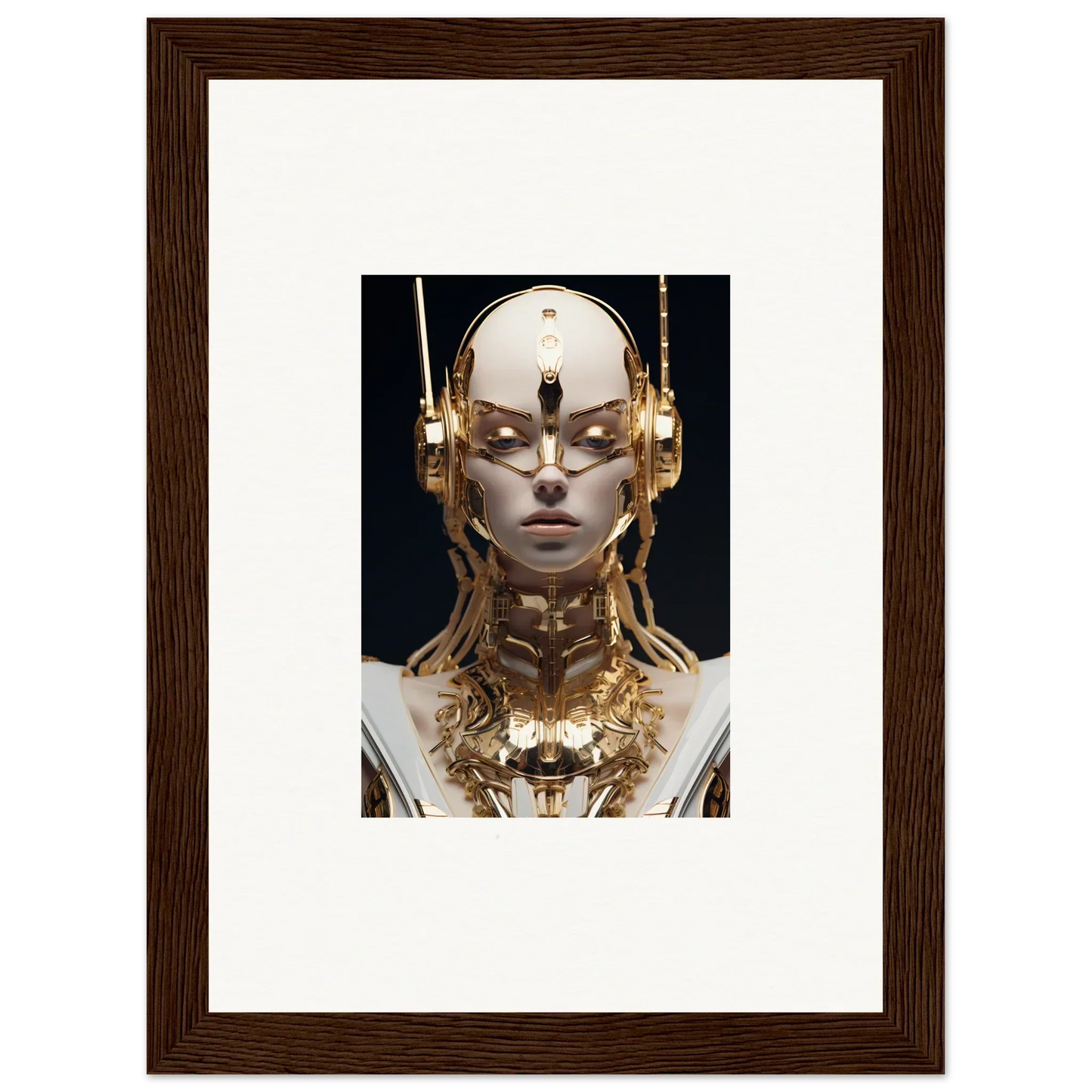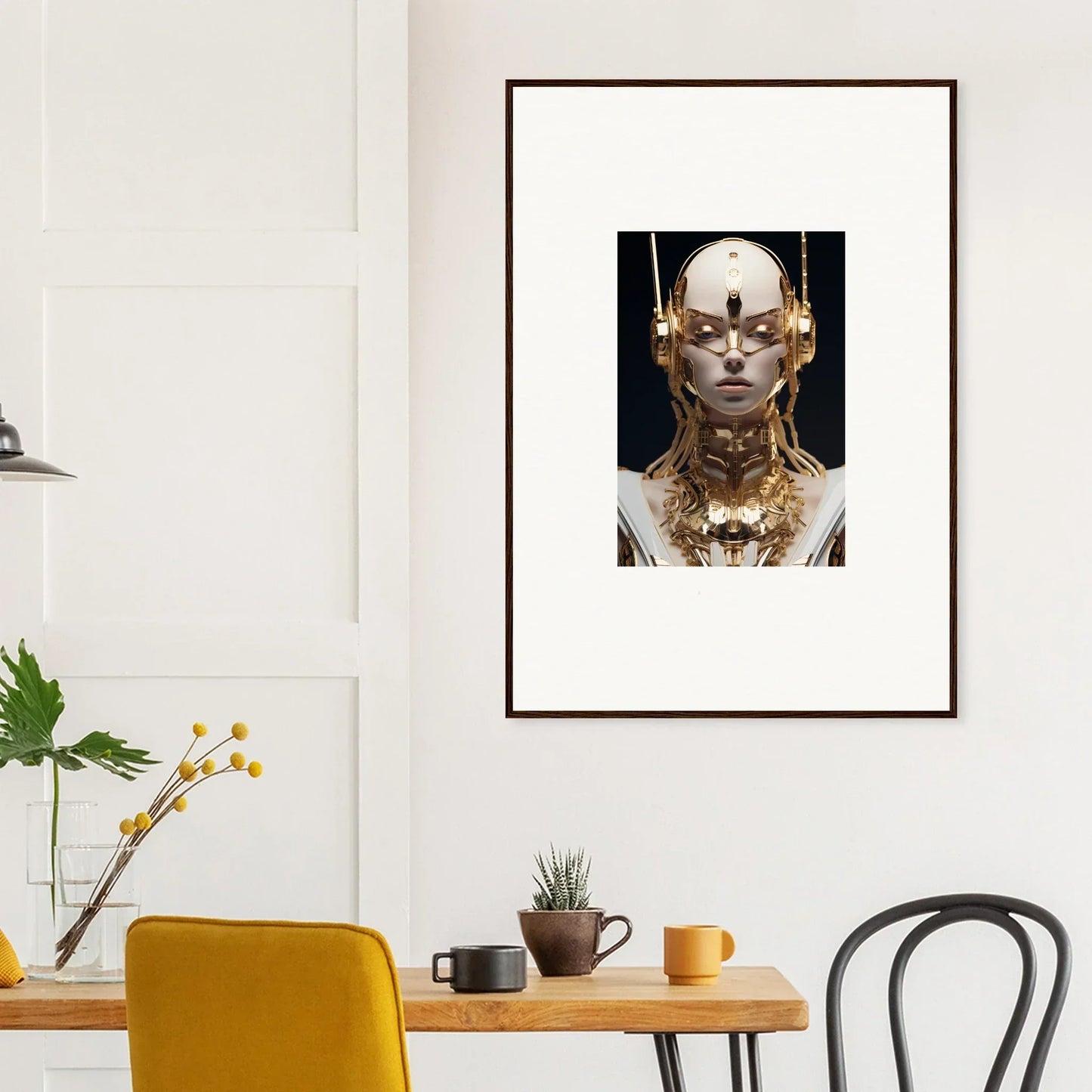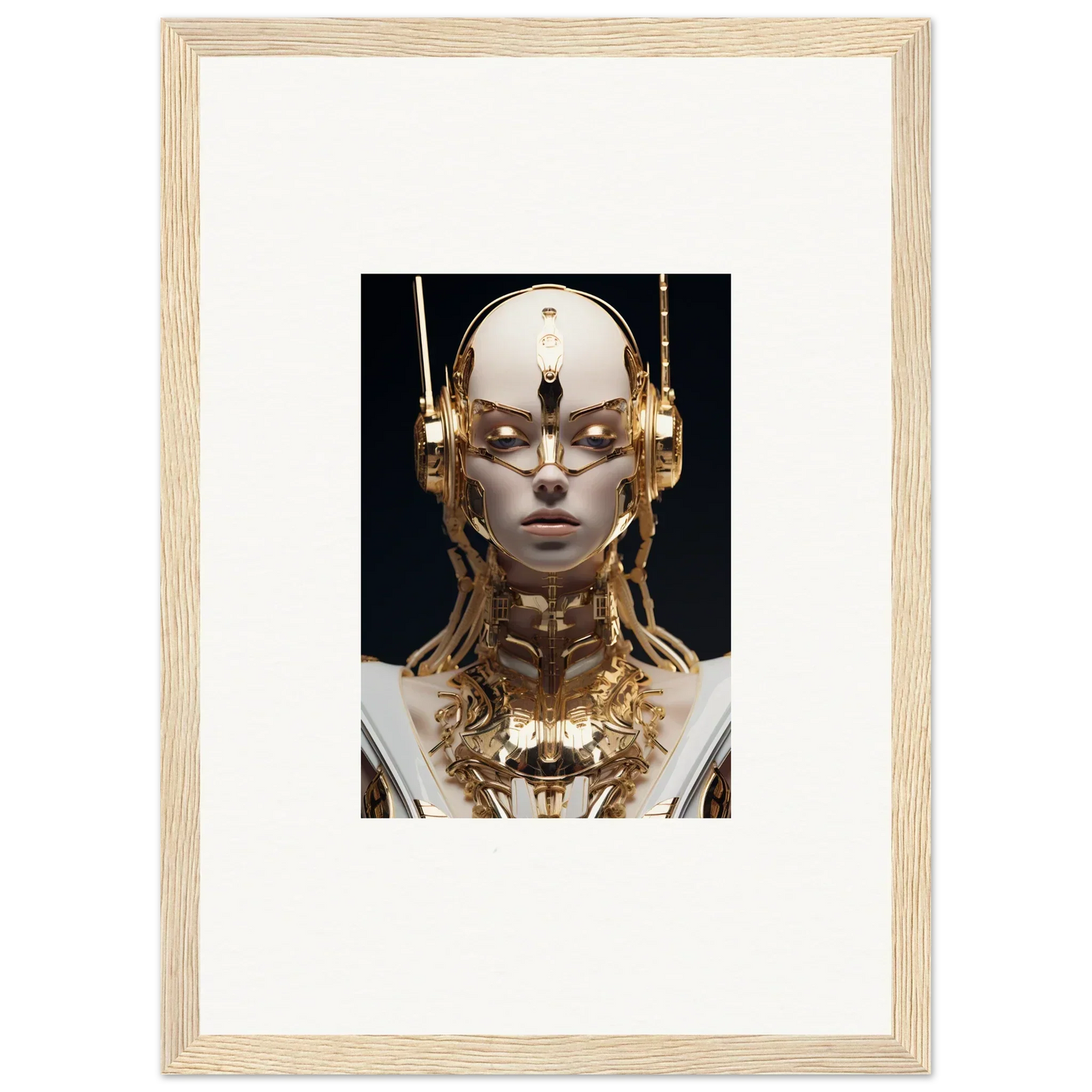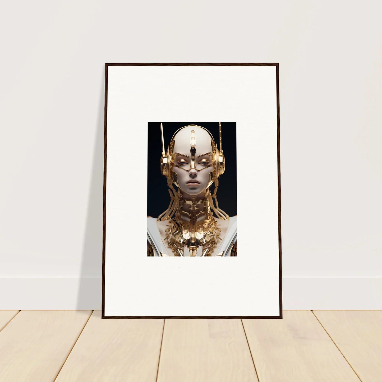 Imagine a moment where art and craftsmanship meet, creating a timeless piece that transforms your living space into a gallery of elegance. Our Premium Framed Wall Art featuring the Golden Echo Entity is designed to do just that. This masterful portrayal of futuristic mystique and sophistication, crafted using the latest AI image generation technology, captivates the essence of modern creativity and classic sophistication.