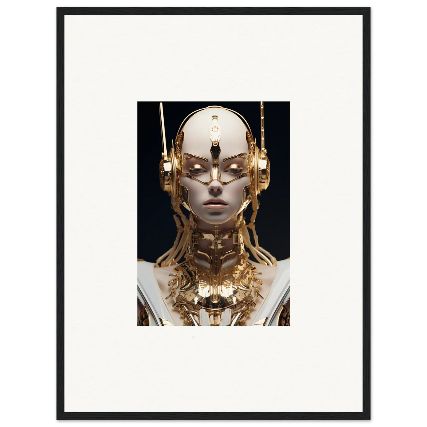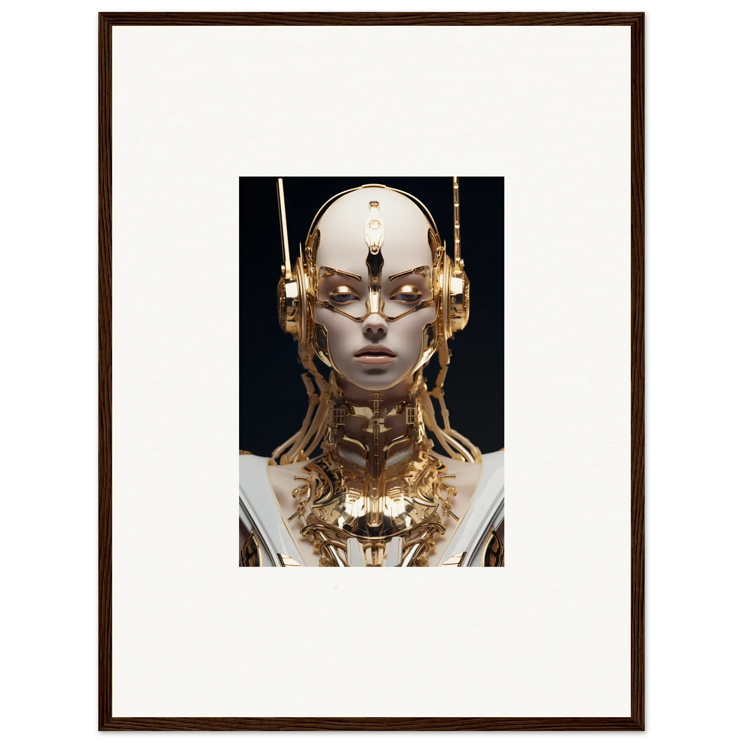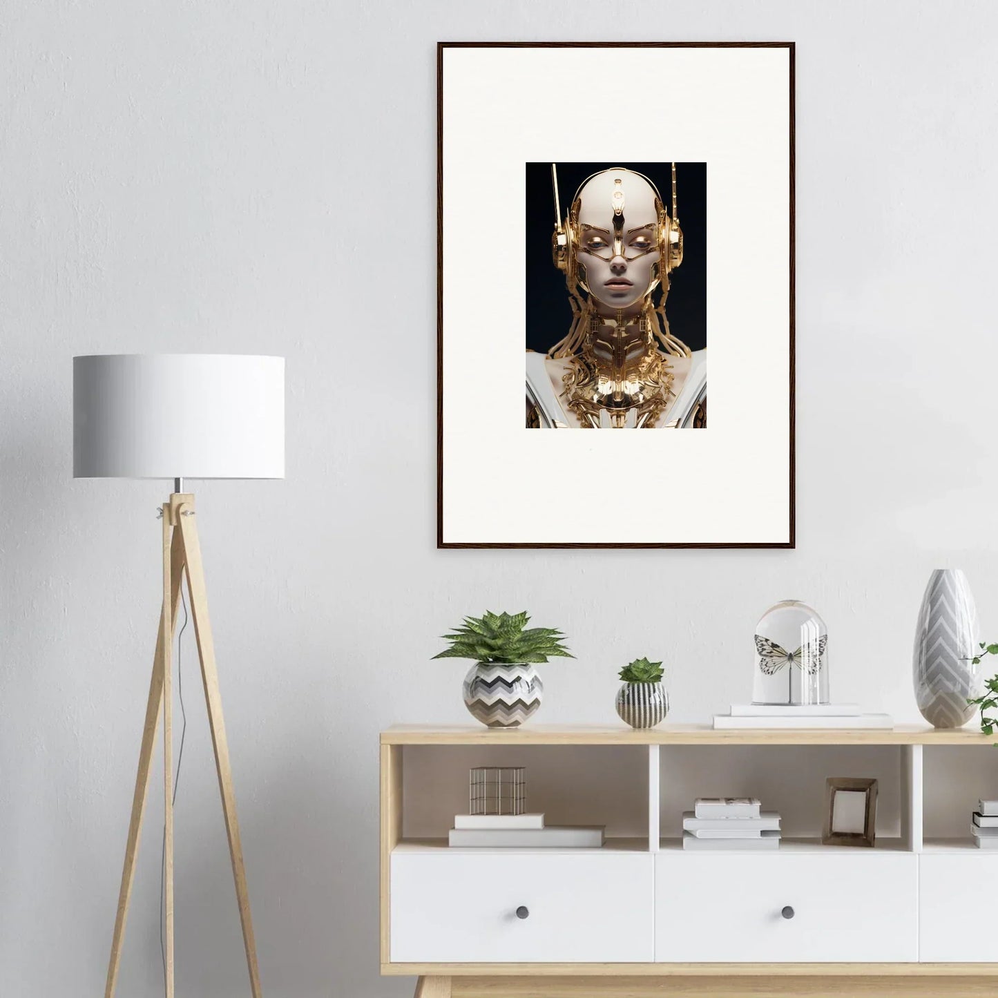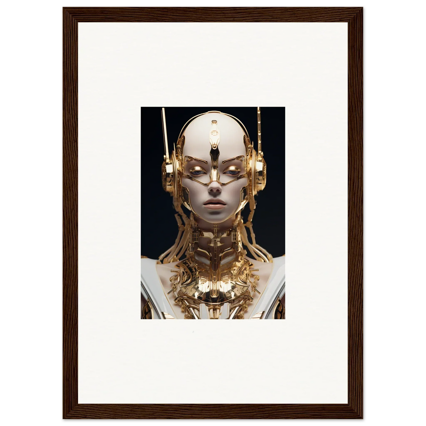 Imagine a moment where art and craftsmanship meet, creating a timeless piece that transforms your living space into a gallery of elegance. Our Premium Framed Wall Art featuring the Golden Echo Entity is designed to do just that. This masterful portrayal of futuristic mystique and sophistication, crafted using the latest AI image generation technology, captivates the essence of modern creativity and classic sophistication.