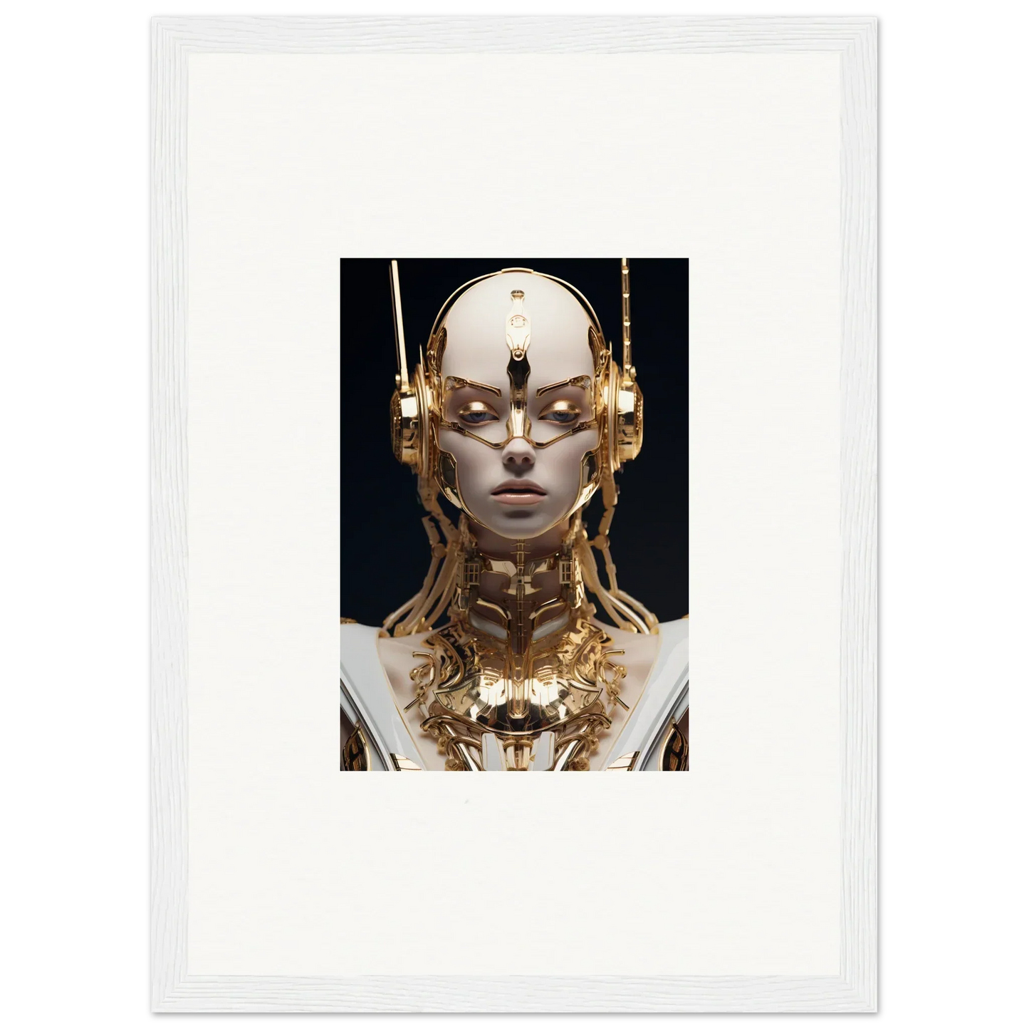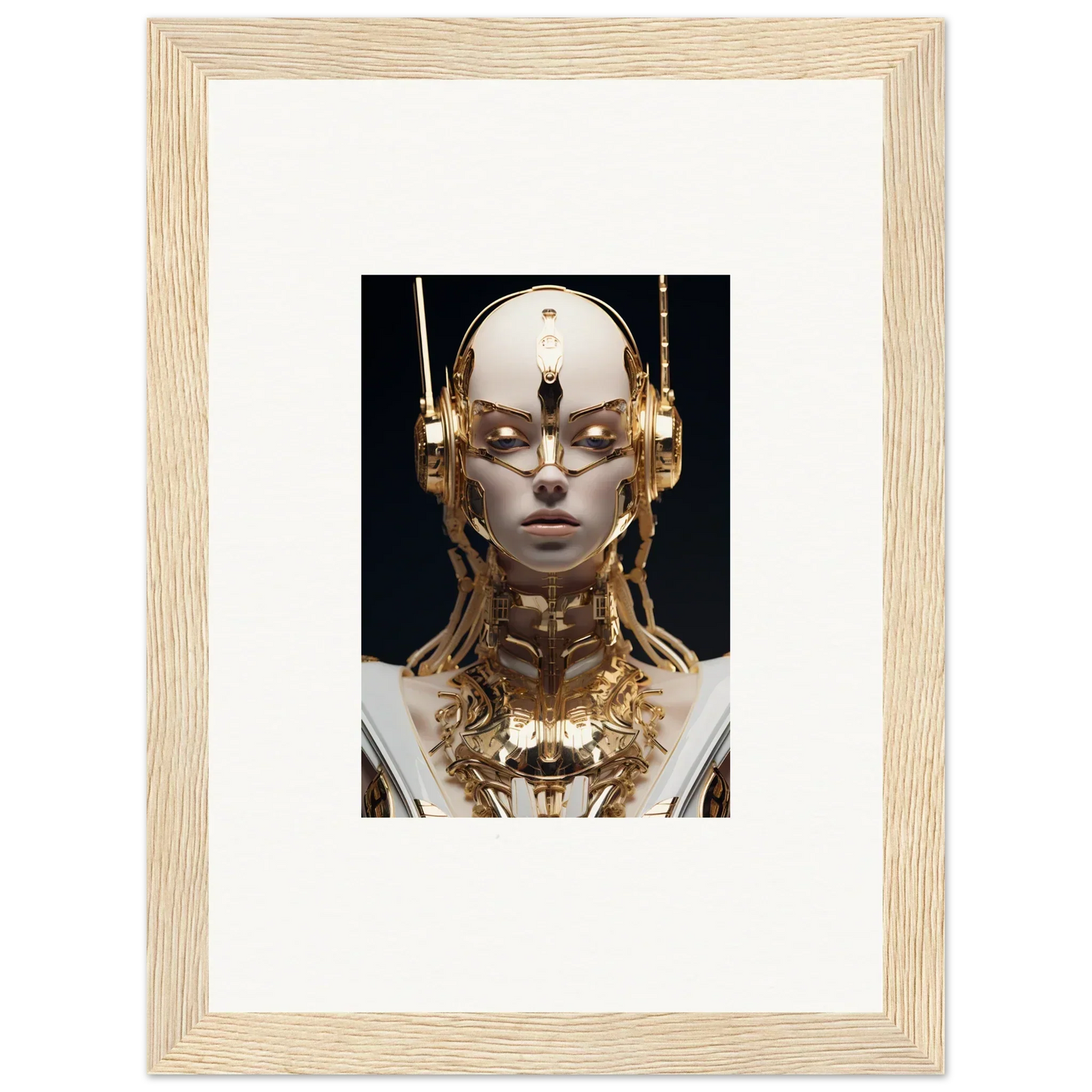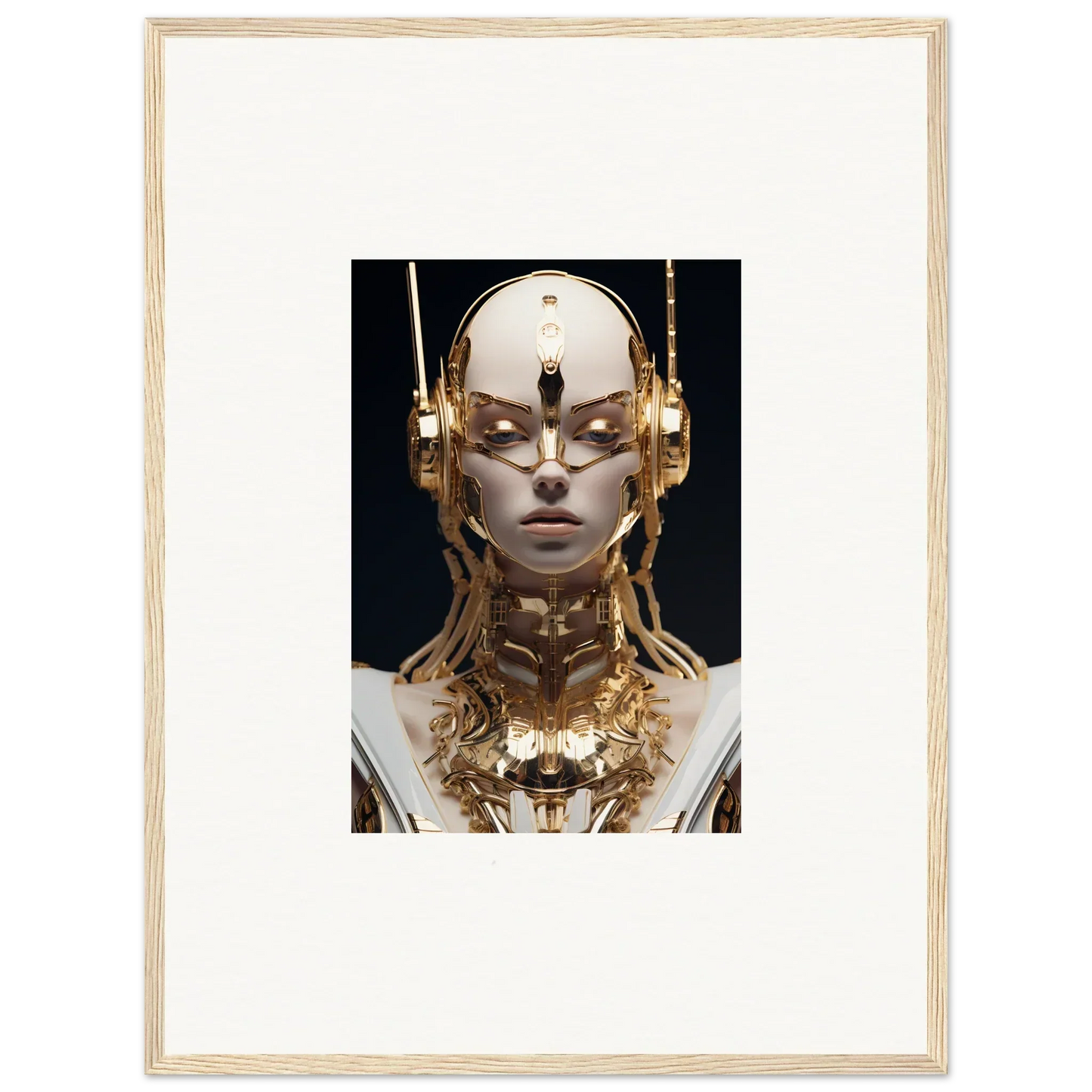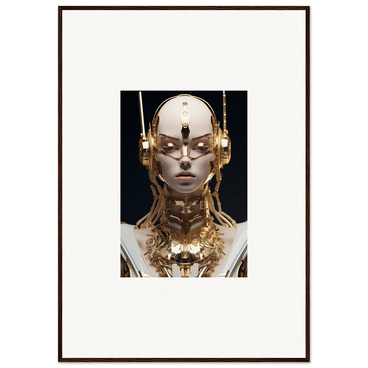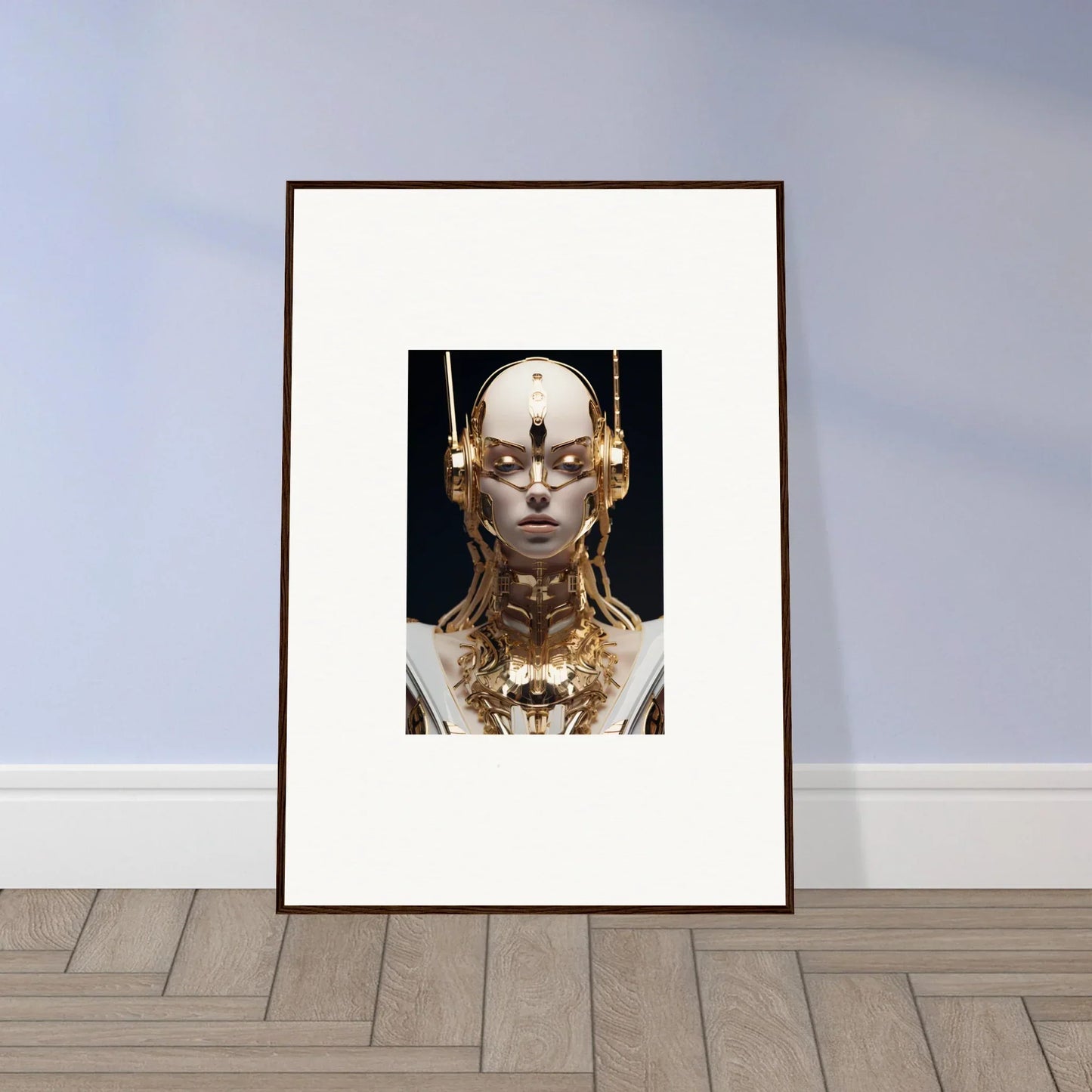 Imagine a moment where art and craftsmanship meet, creating a timeless piece that transforms your living space into a gallery of elegance. Our Premium Framed Wall Art featuring the Golden Echo Entity is designed to do just that. This masterful portrayal of futuristic mystique and sophistication, crafted using the latest AI image generation technology, captivates the essence of modern creativity and classic sophistication.