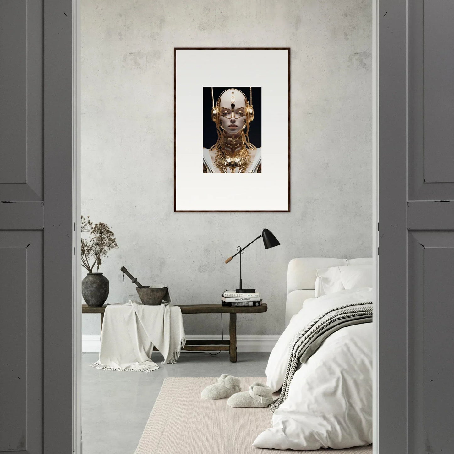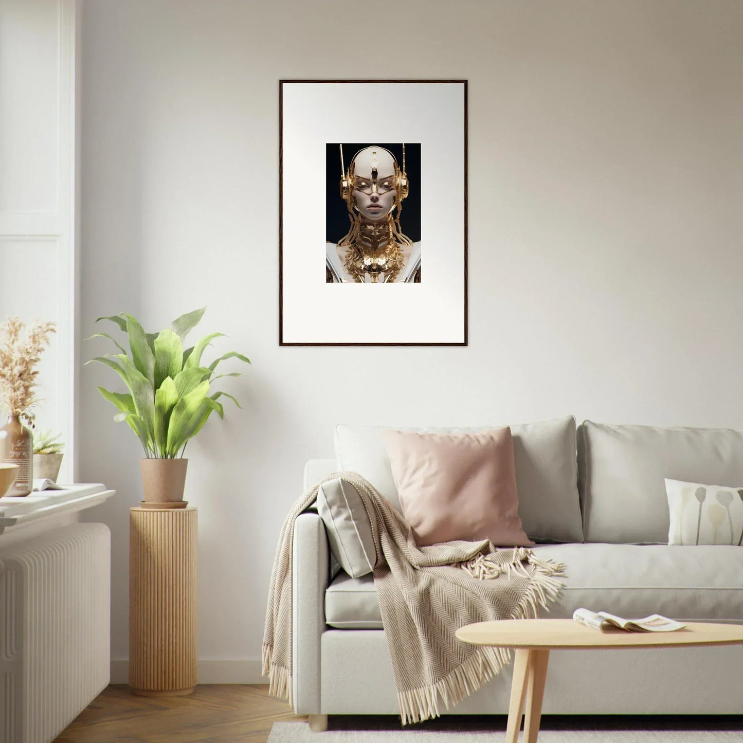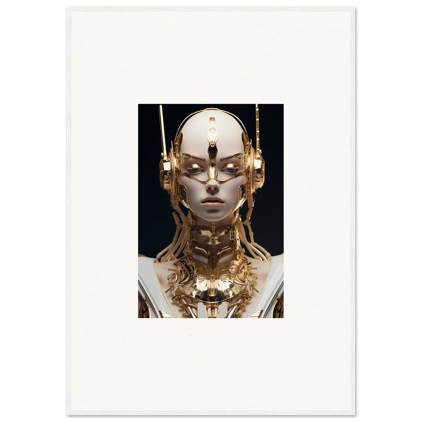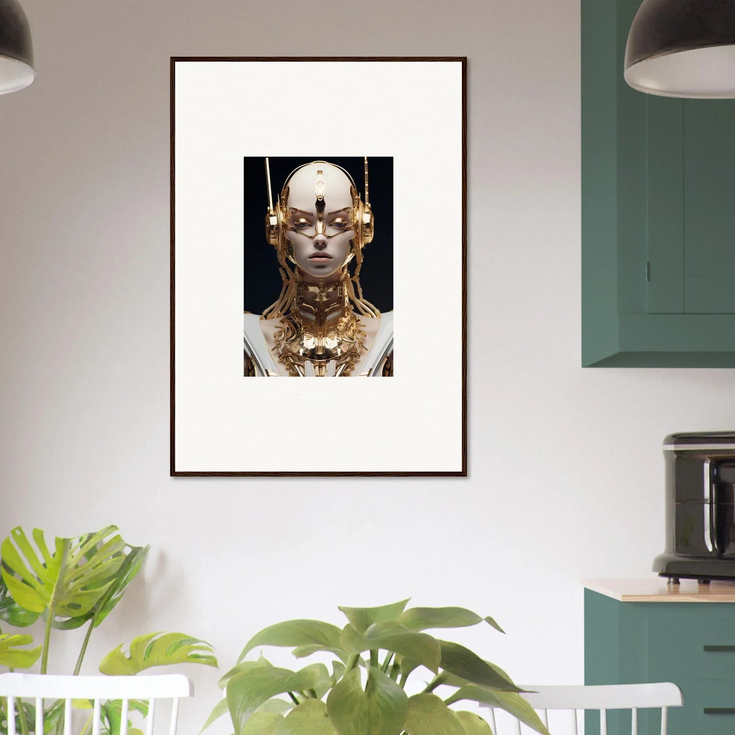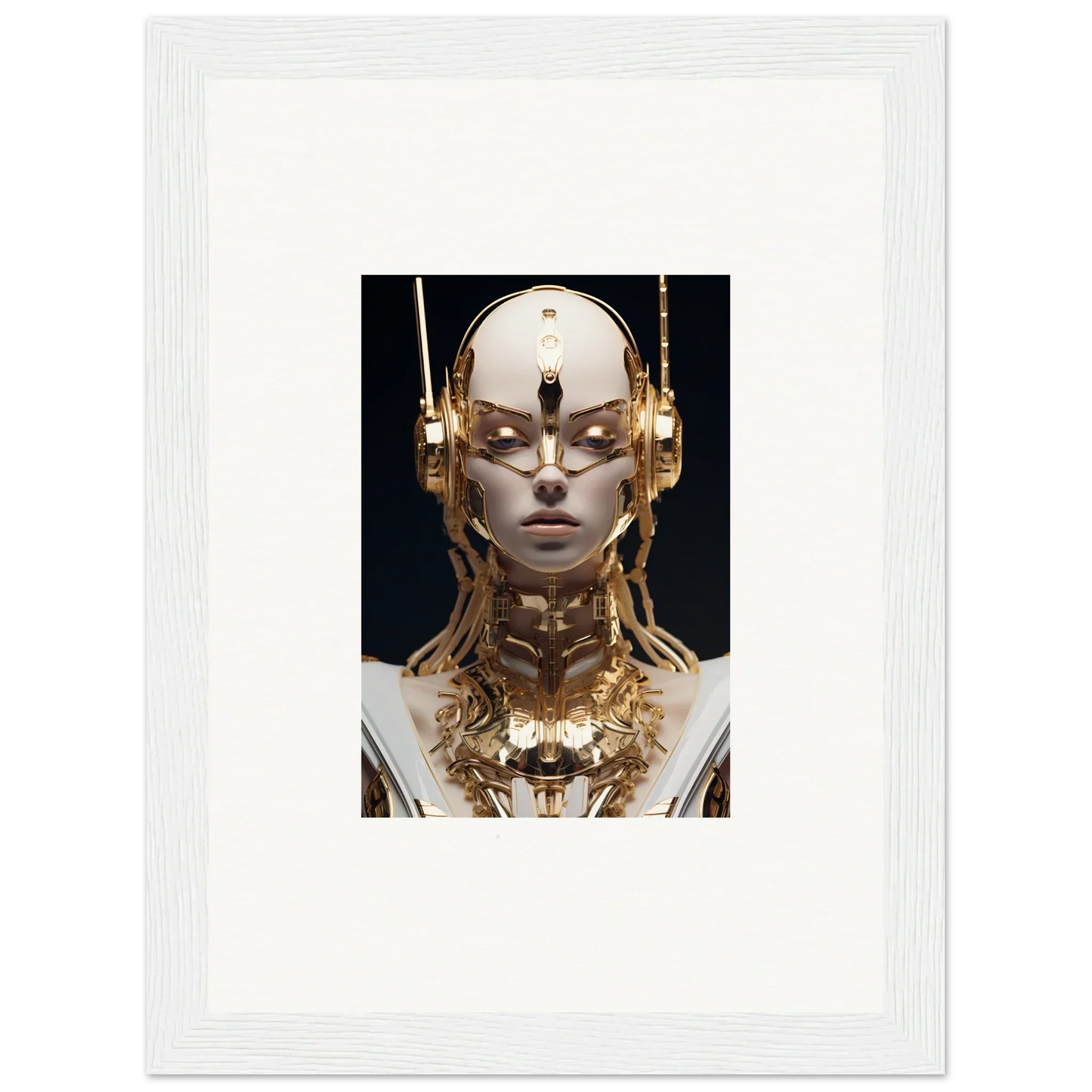 Imagine a moment where art and craftsmanship meet, creating a timeless piece that transforms your living space into a gallery of elegance. Our Premium Framed Wall Art featuring the Golden Echo Entity is designed to do just that. This masterful portrayal of futuristic mystique and sophistication, crafted using the latest AI image generation technology, captivates the essence of modern creativity and classic sophistication.