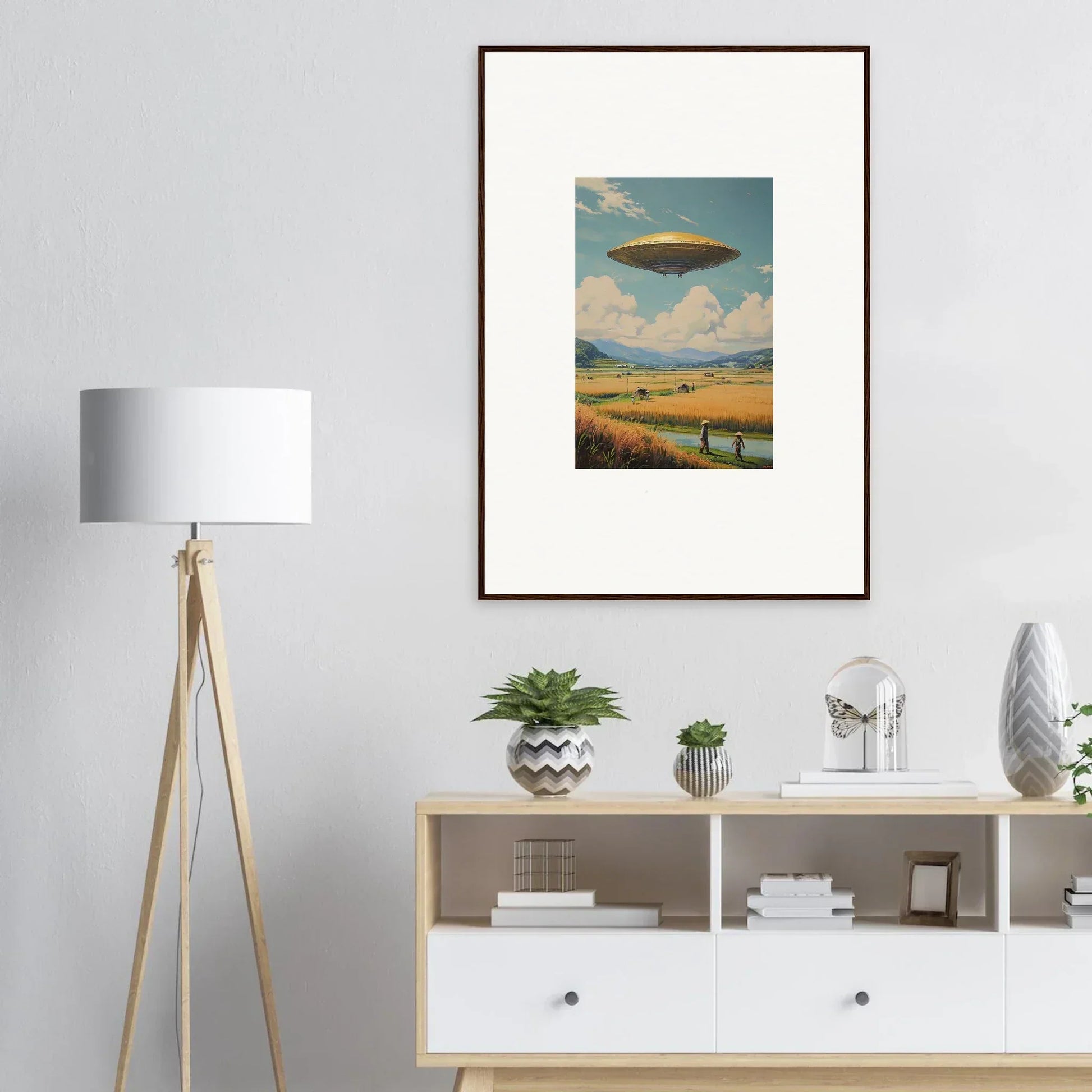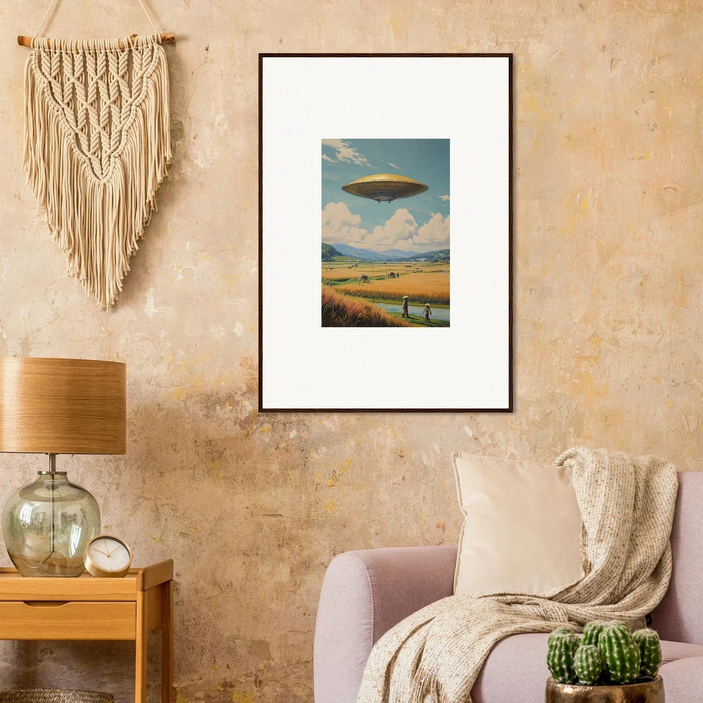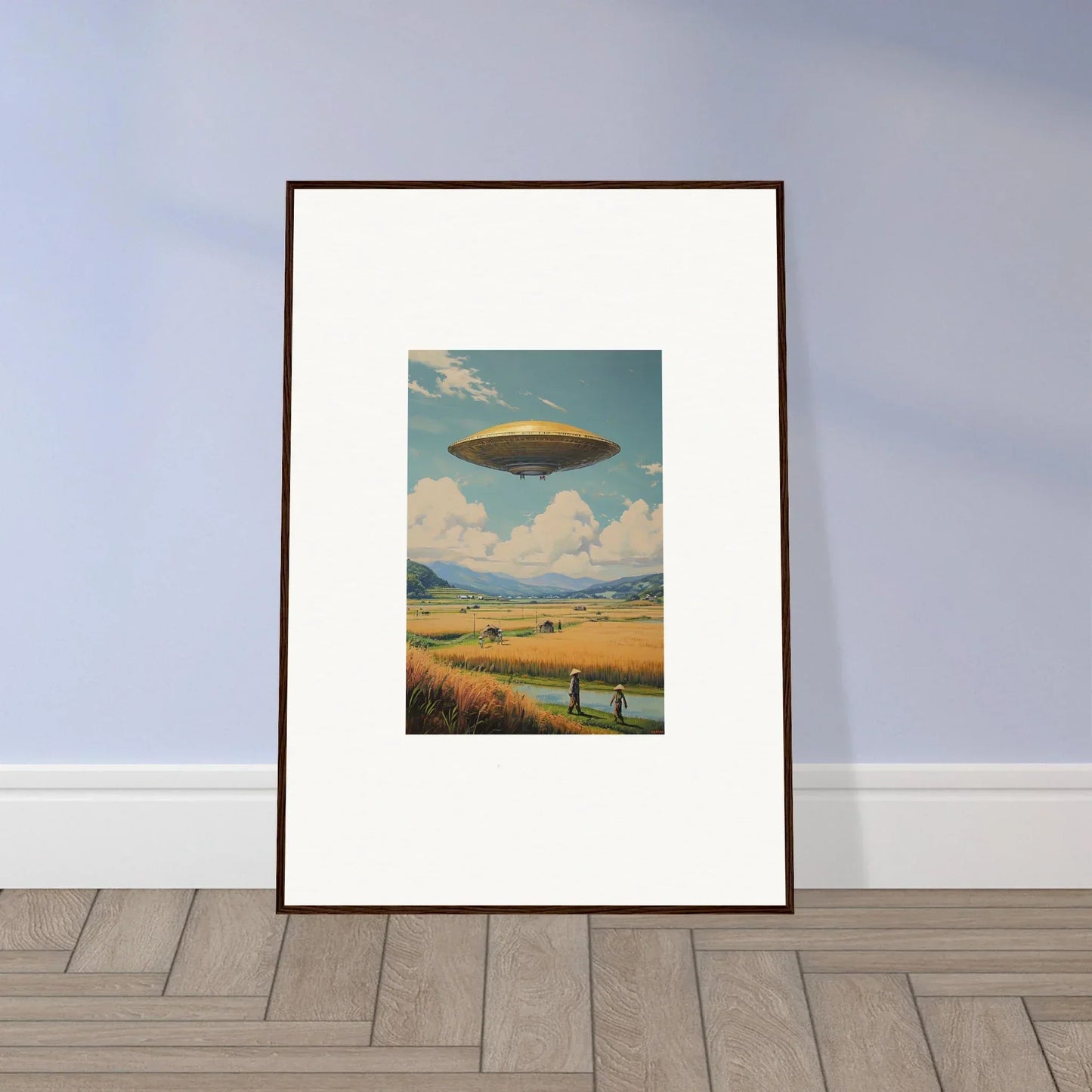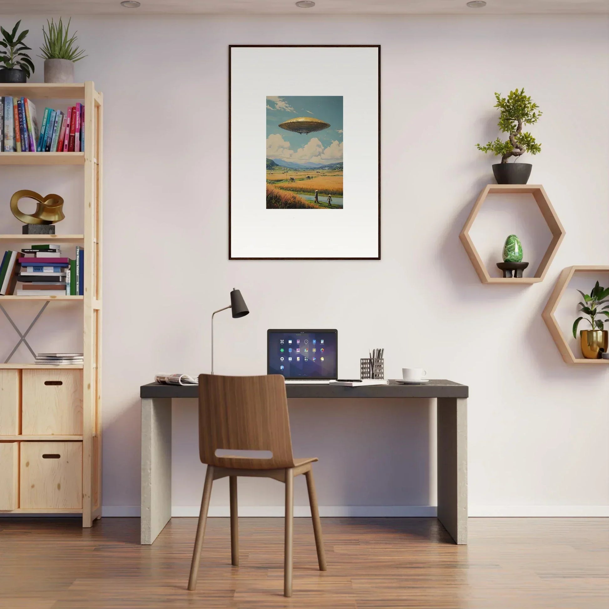 This stunning piece, boasting hues of blue and complementary naturals, is perfect for injecting a sense of adventure and exploration into your living room or home office. Its contemporary art style and subject matter, blending architecture and cityscapes with a touch of fantasy, make it a captivating focal point in any setting. The expansive margins draw the eye inward, making the art appear to hover and adding a layer of depth to your walls.