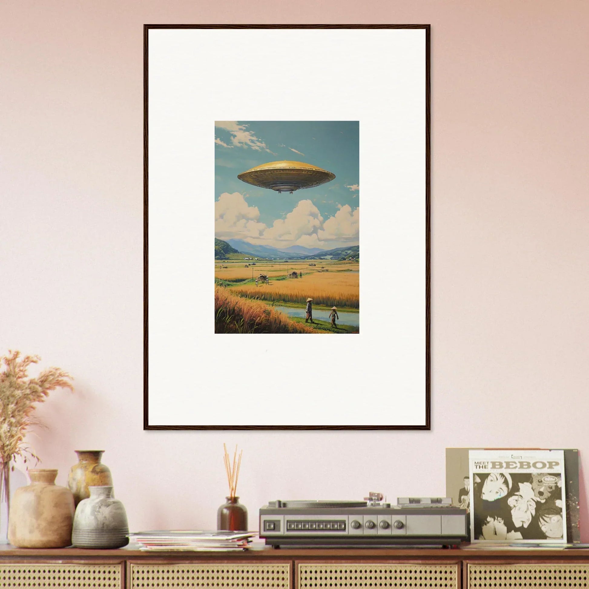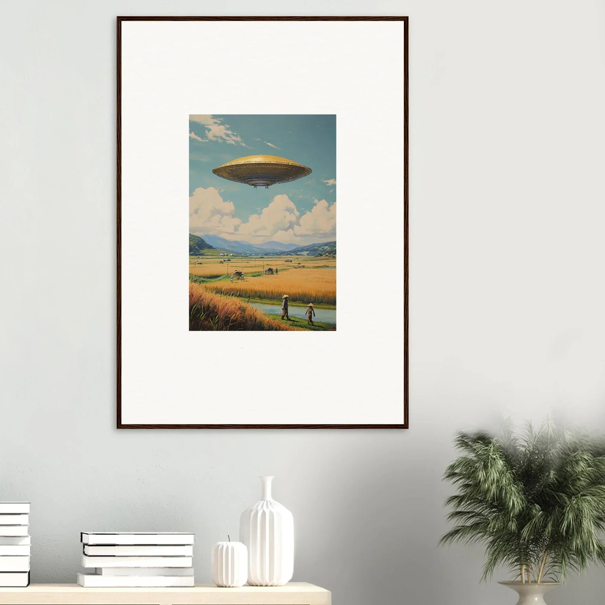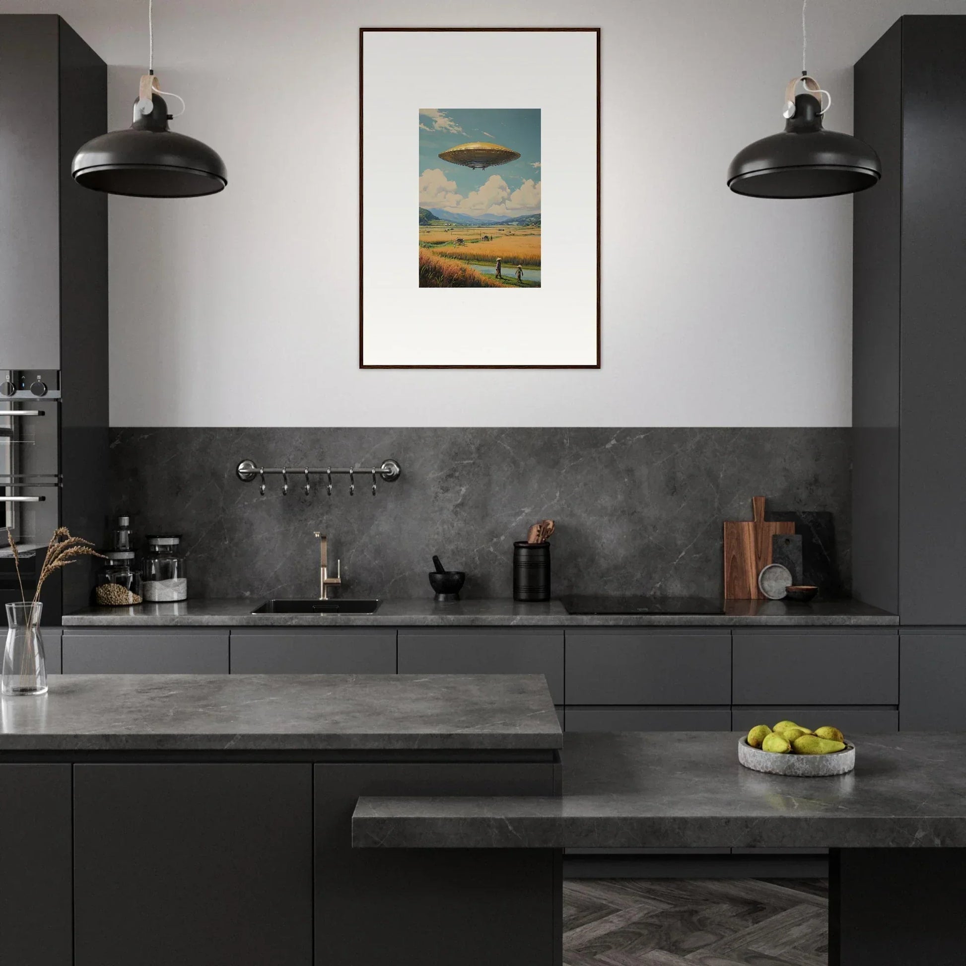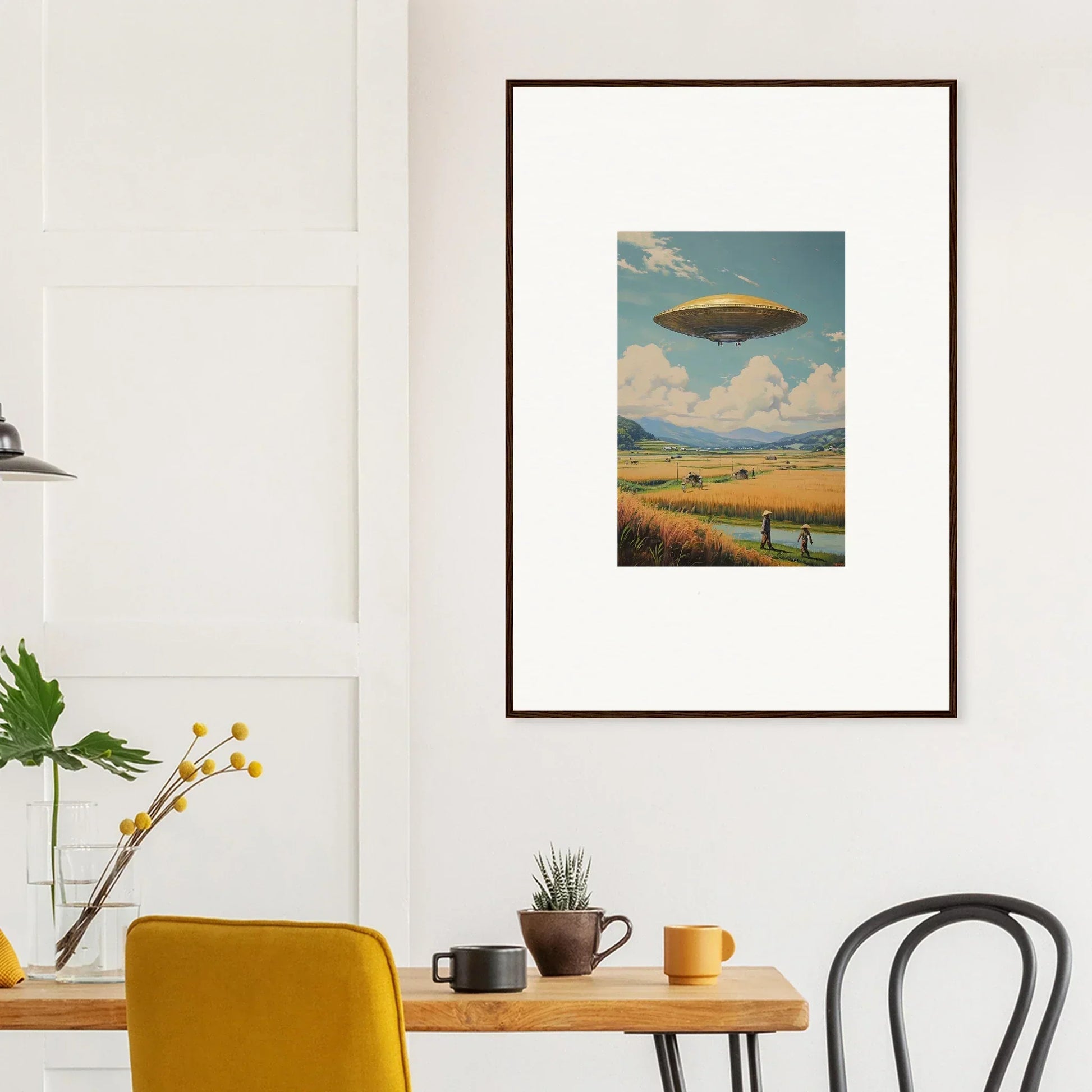 This stunning piece, boasting hues of blue and complementary naturals, is perfect for injecting a sense of adventure and exploration into your living room or home office. Its contemporary art style and subject matter, blending architecture and cityscapes with a touch of fantasy, make it a captivating focal point in any setting. The expansive margins draw the eye inward, making the art appear to hover and adding a layer of depth to your walls.