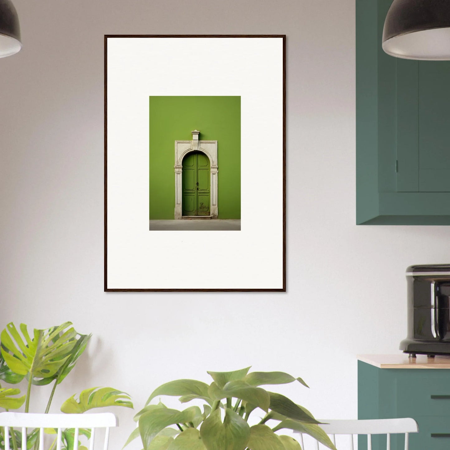 Our Premium Framed Wall Art is more than a decoration; it's an experience. The "Green Origins" piece, predominantly white with a harmonious green accent, fits perfectly within a complementary color scheme, bringing focus and serenity to your home office or living room. Its minimalist art style and abstract architectural subject create a tranquil yet dynamic environment. Remember, the size refers to the frame size, so the print itself may be slightly smaller due to the big margins.