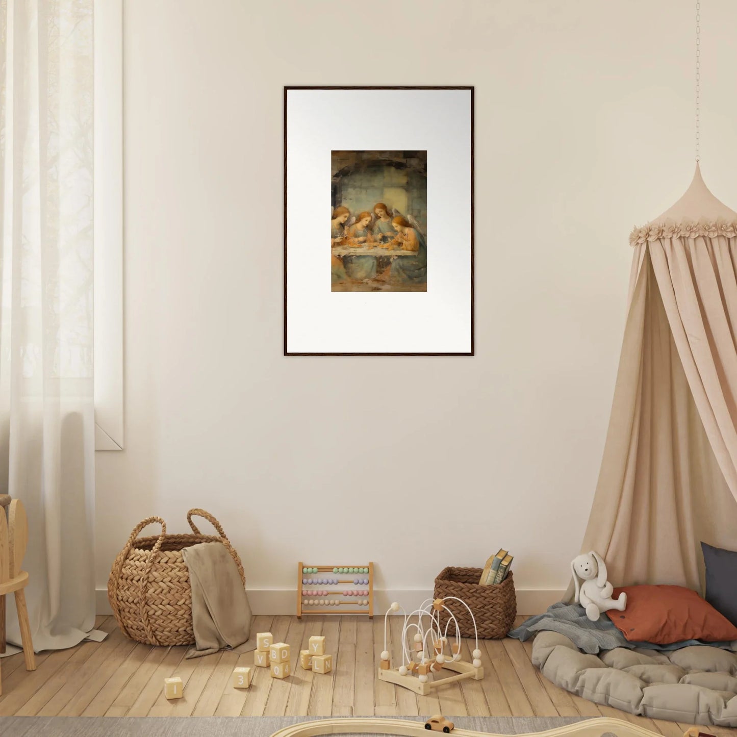 The "Heavenly Sepiast Vapors" exudes hues of blue and earthy tones, making it a versatile piece to adorn your bedroom or living room. The natural and calming colors blend effortlessly with both classic and contemporary decor, reflecting moods of compassion, serenity, and peace. Crafted in a style that echoes the timeless appeal of Classic Art, the subject of this framed wall art delves into the realms of fantasy and figurative expressions, turning any space into an art lover's haven.