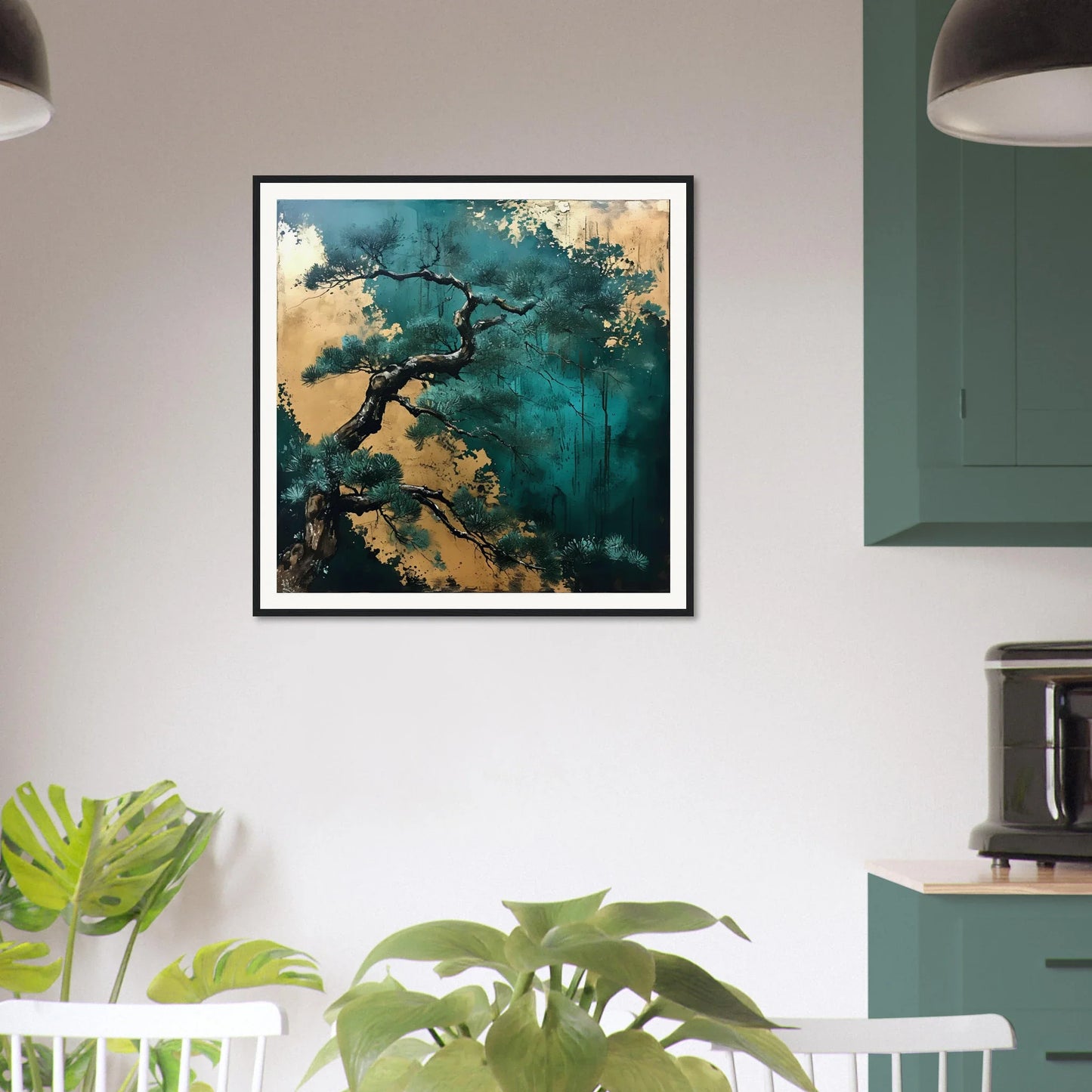 Picture a timeless fusion of modern creativity and classic sophistication gracing your walls. Juniper Jazz Reverie is more than just framed wall art; it is a serene escape into nature's pristine beauty, captured through the latest AI image generation technology, combining echoes of traditional Japanese ink painting with contemporary finesse.